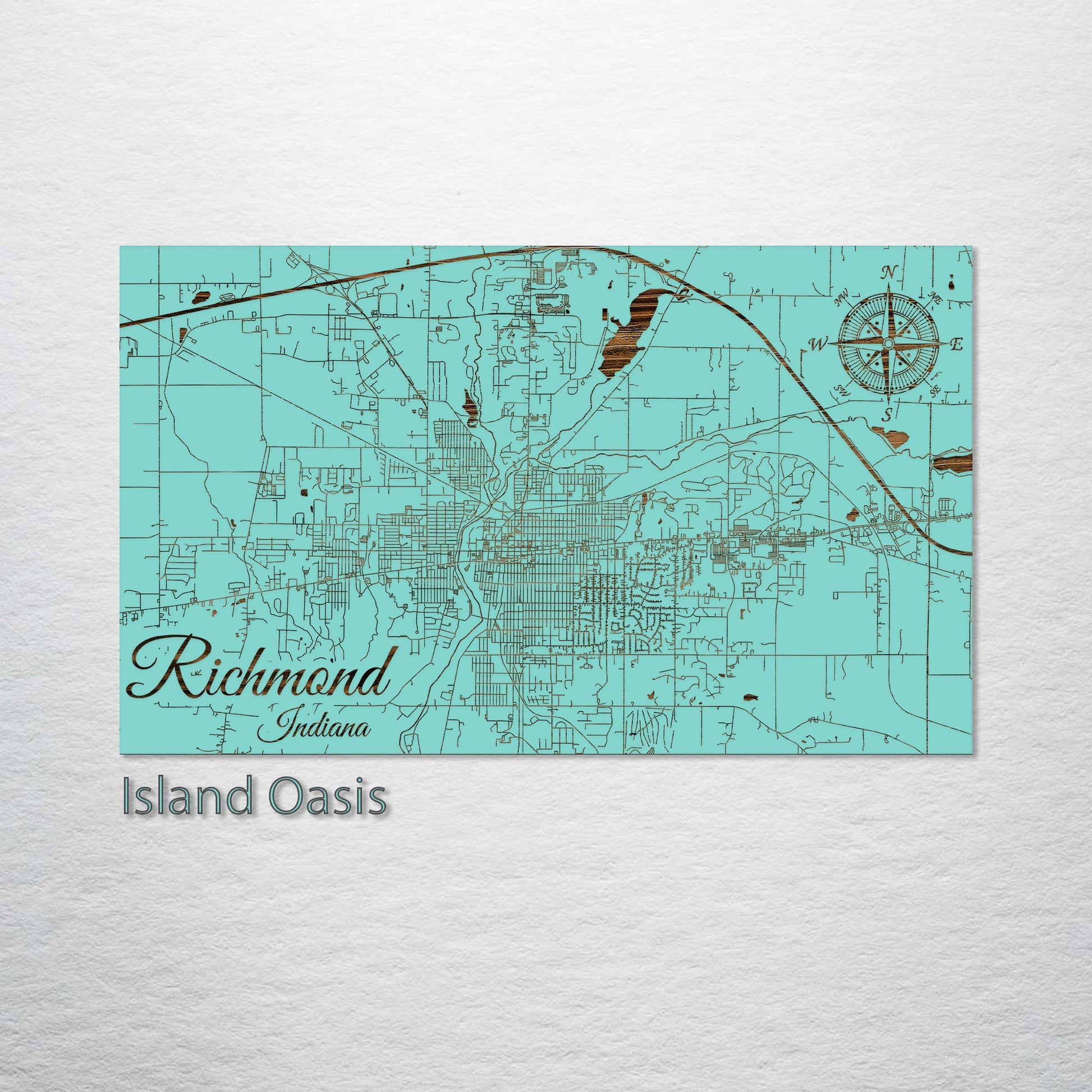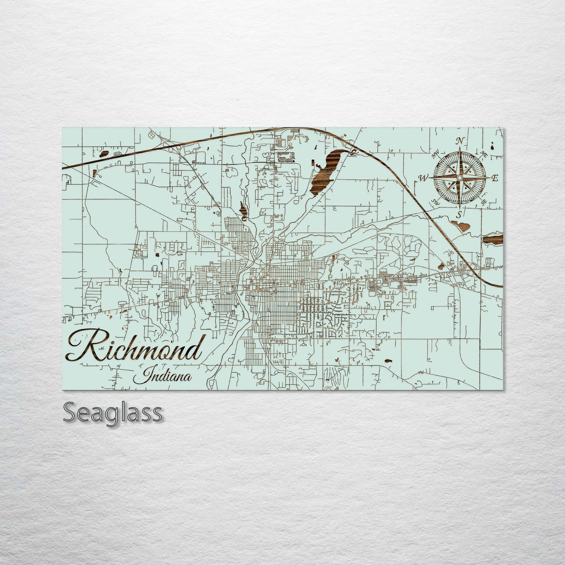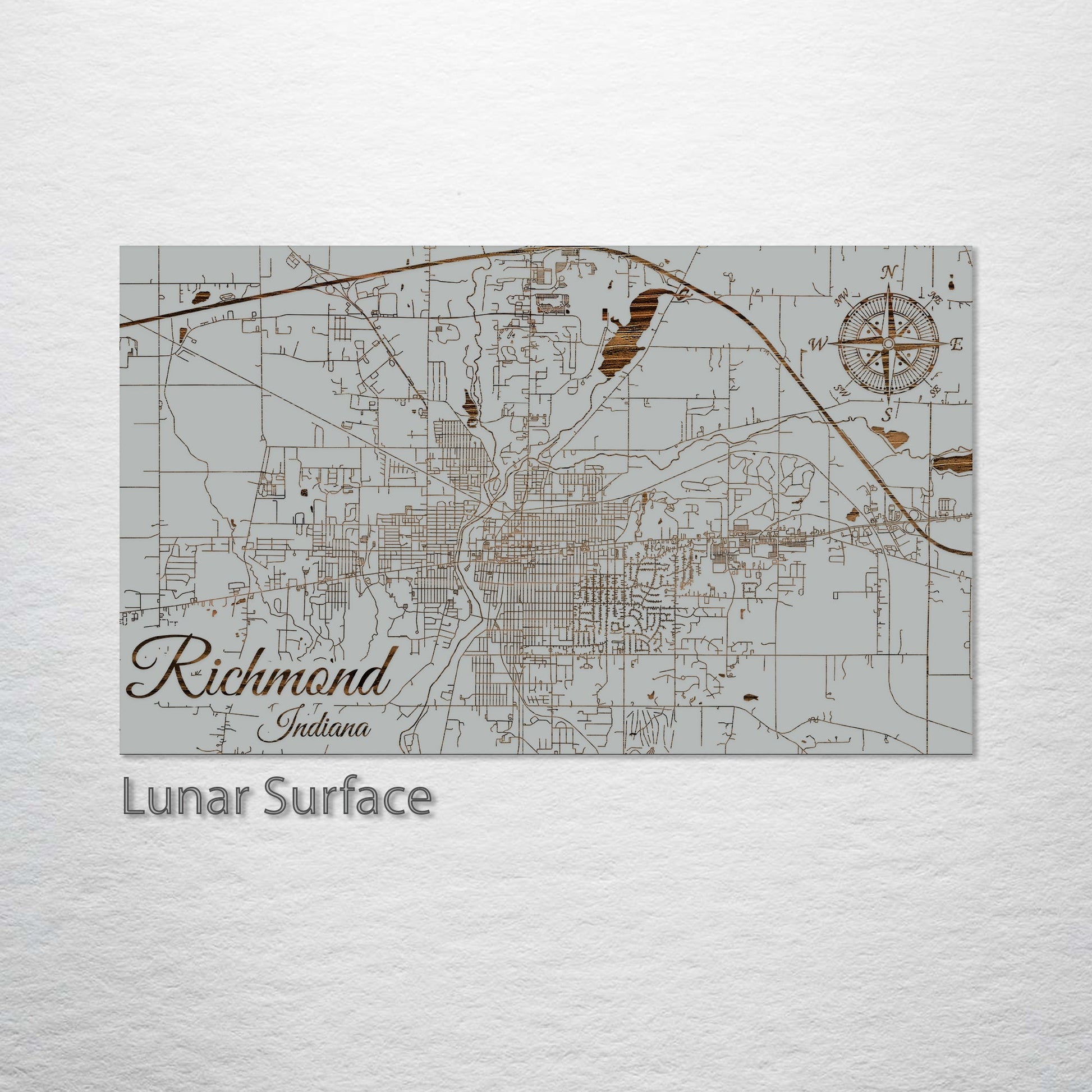 Richmond, Indiana Street Map: Exquisite Pine Wood Engraving: Introducing our latest artistic offering, a pine wood wall art precisely engraved with the streets of Richmond, Indiana. This unique piece is ideal for those who appreciate intricate wooden art, have a special bond with Richmond, or are enthusiasts of distinct urban layouts.