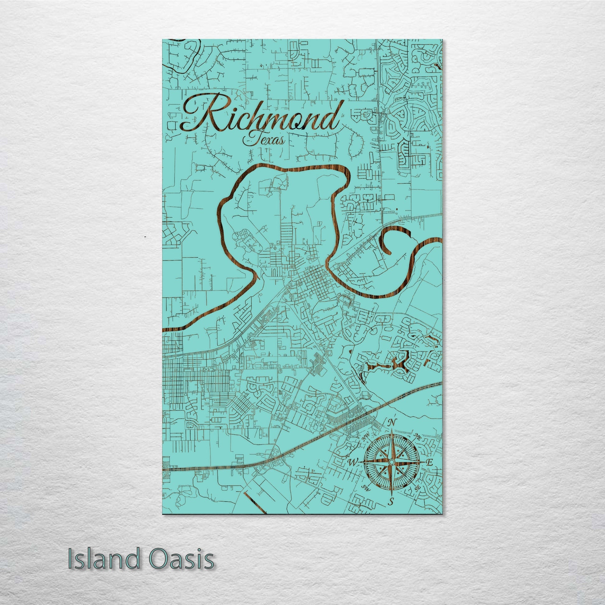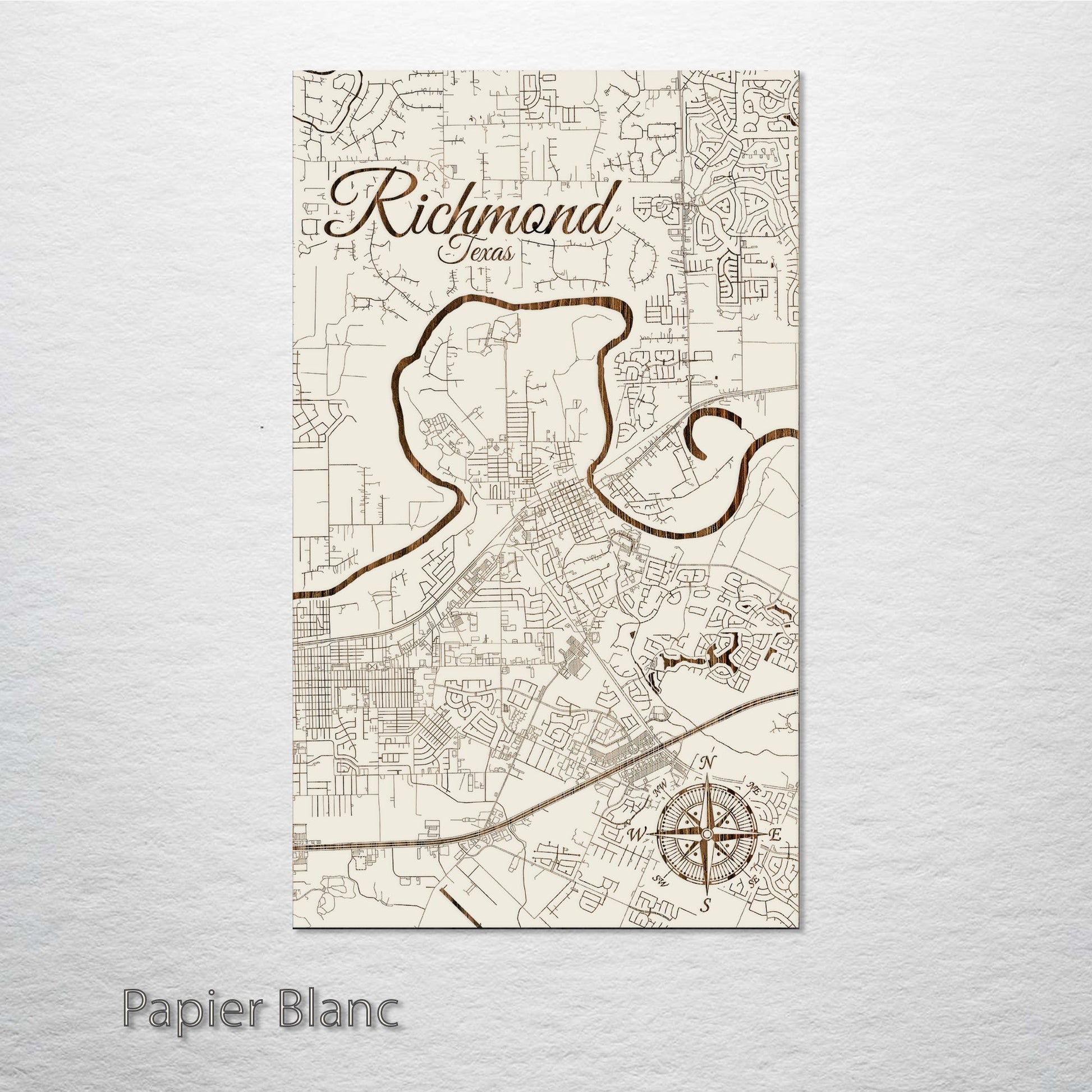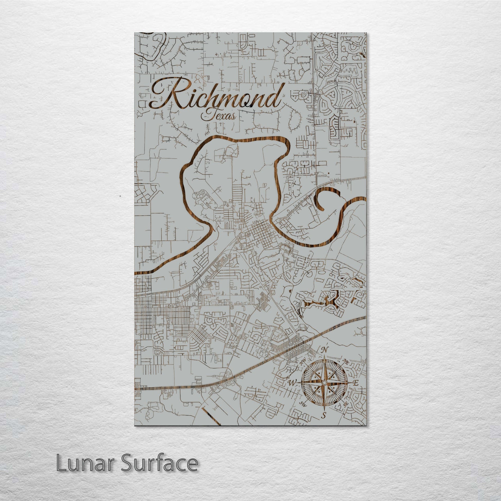 This wood-engraved Richmond, Texas street map is a must-have for anyone with a deep appreciation for unique geographic art. Skillfully carved from top-tier pine wood, it features an elaborate depiction of Richmond's streets, turning a simple map into a work of art.