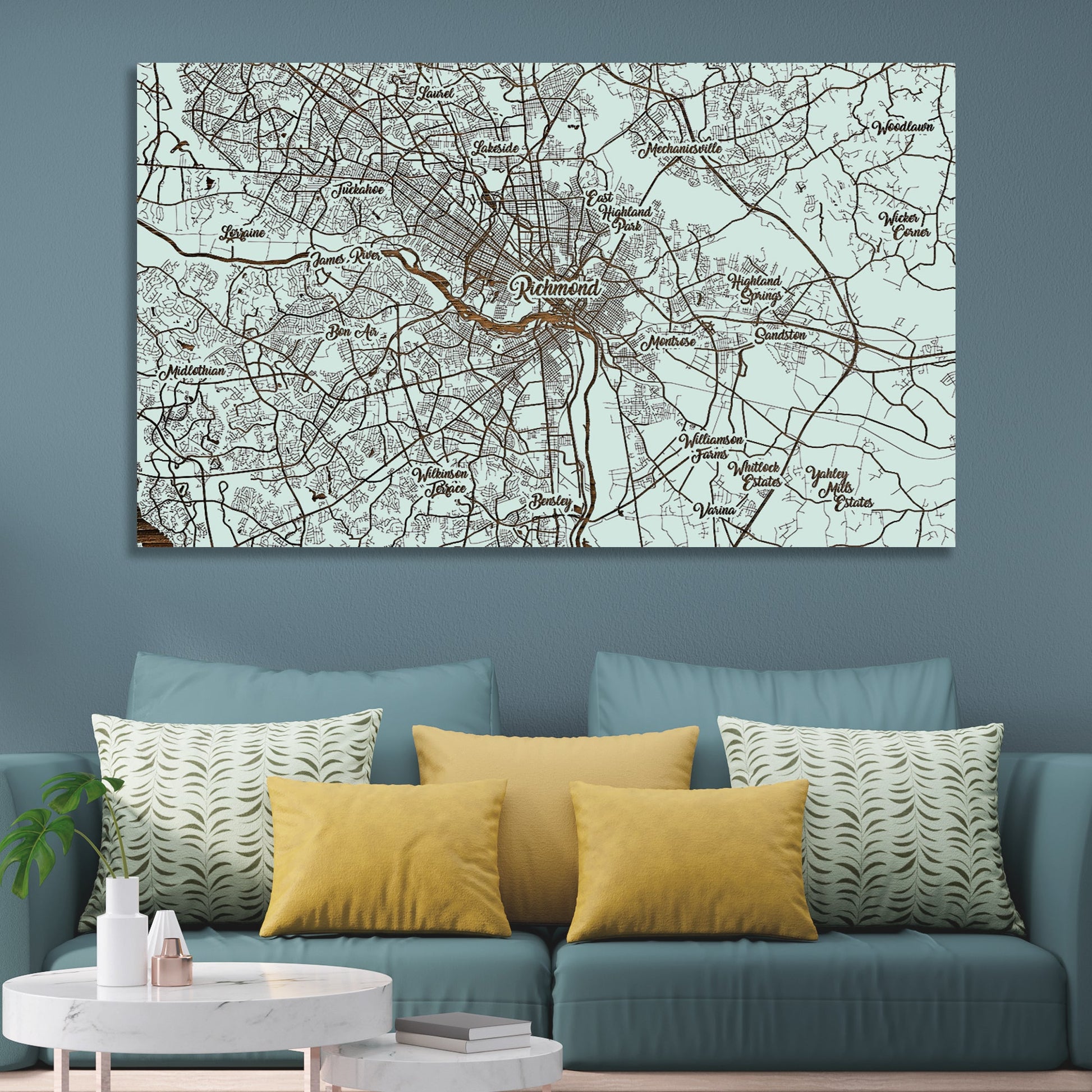 This is a whimsical map of Richmond, Virginia designed by Fire & Pine artists.