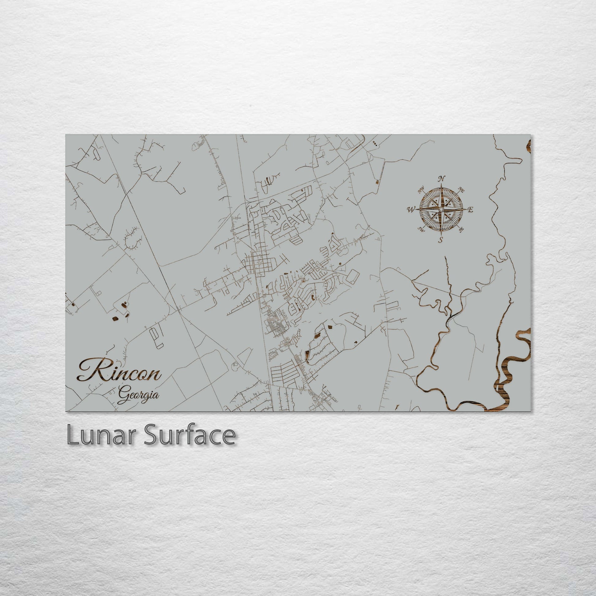 Elegant Gift for Map and Art Aficionados: This wood-engraved Rincon, Georgia street map is a distinctive addition to any art collector's selection. Precisely crafted from high-grade pine wood, its intricate street layouts are beautifully etched, presenting a visually appealing piece. It's perfect for those who appreciate the finesse of geographic designs and the artistic depiction of street maps.