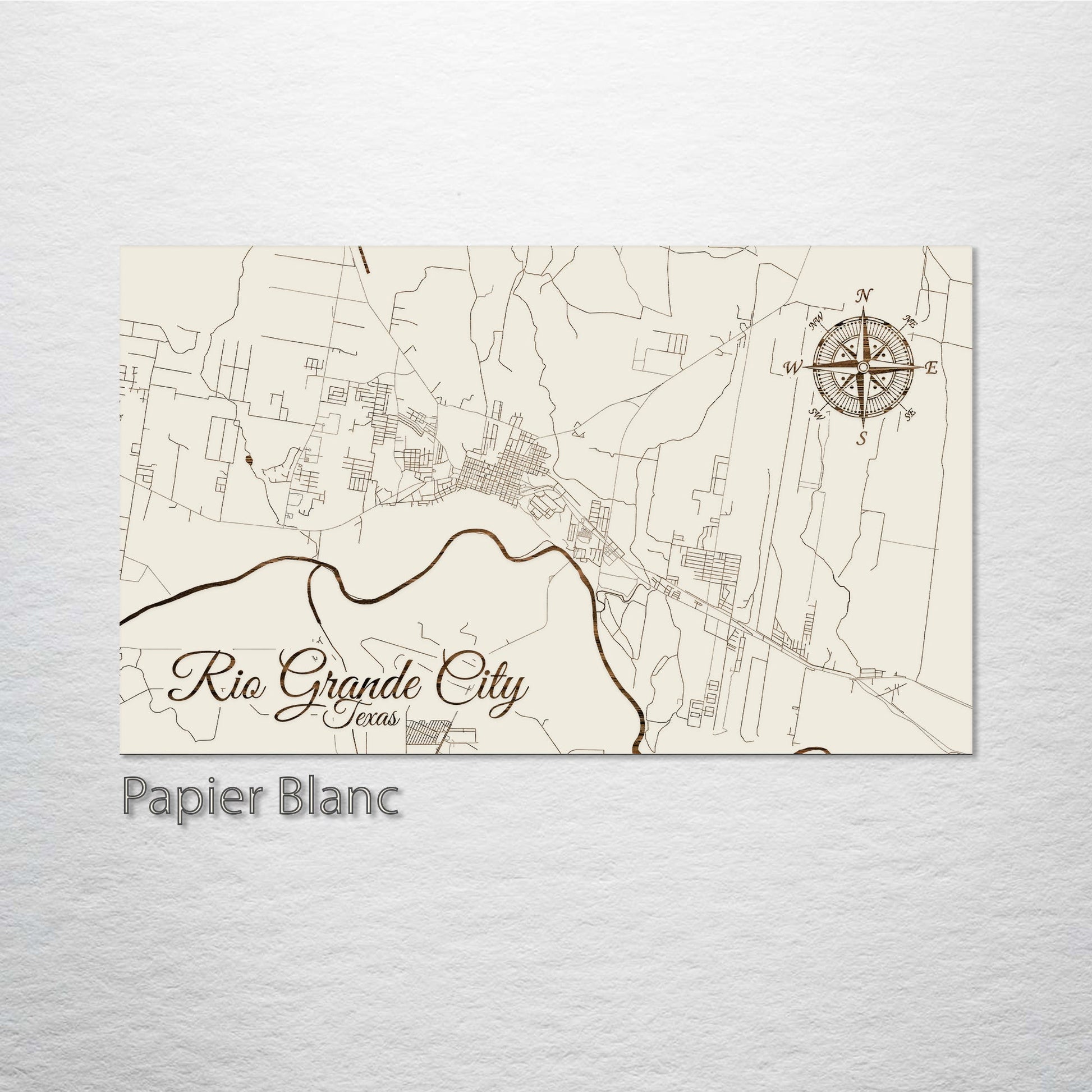 Elevate your collection with this wood-engraved Rio Grande, Texas street map. Masterfully created from premium pine wood, this piece captures the essence of Rio Grande's streets with stunning detail and craftsmanship, making it an impressive work of art for those who appreciate unique perspectives of cityscapes.