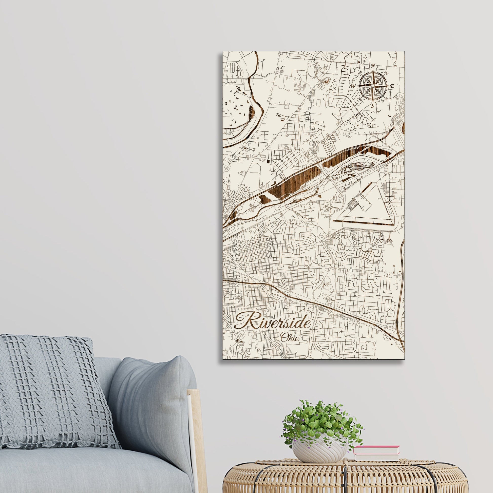 This is a street map of Riverside, OH designed by Fire & Pine artists.