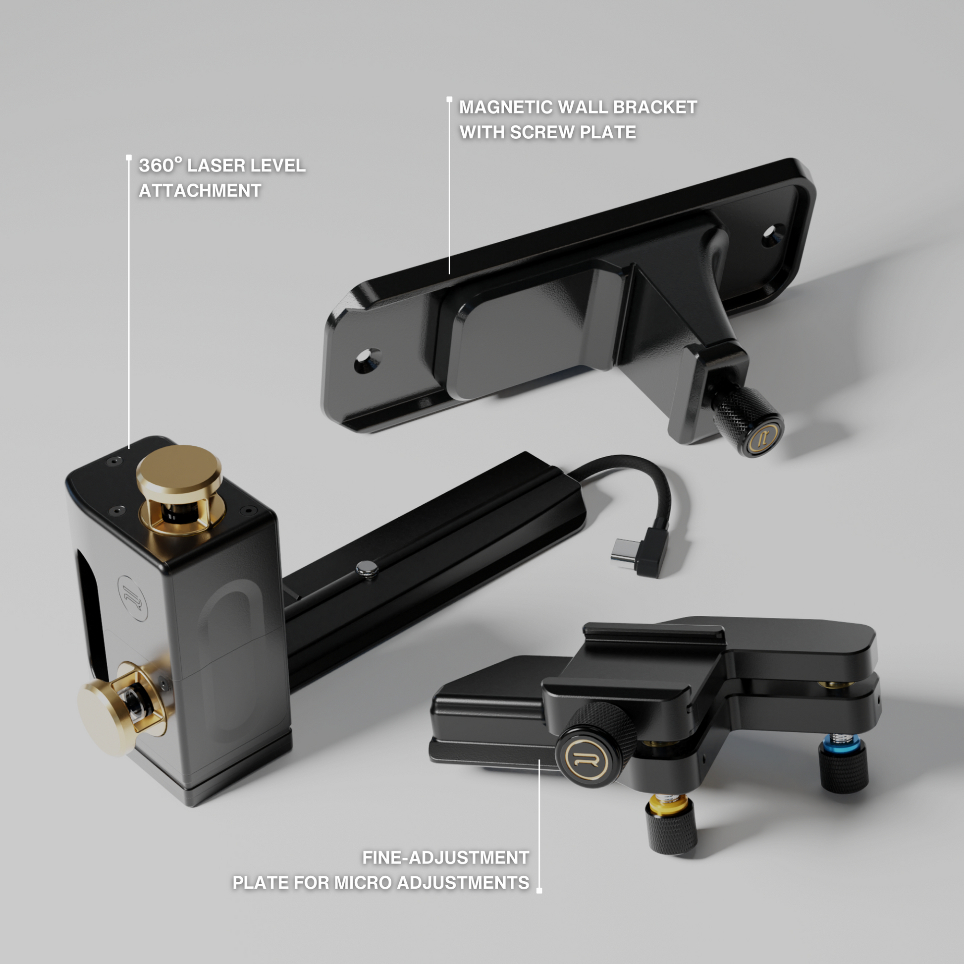 Upgrade your Sensses Pro Laser Level set up with the magnetic wall mount that allows you to position your laser level on a wider variety of surfaces including metal corner studs. For pros, up your ante in the game with the fine adjustment plate that allows precise micro-level adjustments of up to 0.02º on both axis.