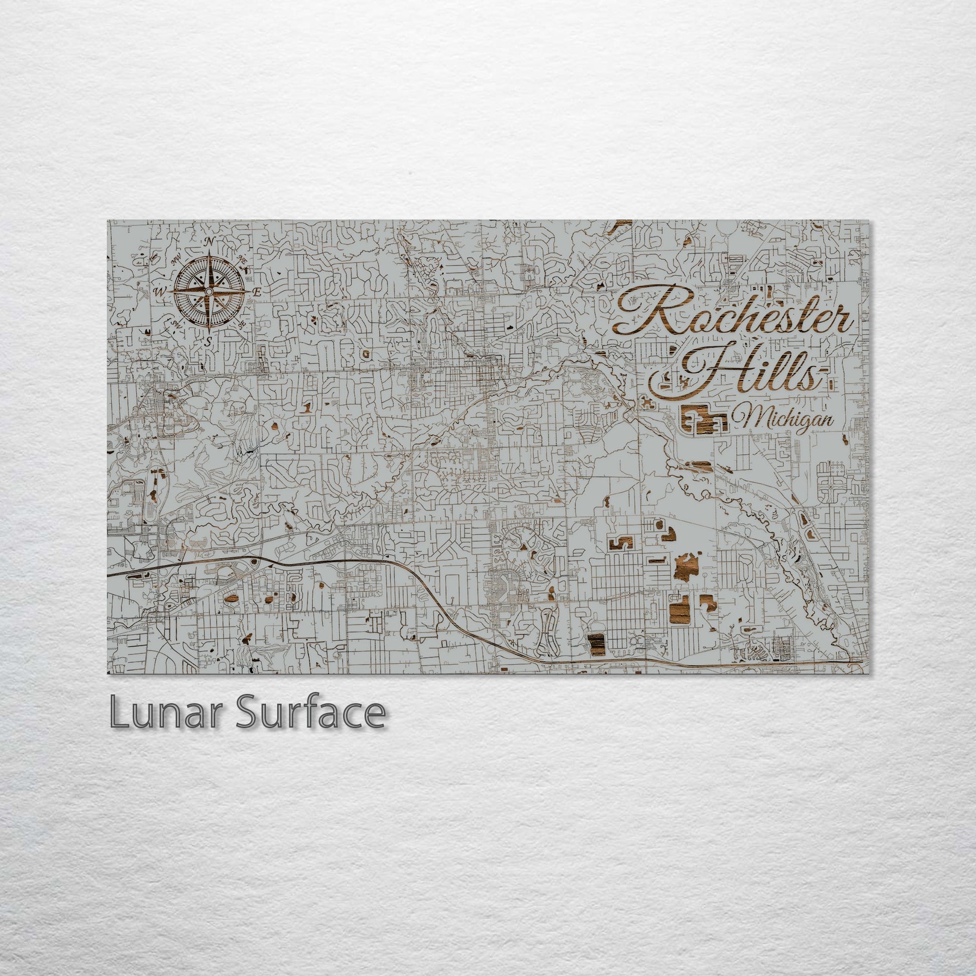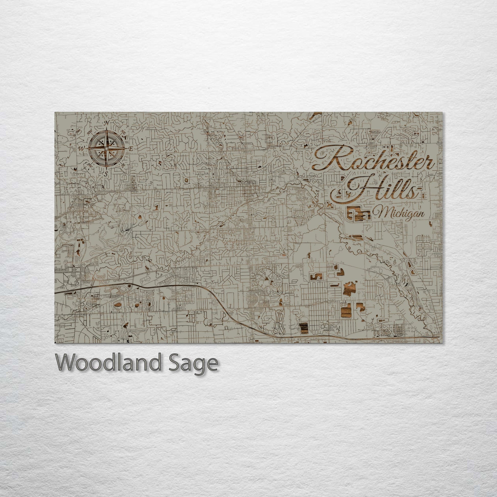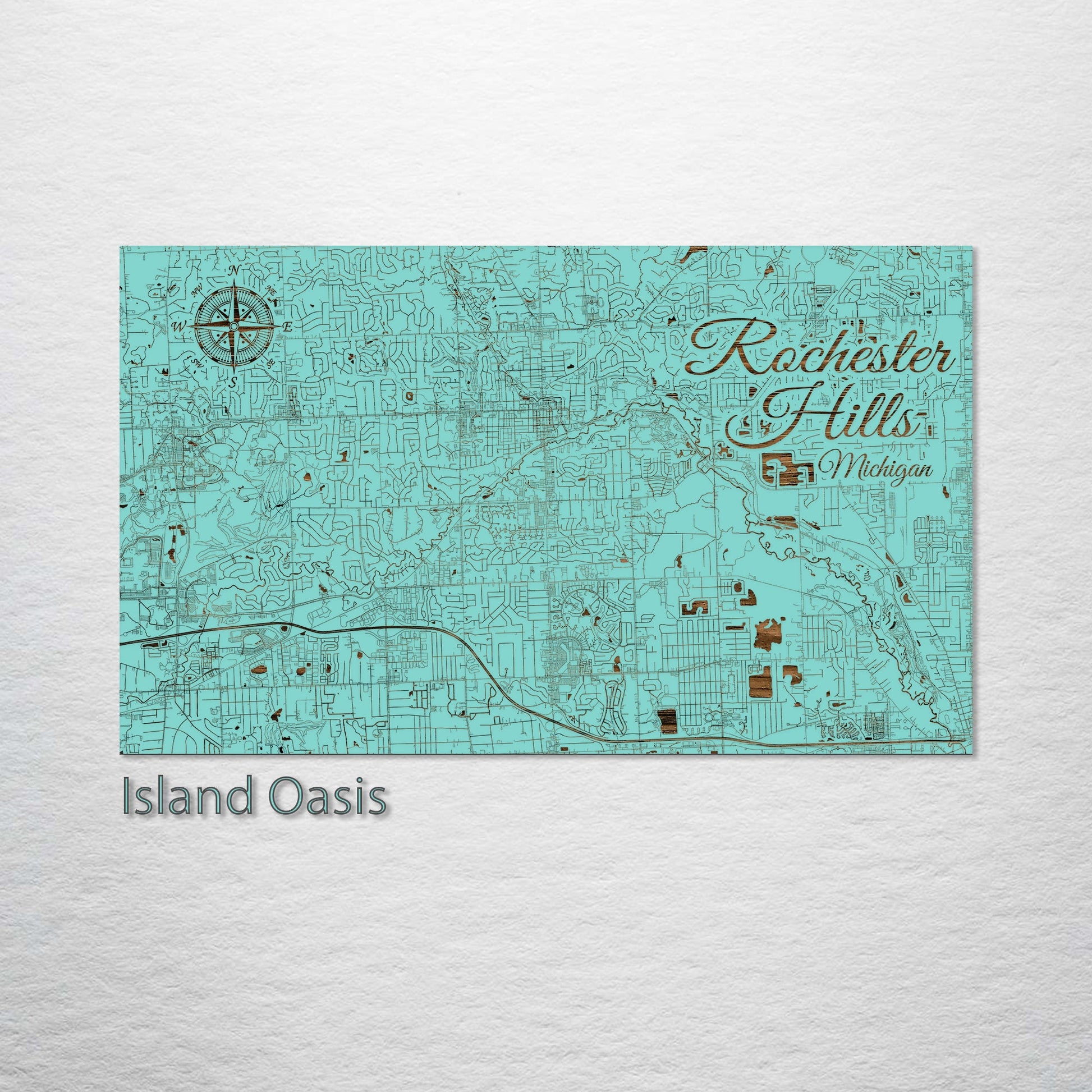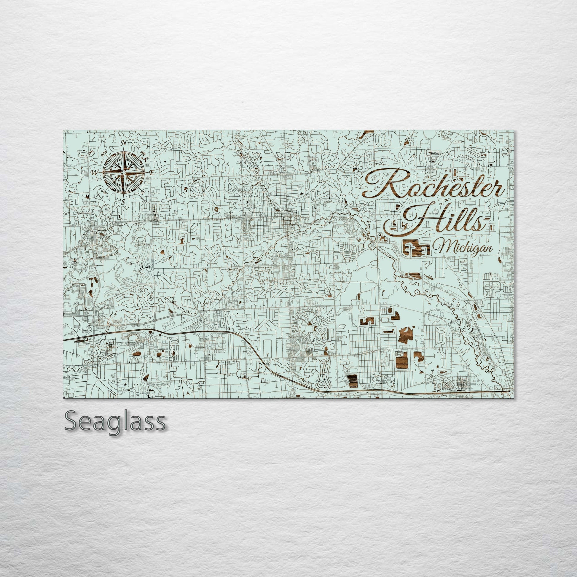 This is a street map of Rochester Hills, MI designed by Fire & Pine artists.