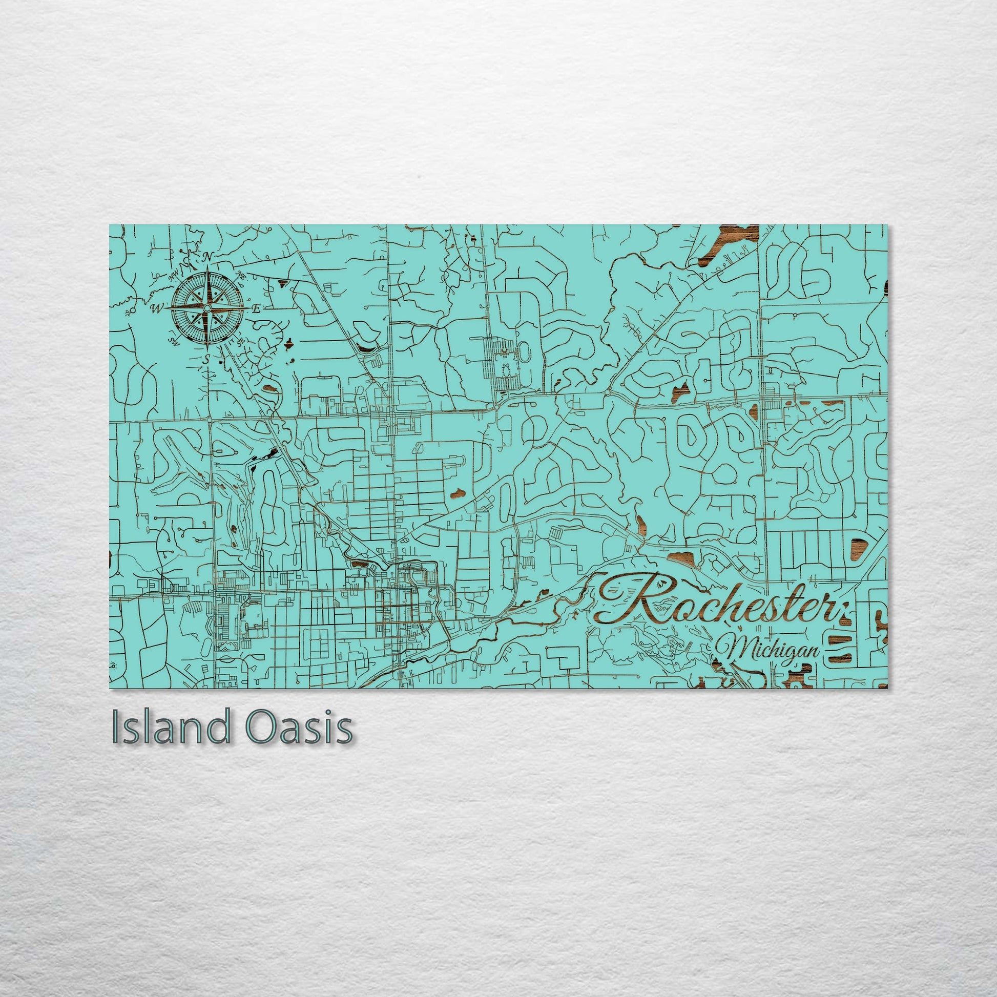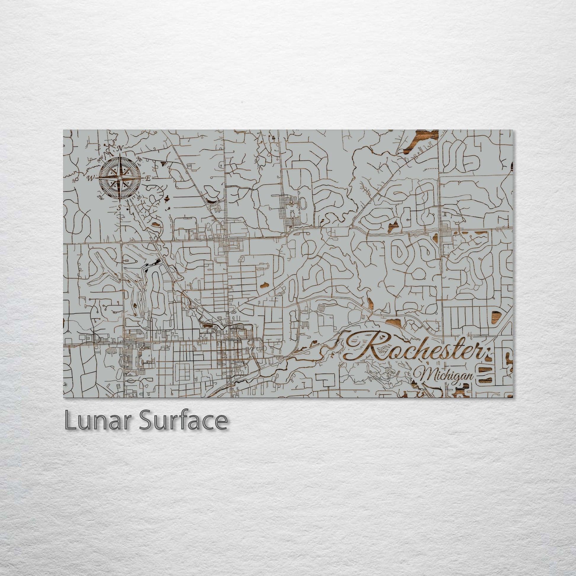 This is a street map of Rochester, MI designed by Fire & Pine artists.