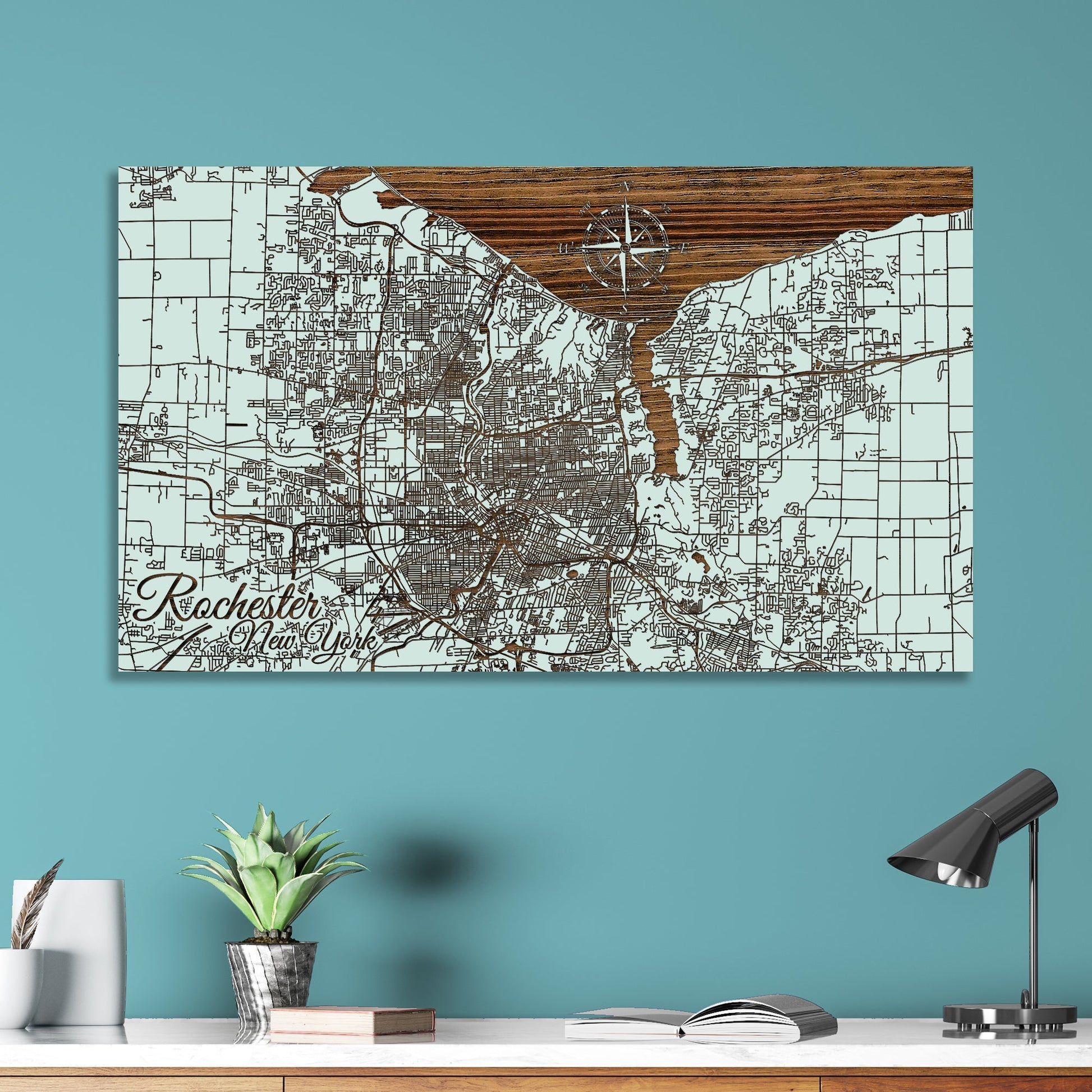 Unique gift for Art Lover: This New York Rochester Street Map wood engraved wall art is an exceptional addition to any collector's lineup. Crafted from high-quality pine wood, the intricate details are brought to life, making it a standout piece. Ideal for anyone interested in Unique wall art decor.