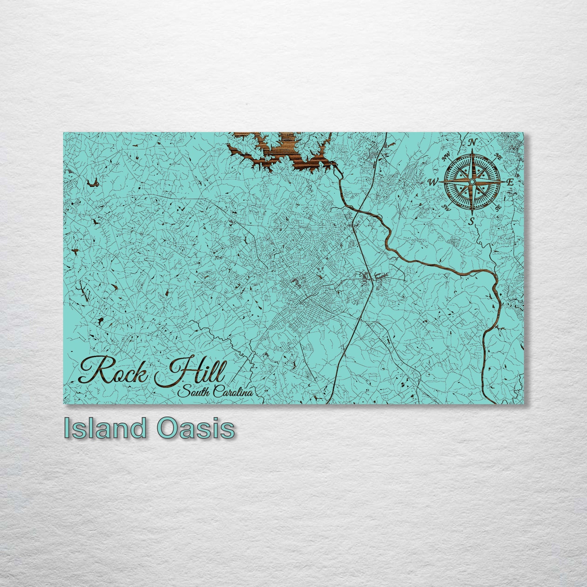 Proudly Made in the USA: This Rock Hill street map is designed and crafted in the United States, standing as a collectible memorabilia in terms of quality and artistic value.