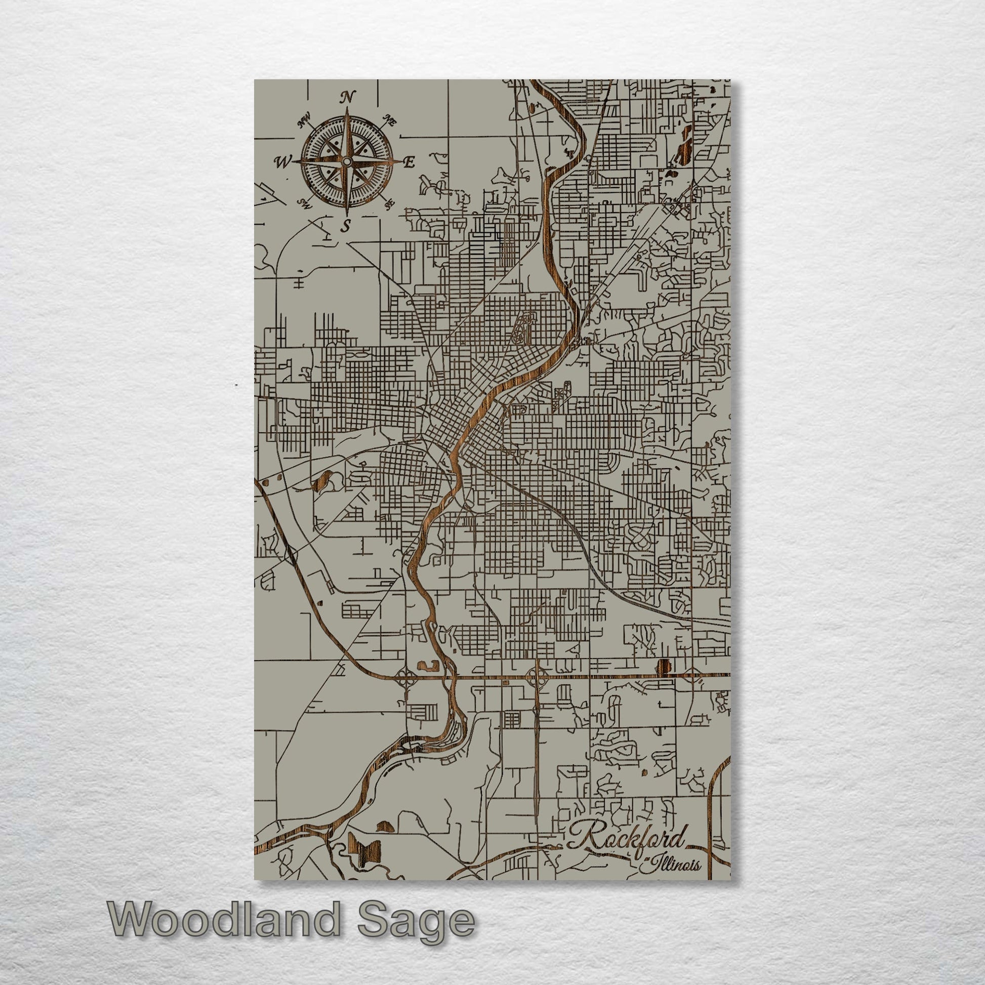Unique gift for Rockford enthusiasts or map collectors: This wood-engraved wall art features a detailed street map of Rockford, Illinois. Crafted from high-quality pine wood, the map's intricate details are masterfully engraved, offering a one-of-a-kind piece.
