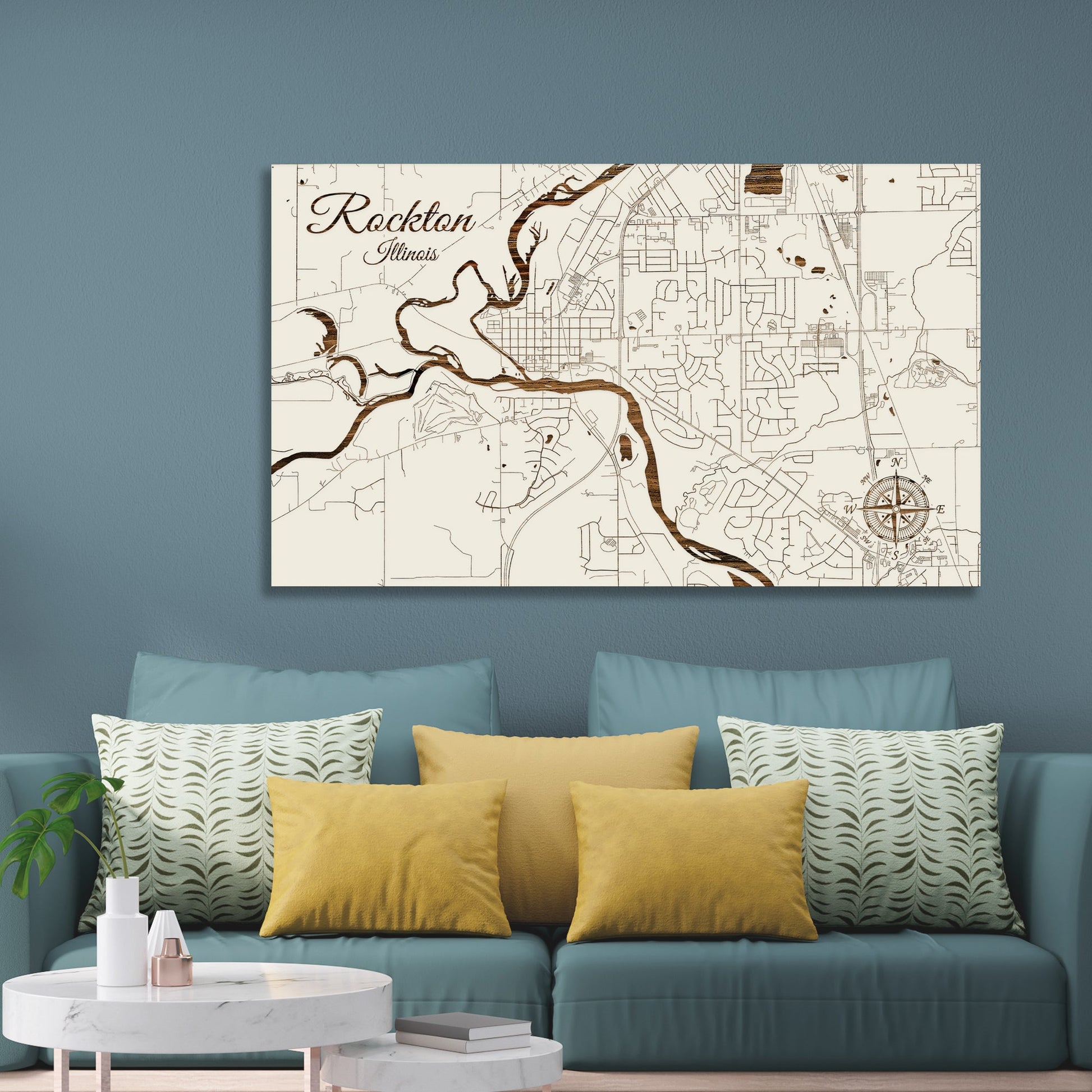 This is a street map of Rockton, IL designed by Fire & Pine artists.