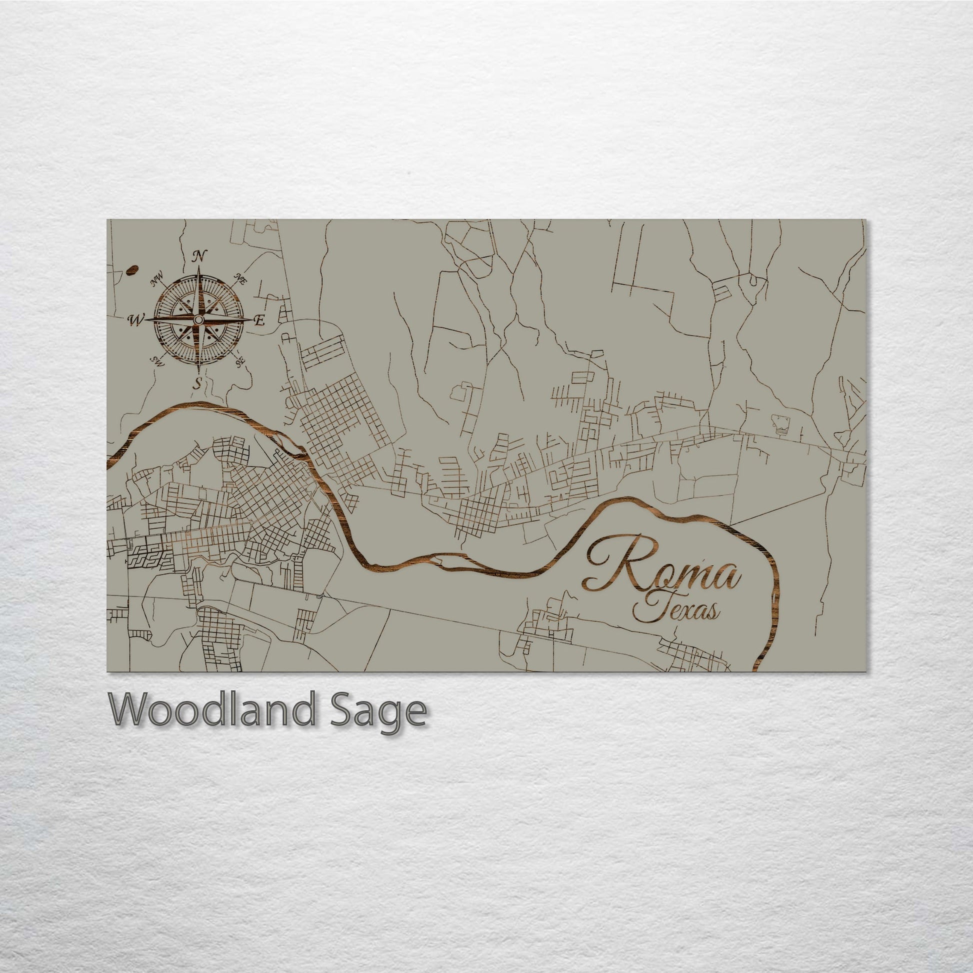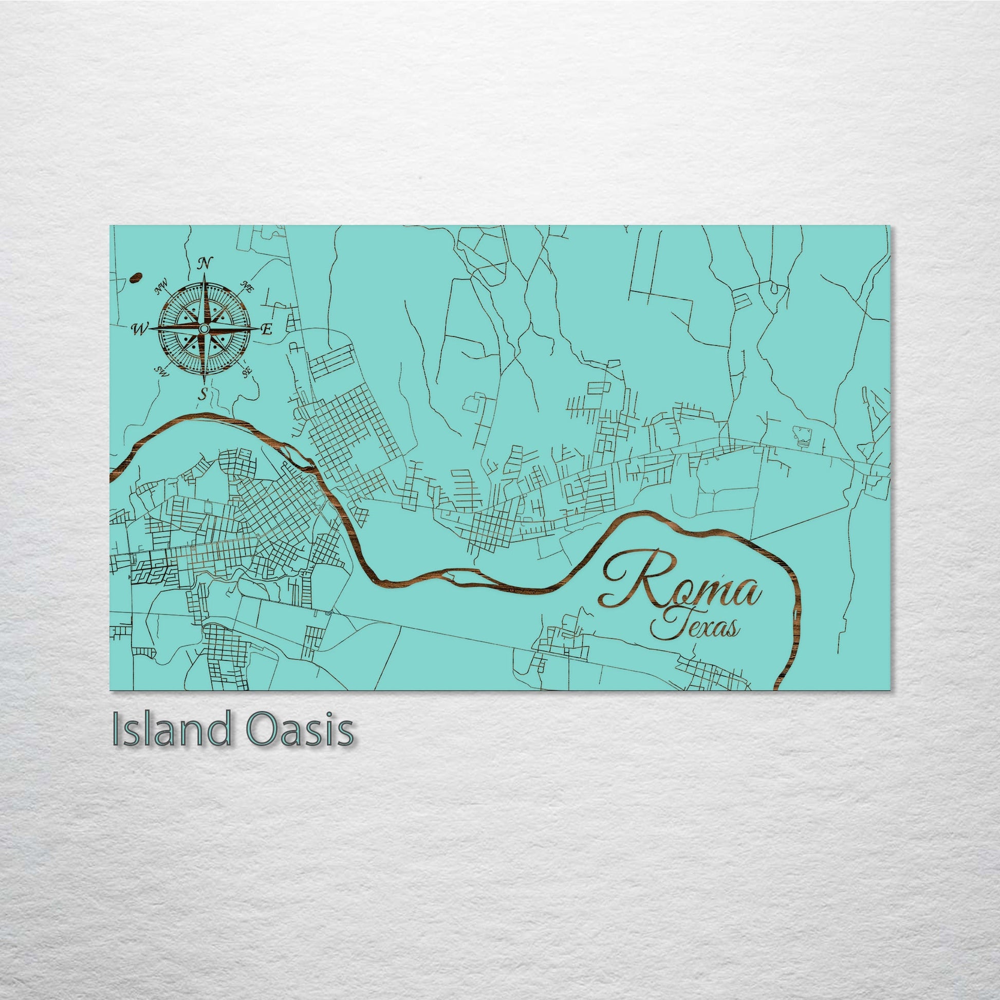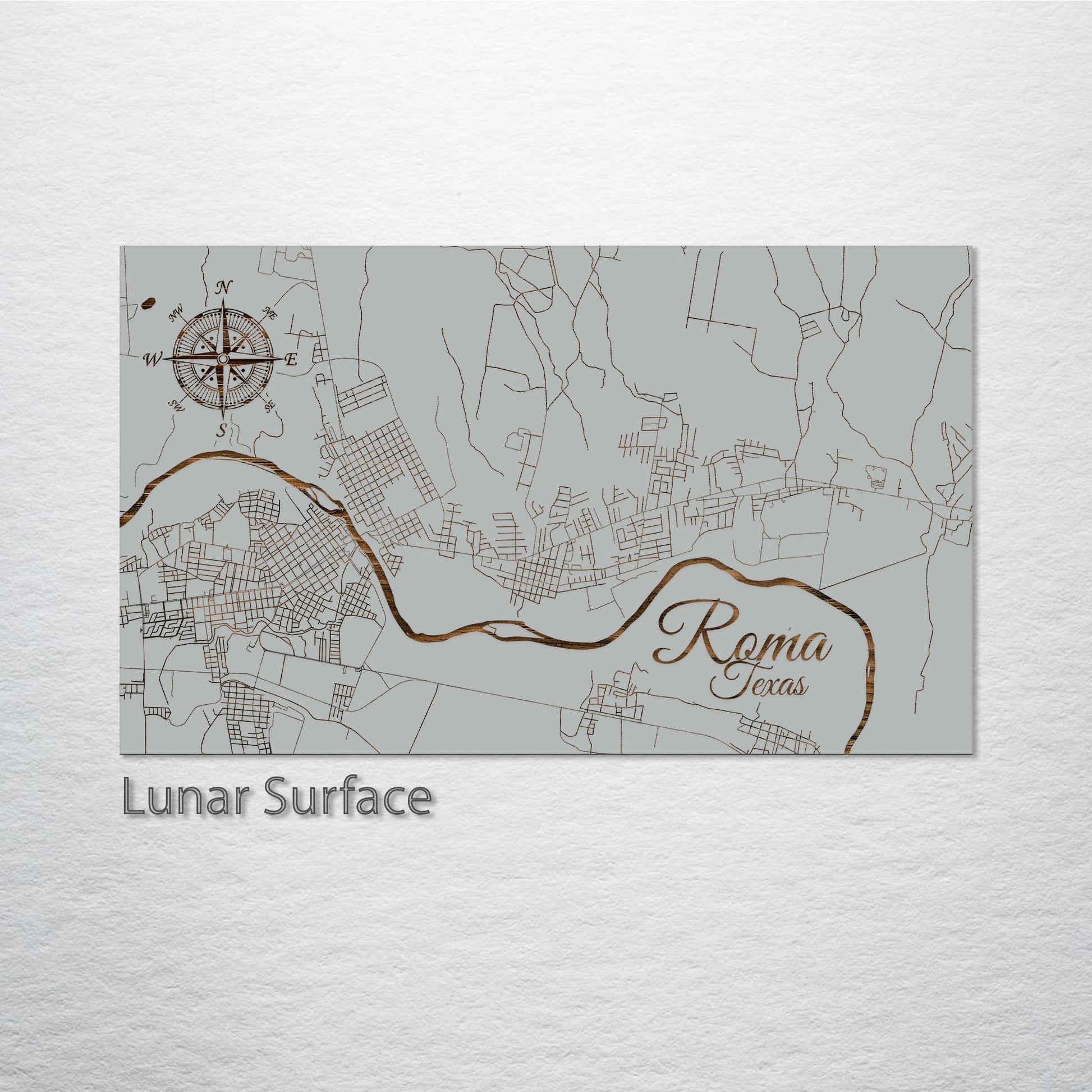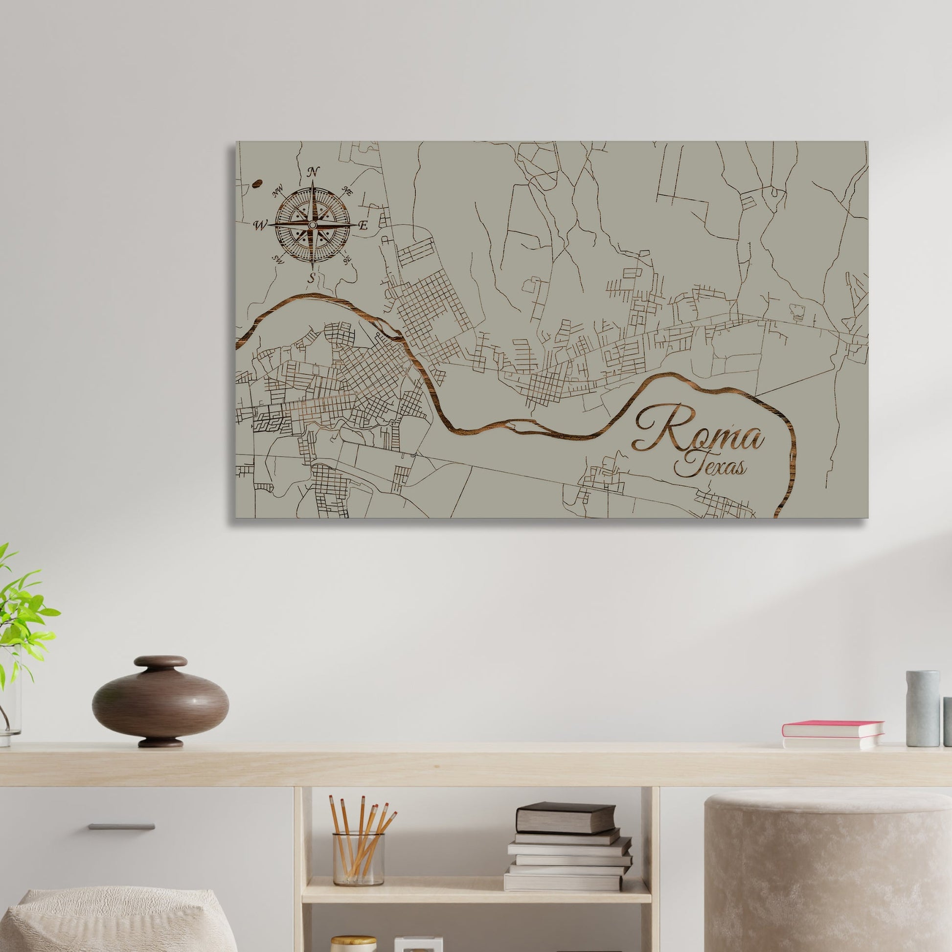 This wood-engraved Roma, Texas street map is a unique piece for anyone who appreciates detailed cartography. It’s meticulously crafted from premium pine wood, showcasing the street layout of Roma with artistic flair, making it a notable addition to any art collection.