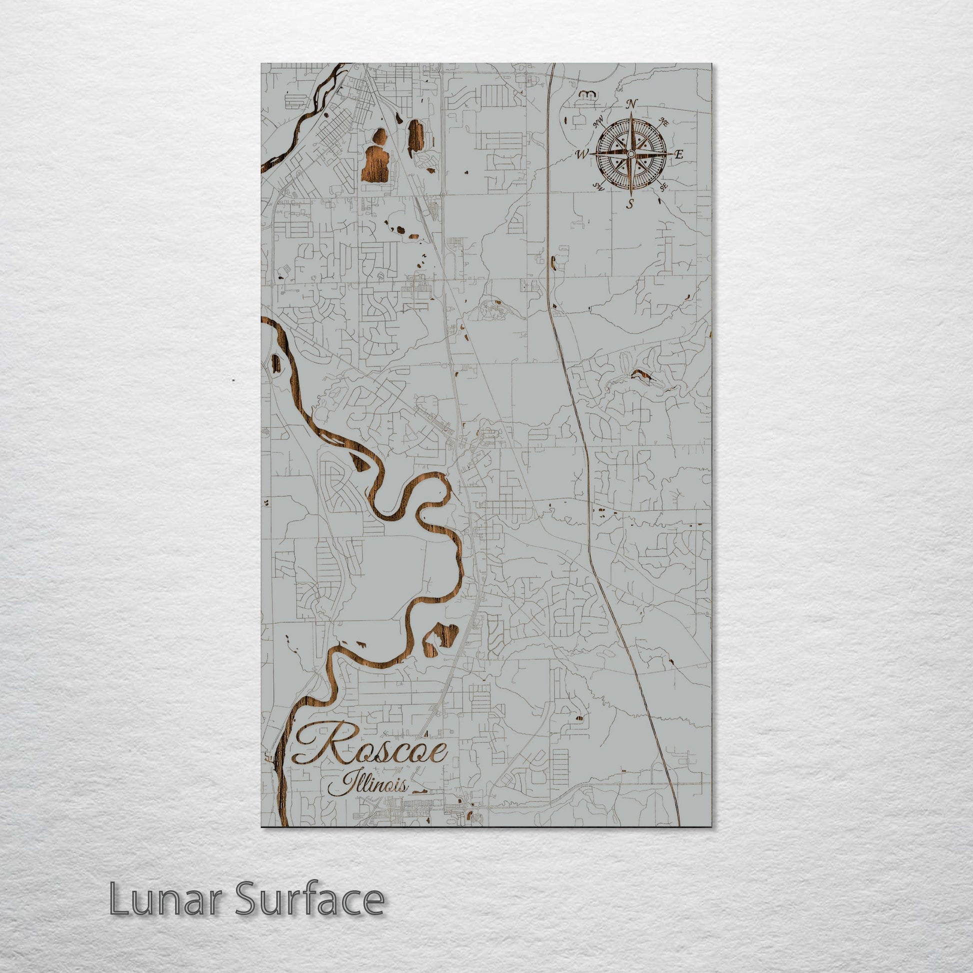 This is a street map of Roscoe, IL designed by Fire & Pine artists.