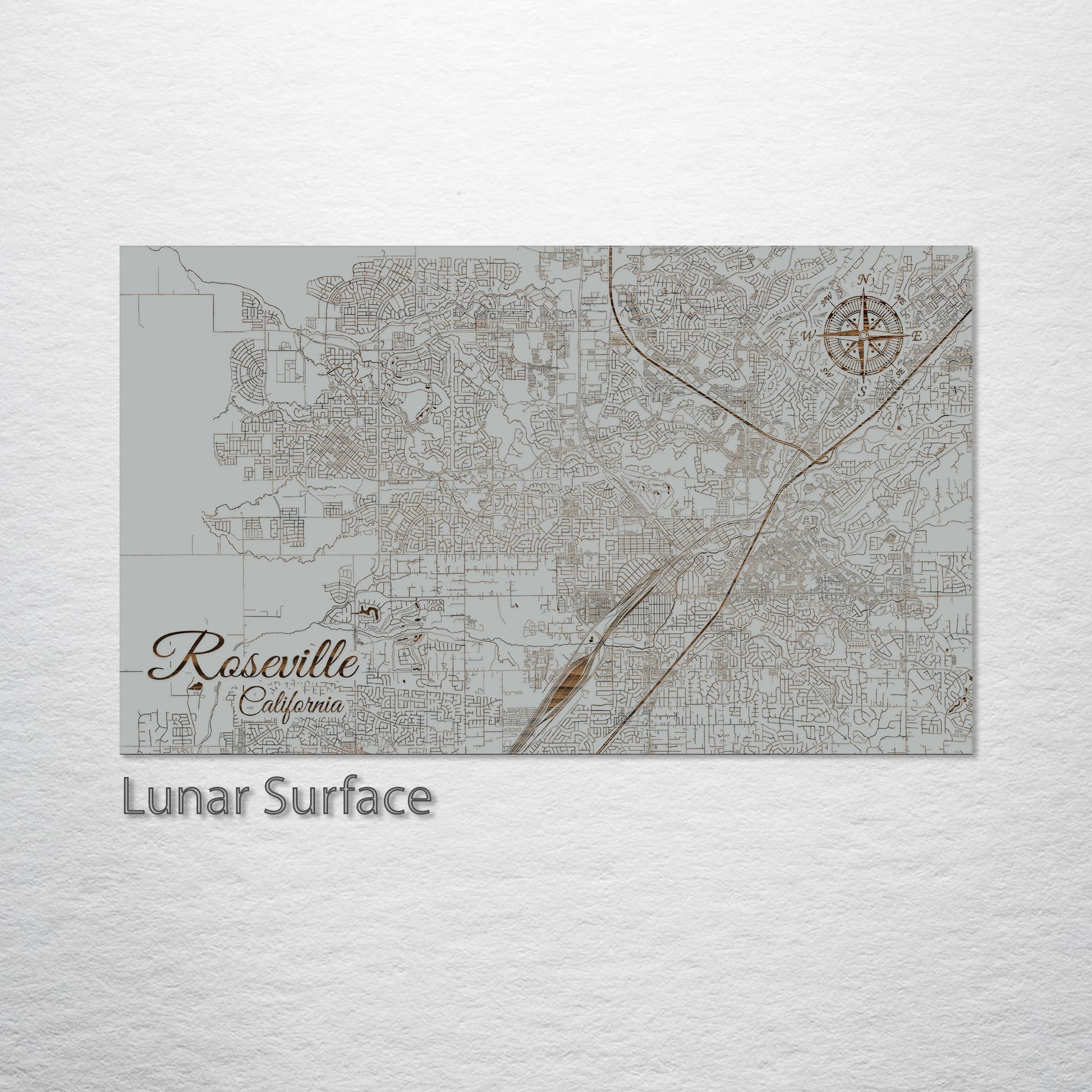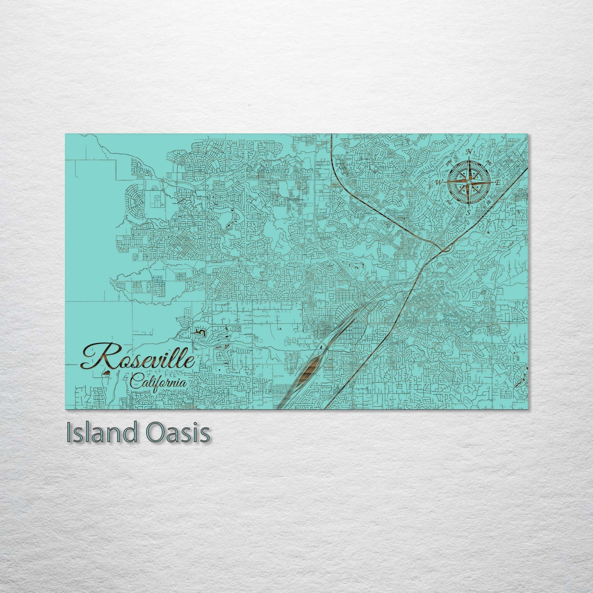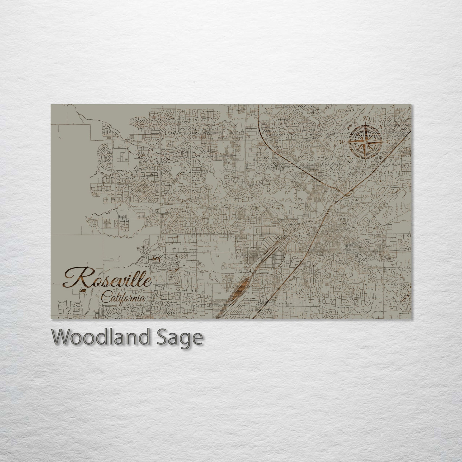 This is a street map of Roseville, CA designed by Fire & Pine artists.