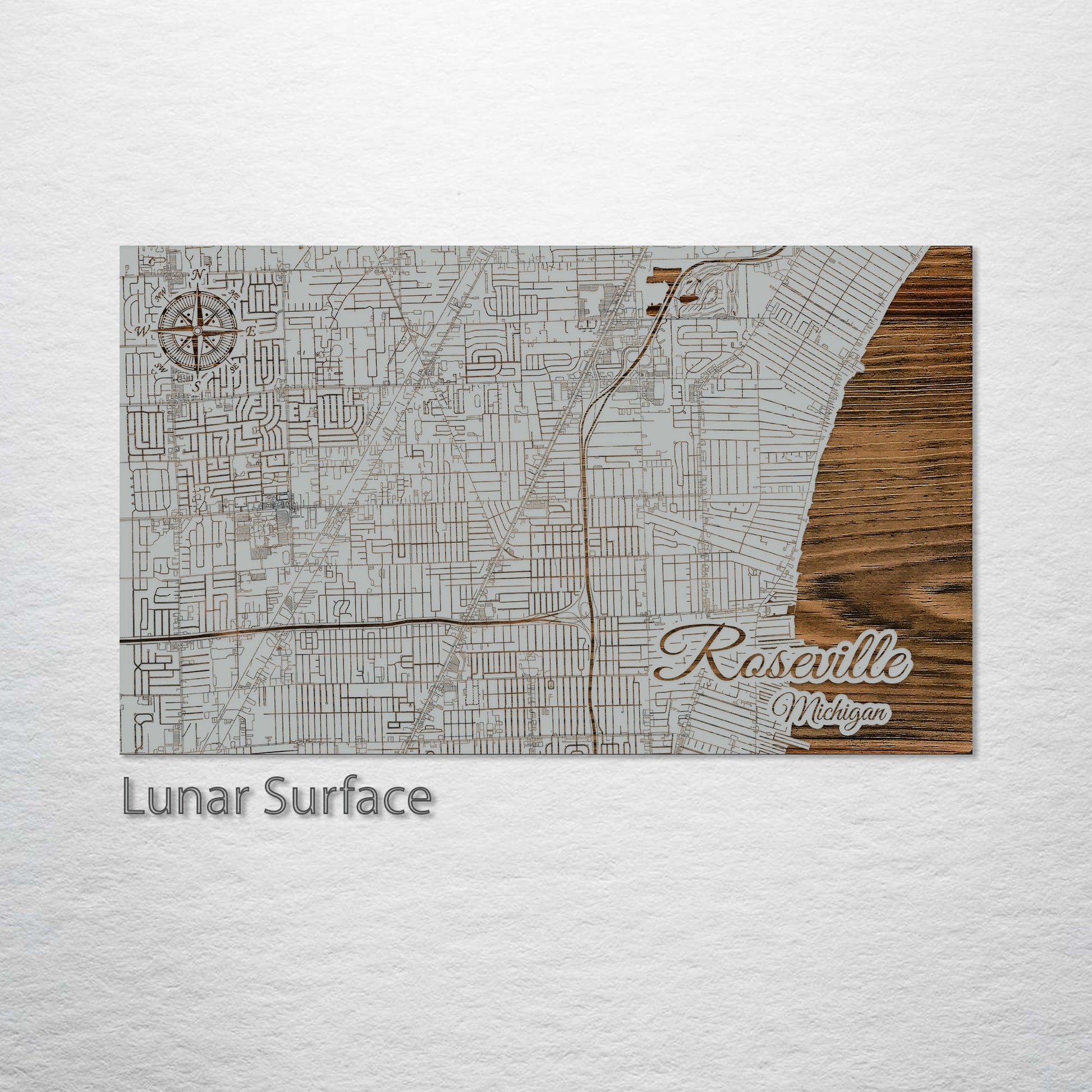 This is a street map of Roseville, MI designed by Fire & Pine artists.