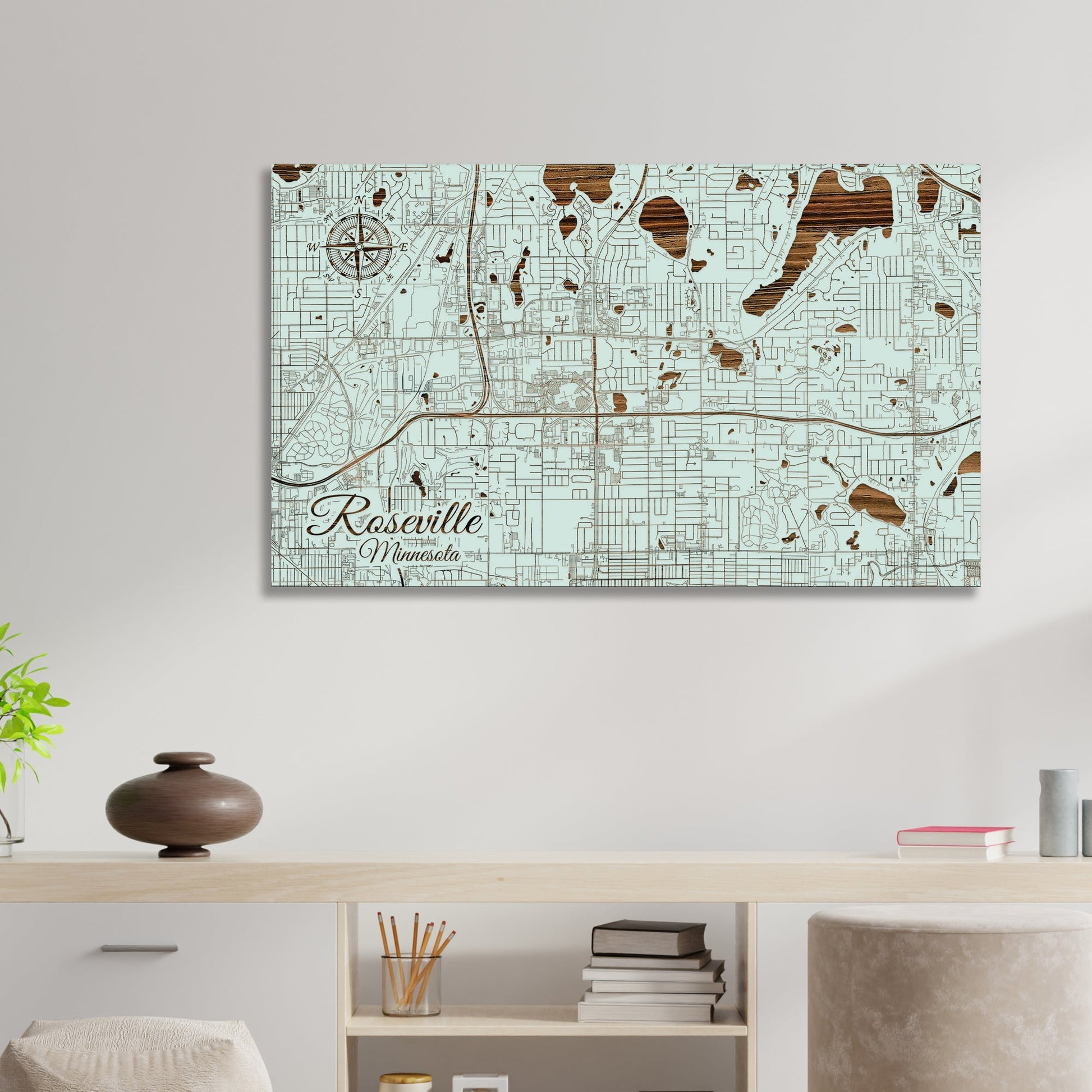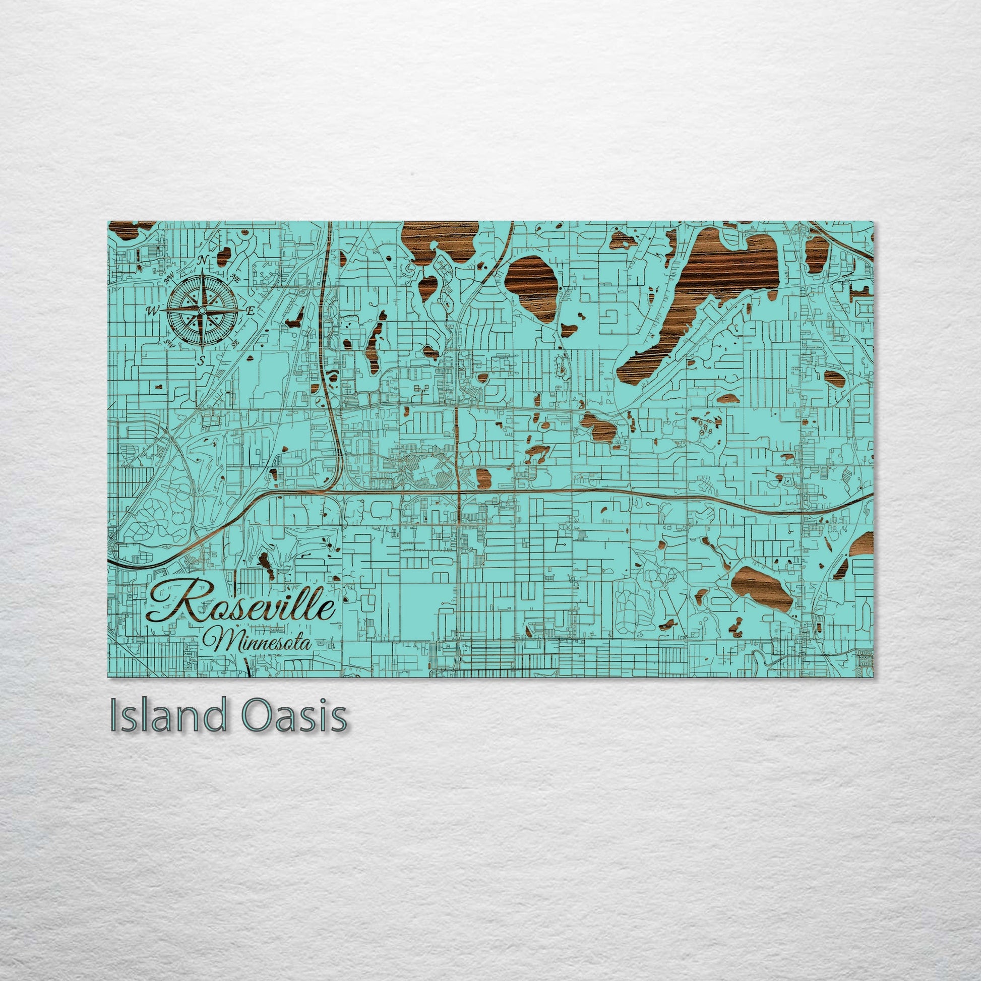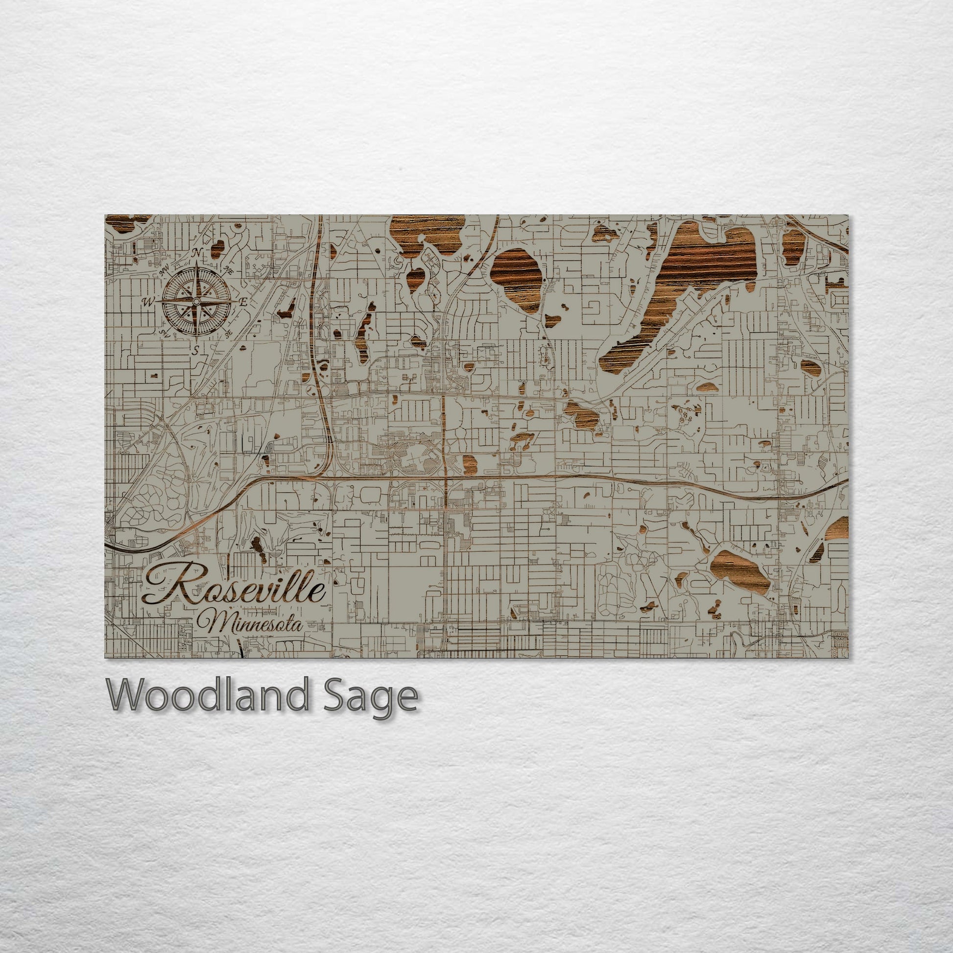 This is a street map of Roseville, MN designed by Fire & Pine artists.