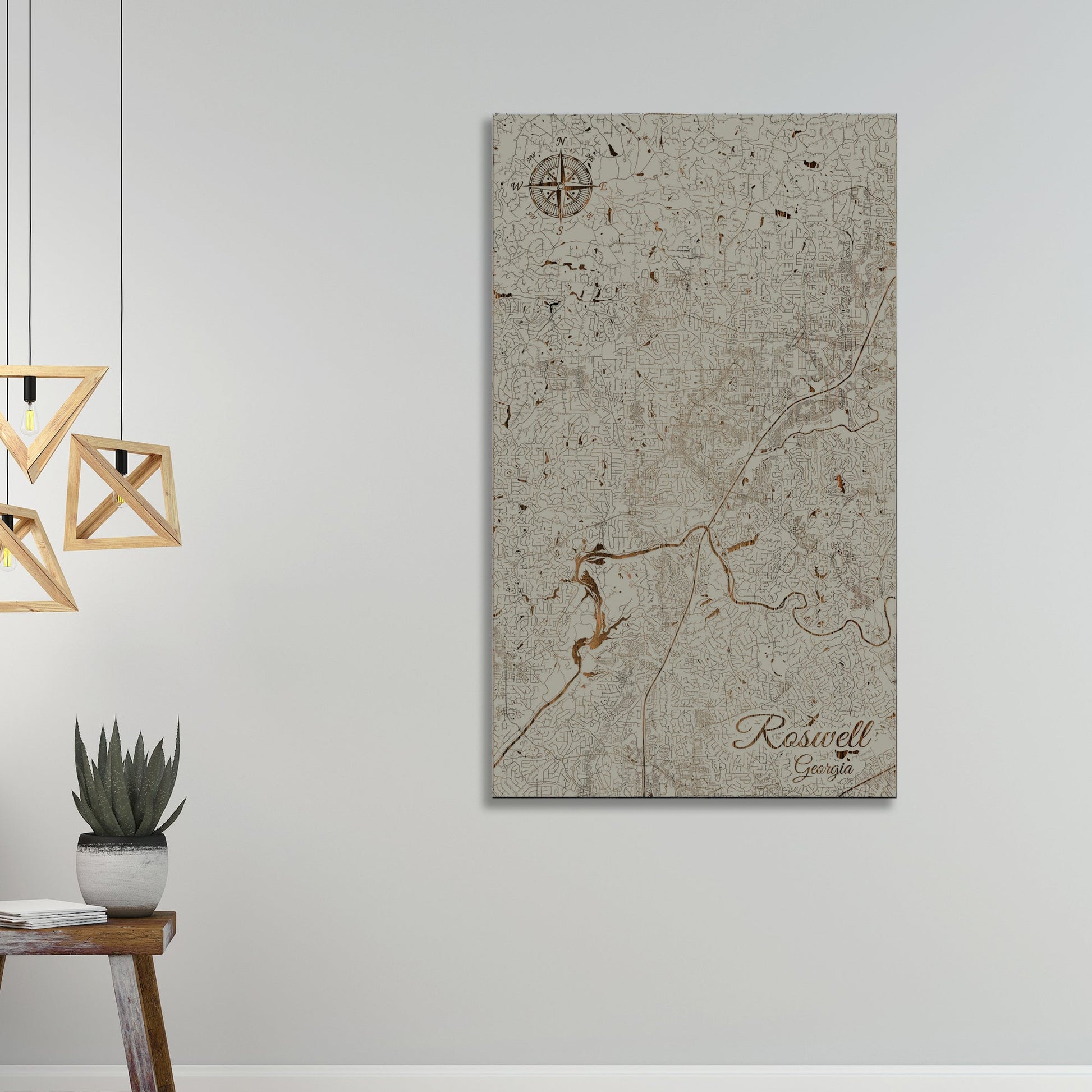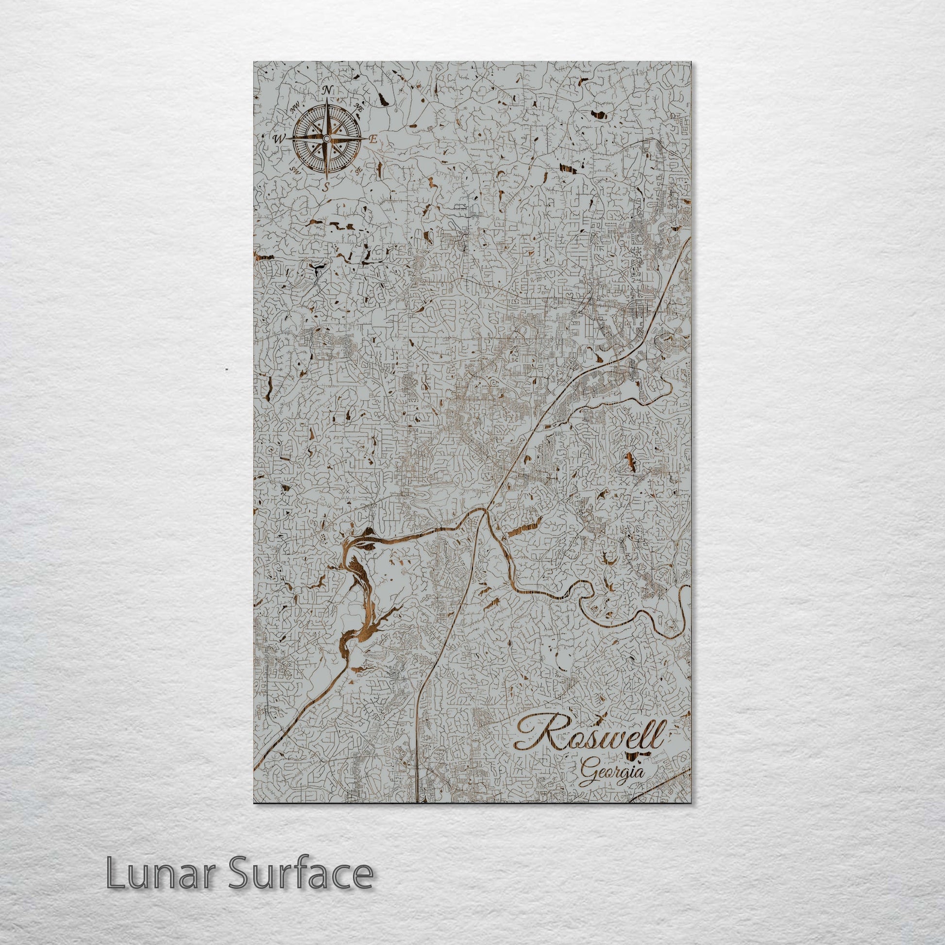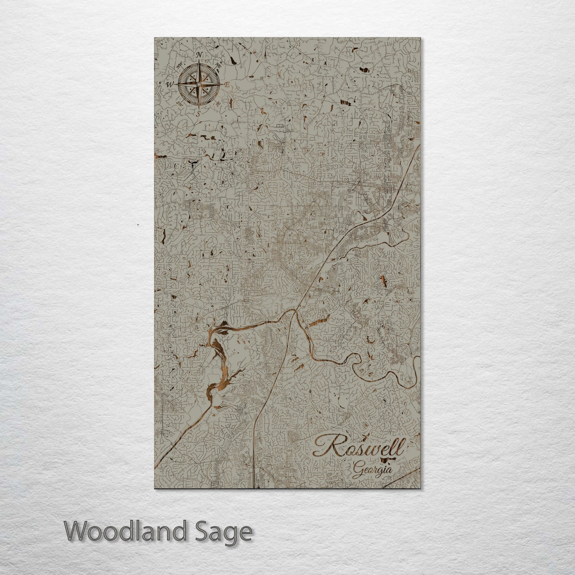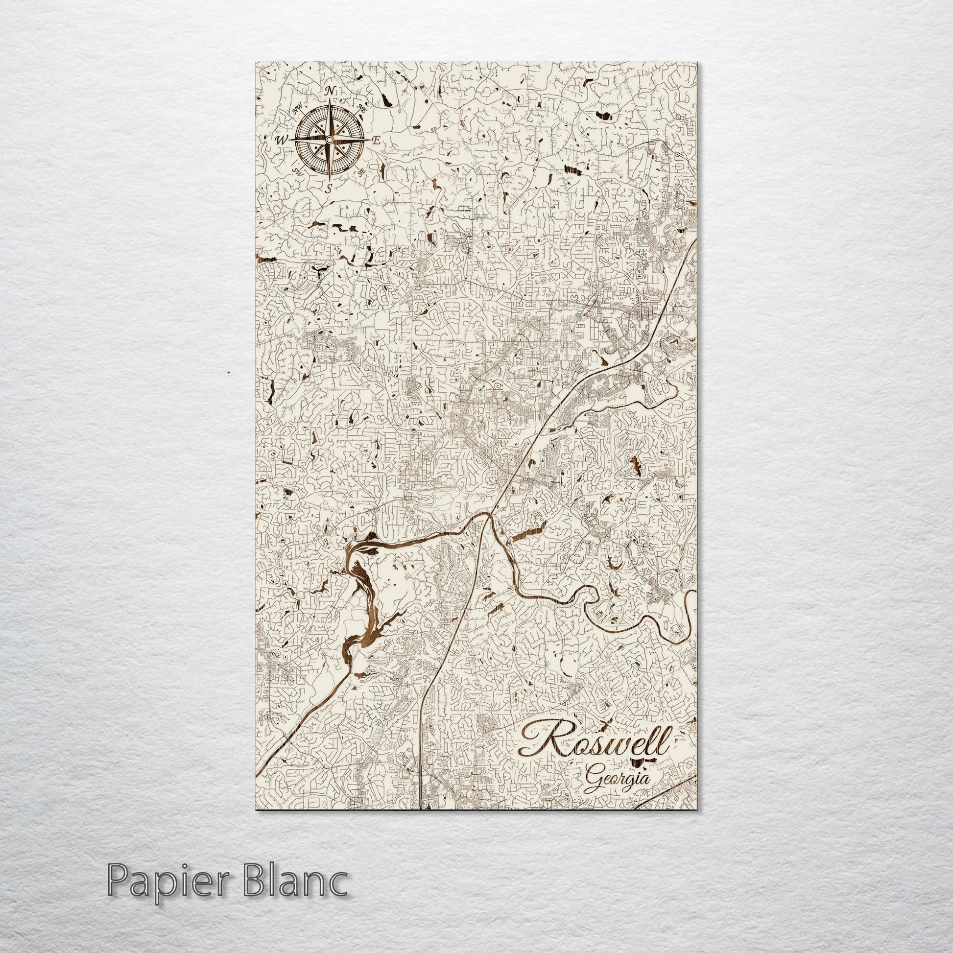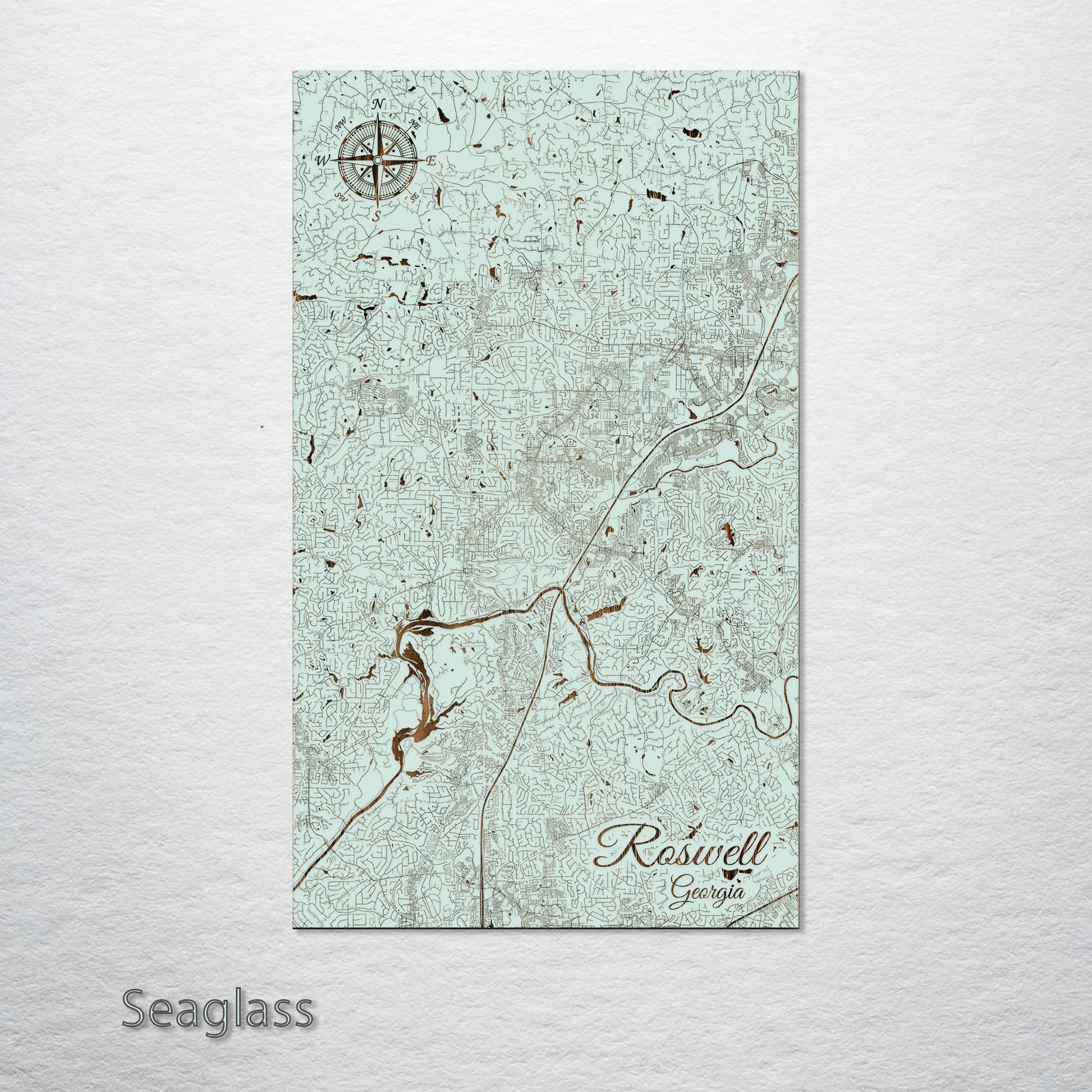This is a street map of Roswell, GA designed by Fire & Pine artists.