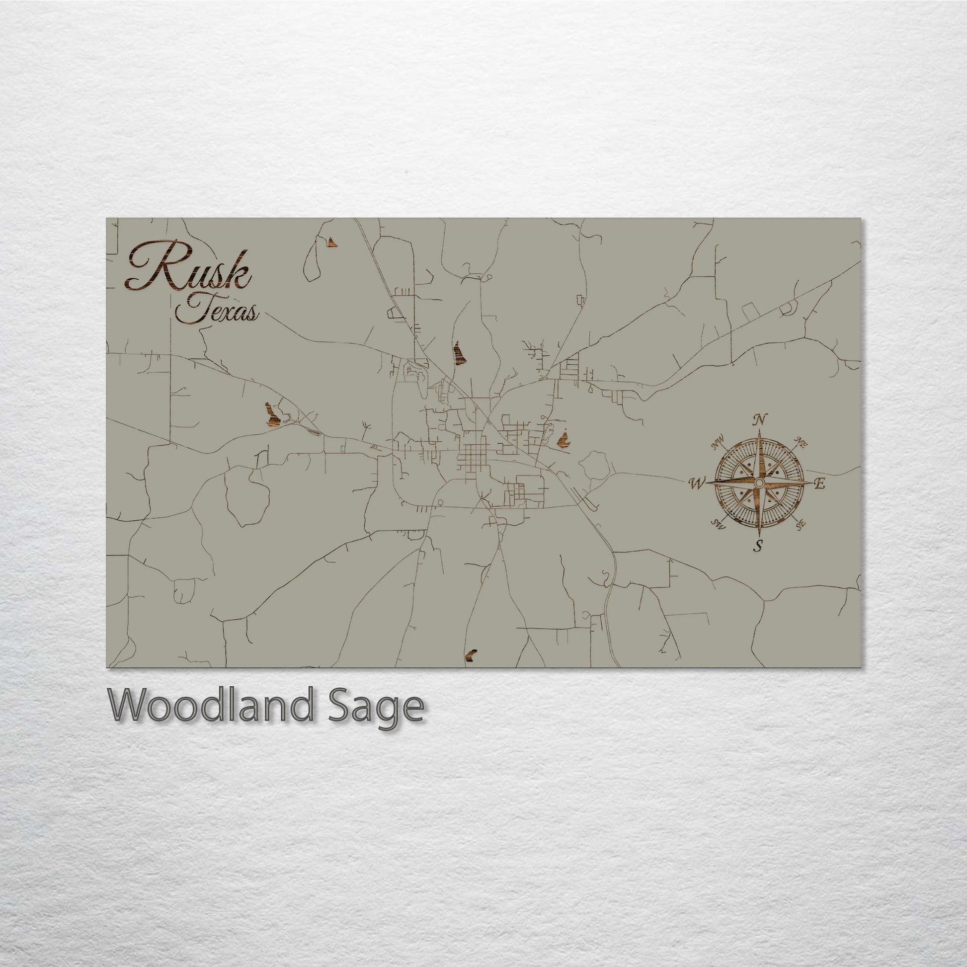 This is a street map of Rusk, TX designed by Fire & Pine artists.