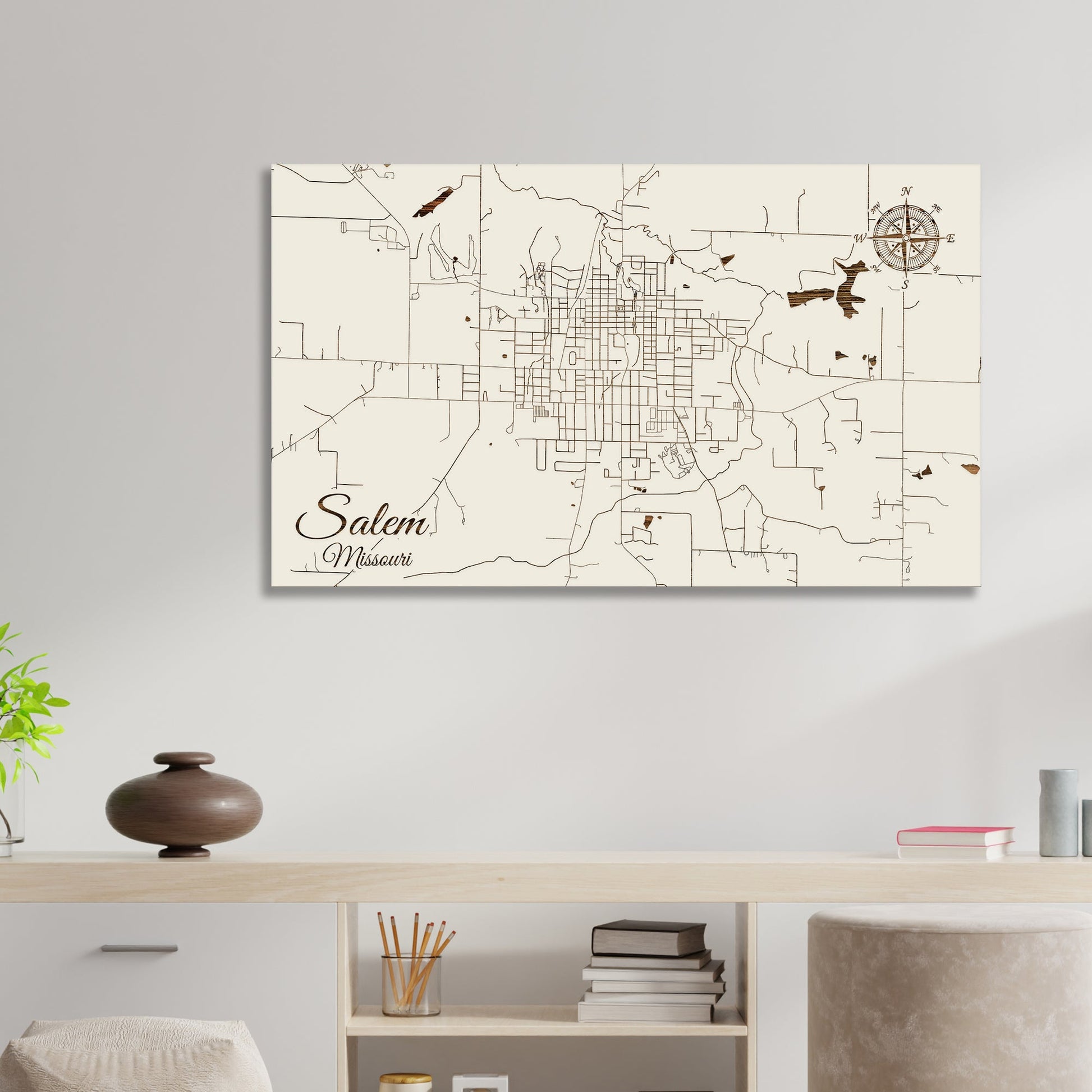 This is a street map of Salem, MO designed by Fire & Pine artists.