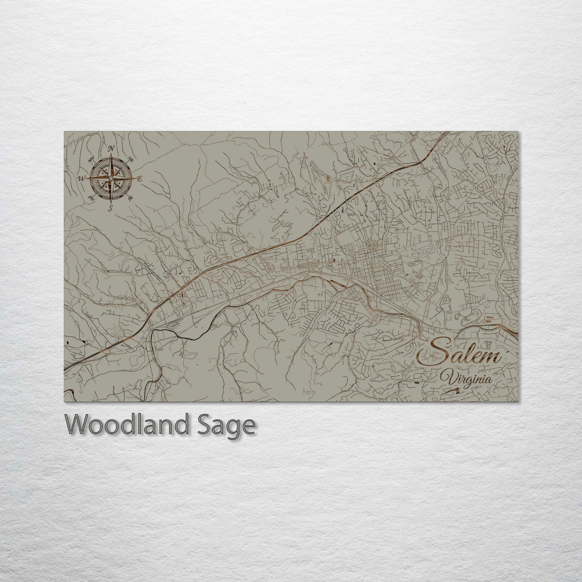 Ideal Present for Small-Town Map Lovers: The Salem, Virginia, wood-engraved street map is a notable addition to any art collection. Finely crafted from premium pine wood, this piece highlights the charming streets of Salem in exquisite detail, making it a unique artwork. It's perfect for those who appreciate the beauty of small-town layouts, regional maps, and the distinct allure of Salem.