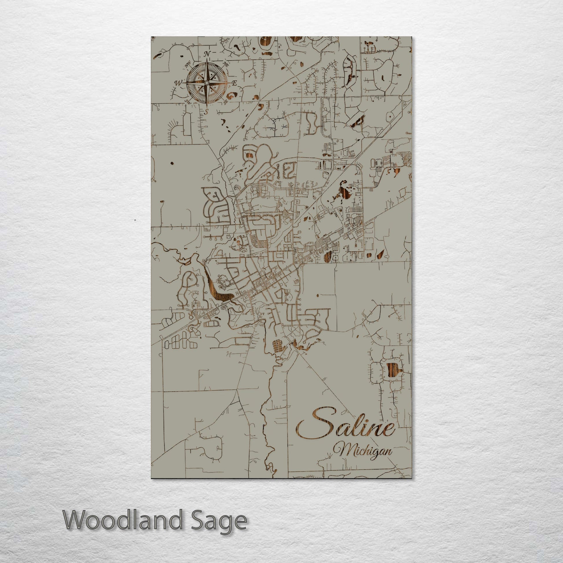 This is a street map of Saline, MI designed by Fire & Pine artists.