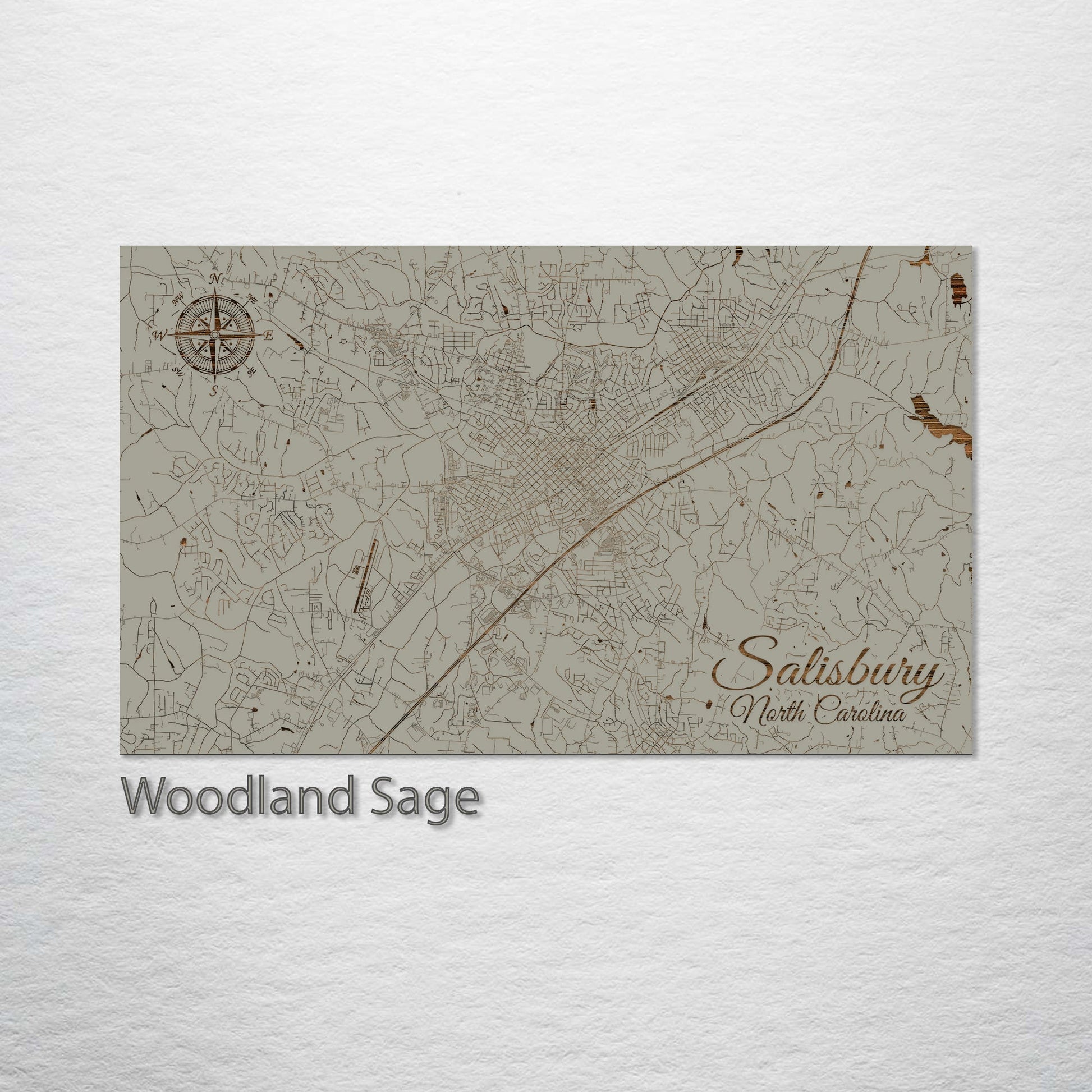 This is a street map of Salisbury, NC designed by Fire & Pine artists.