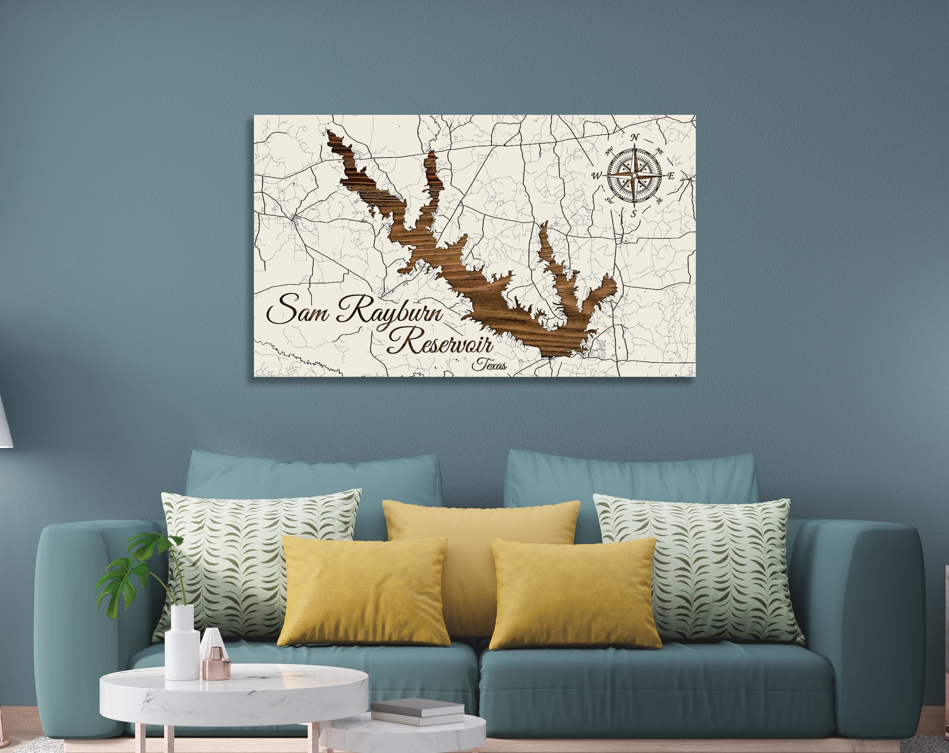 CUSTOMIZATION TO FIT YOUR PREFERENCES: Available in various sizes and color options, this Sam Rayburn Reservoir street map can be tailored to meet your individual preferences or as a unique gift, ensuring it perfectly complements the intended space or matches the recipient's design sensibilities.