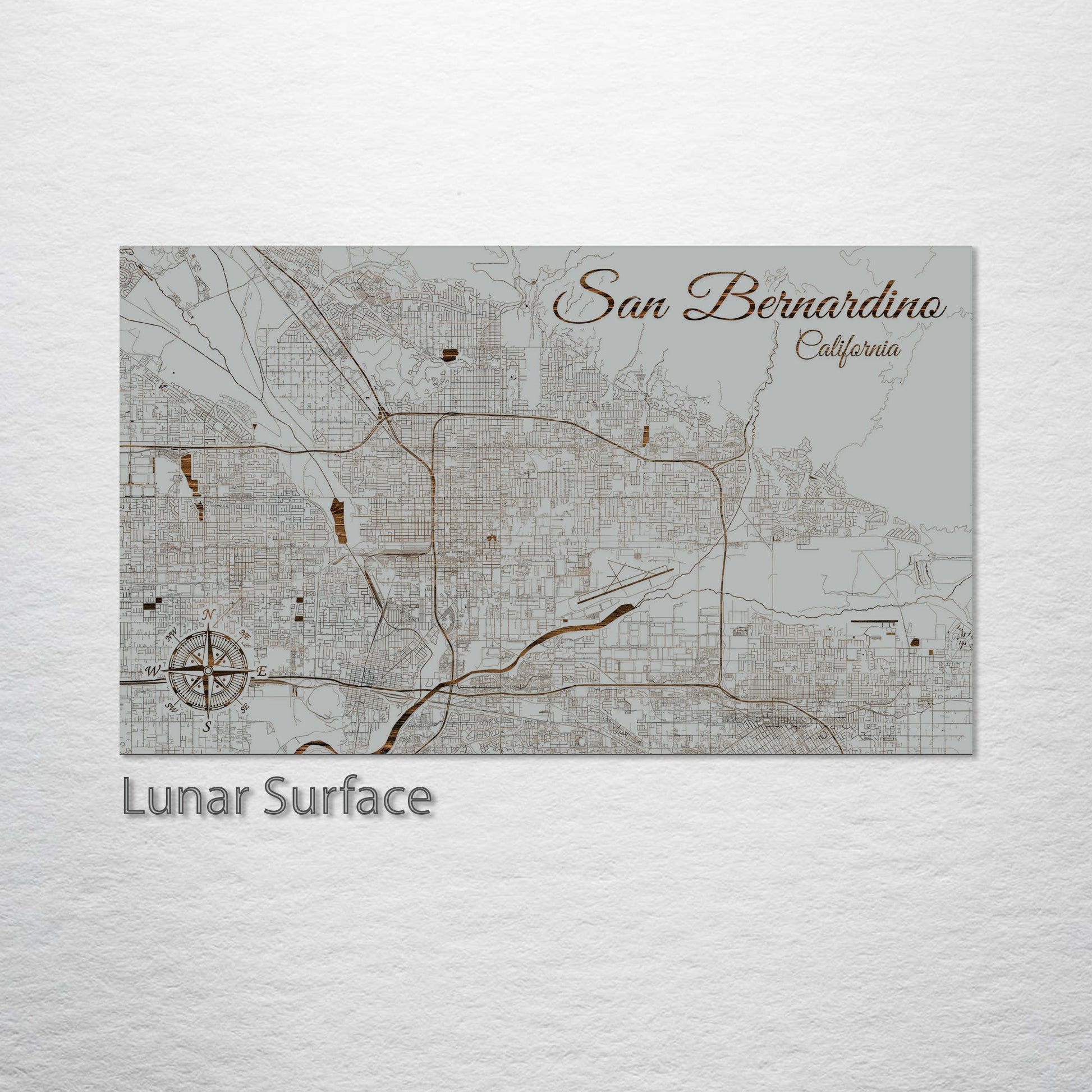 This is a street map of San Bernardino, CA designed by Fire & Pine artists.