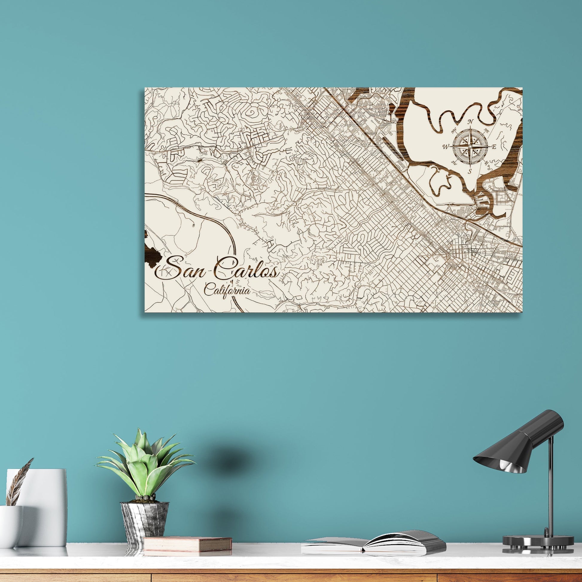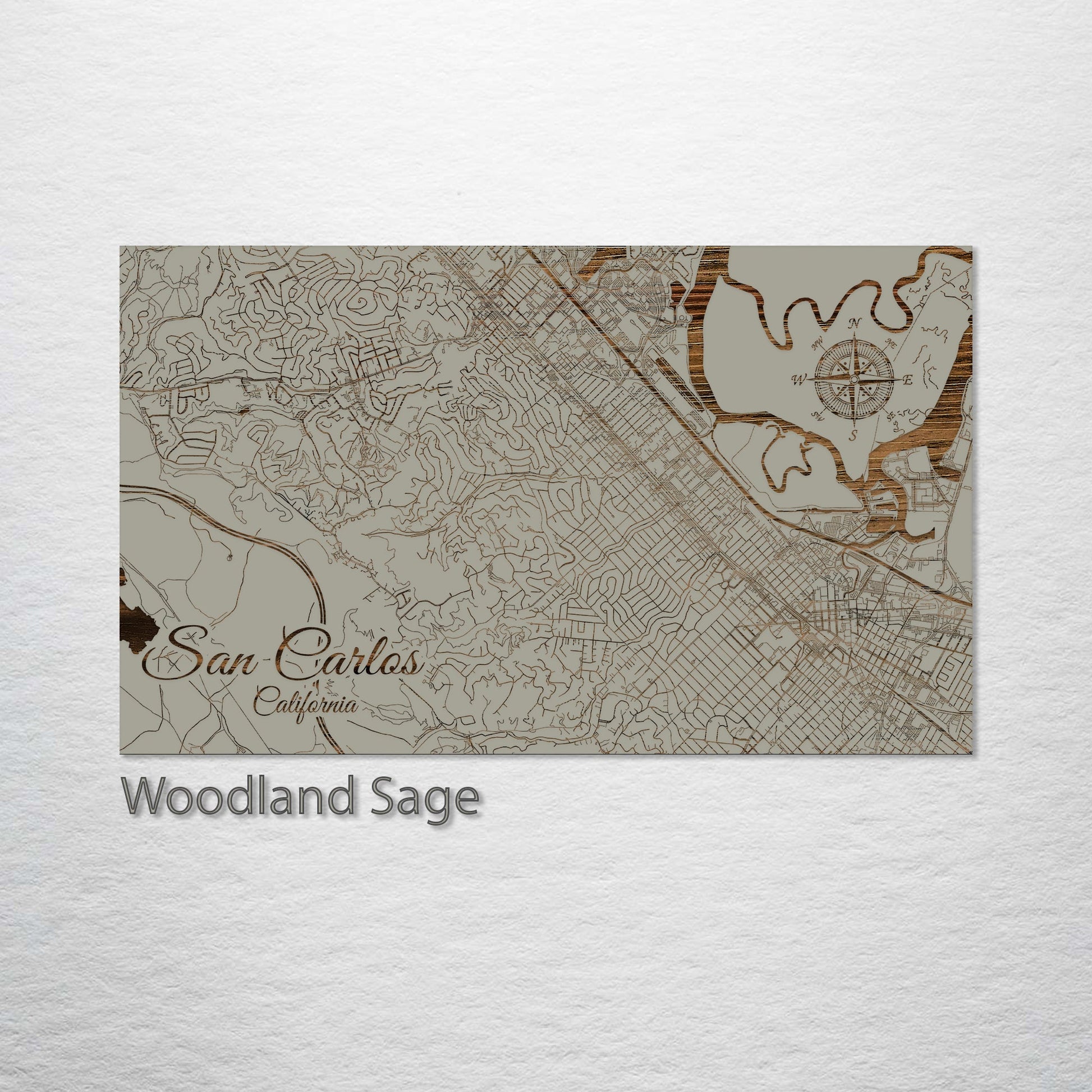 This is a street map of San Carlos, CA designed by Fire & Pine artists.
