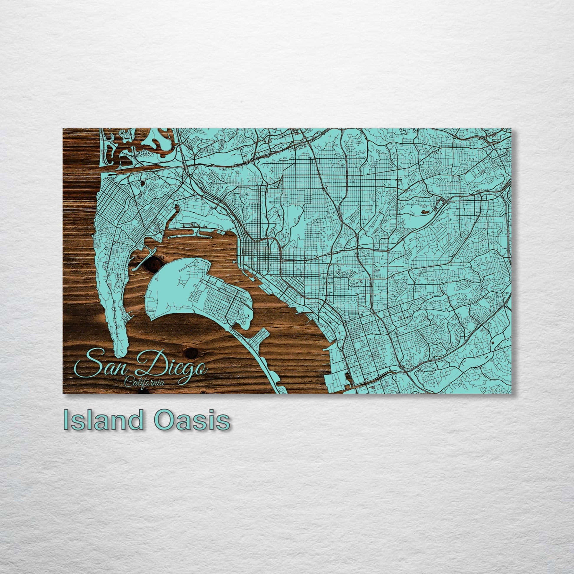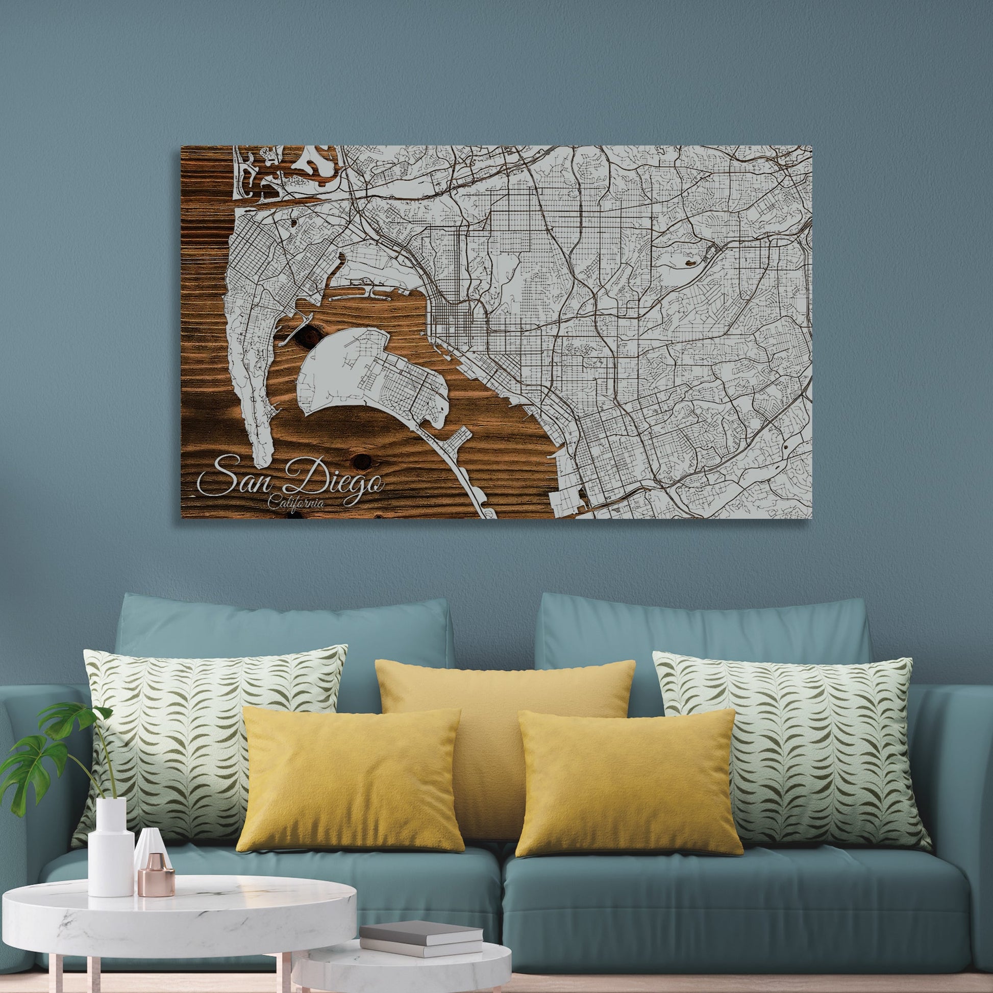 This San Diego, California engraved street map is made from high-quality pine wood. The map appeals to individuals who have a connection to or interest in San Diego.
