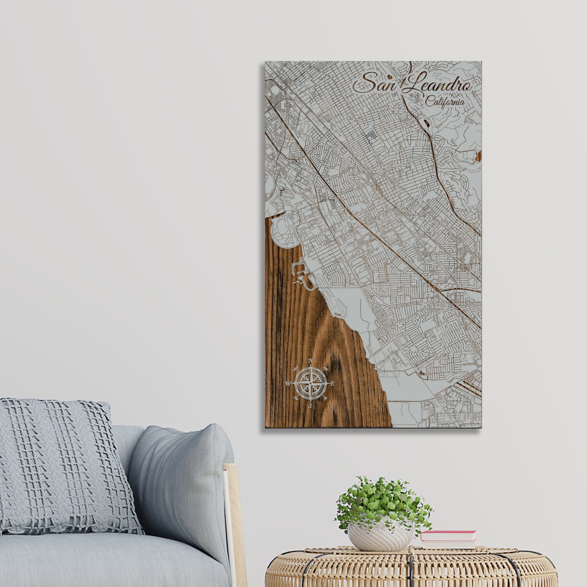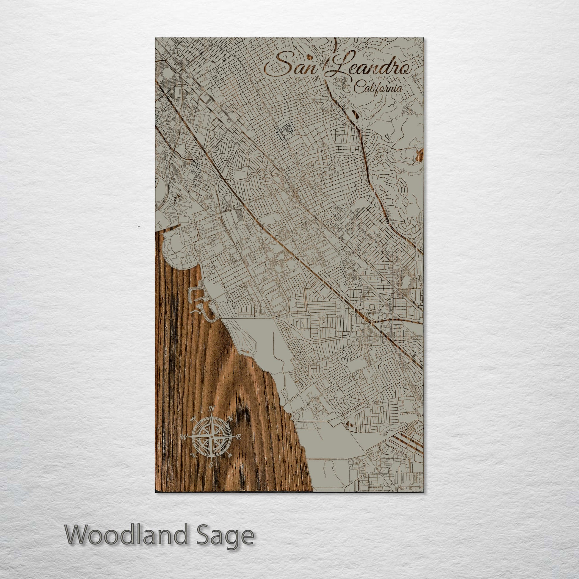 This is a street map of San Leandro, CA designed by Fire & Pine artists.