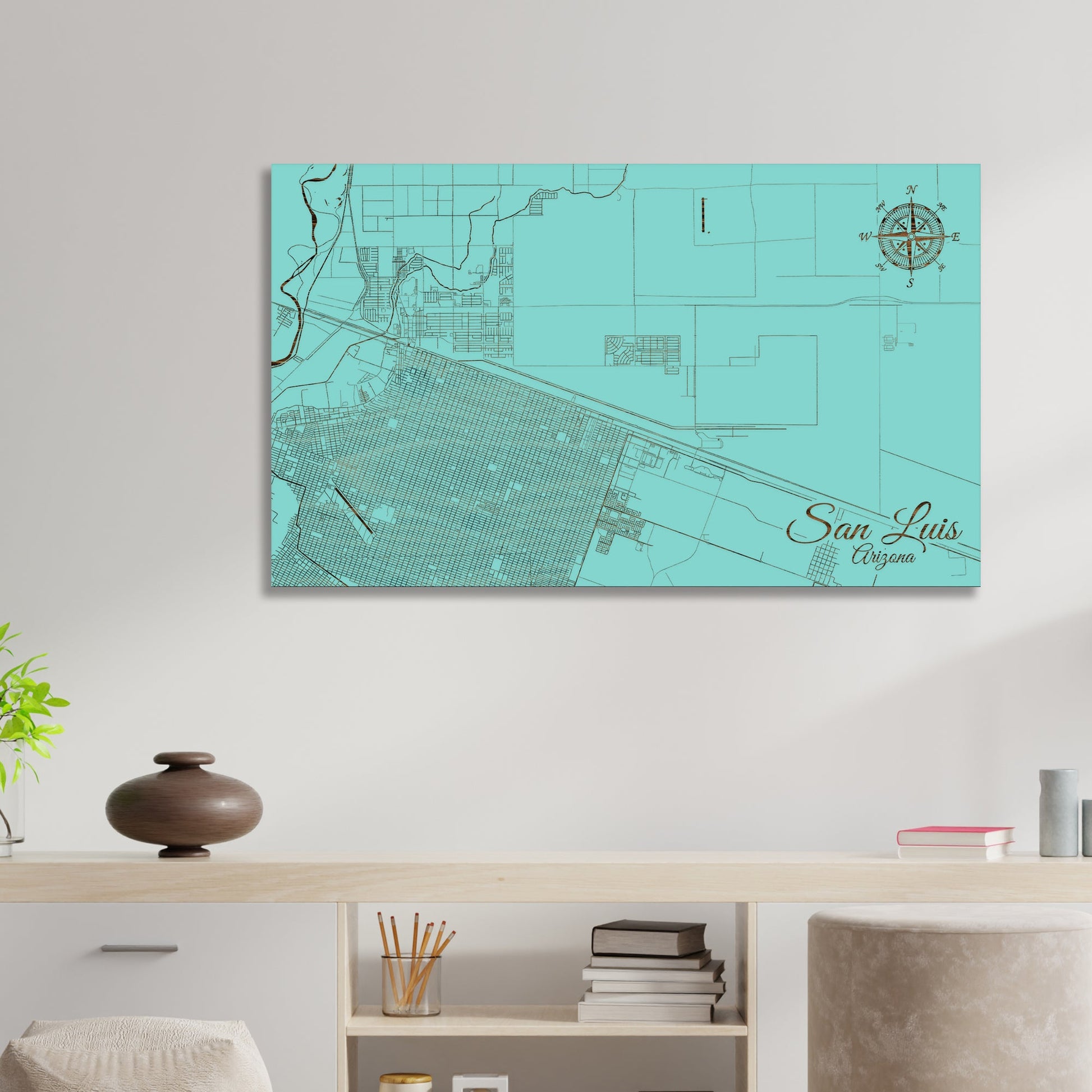 This is a street map of San Luis, AZ designed by Fire & Pine artists.