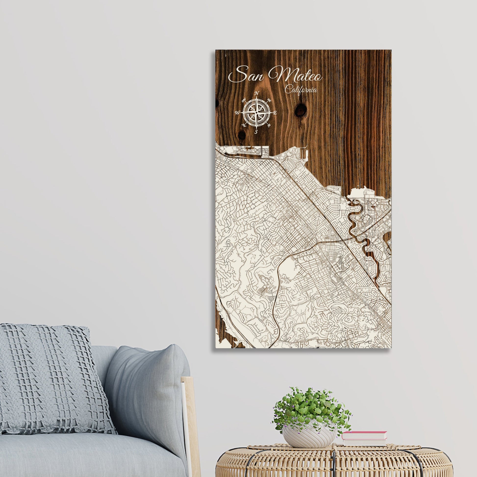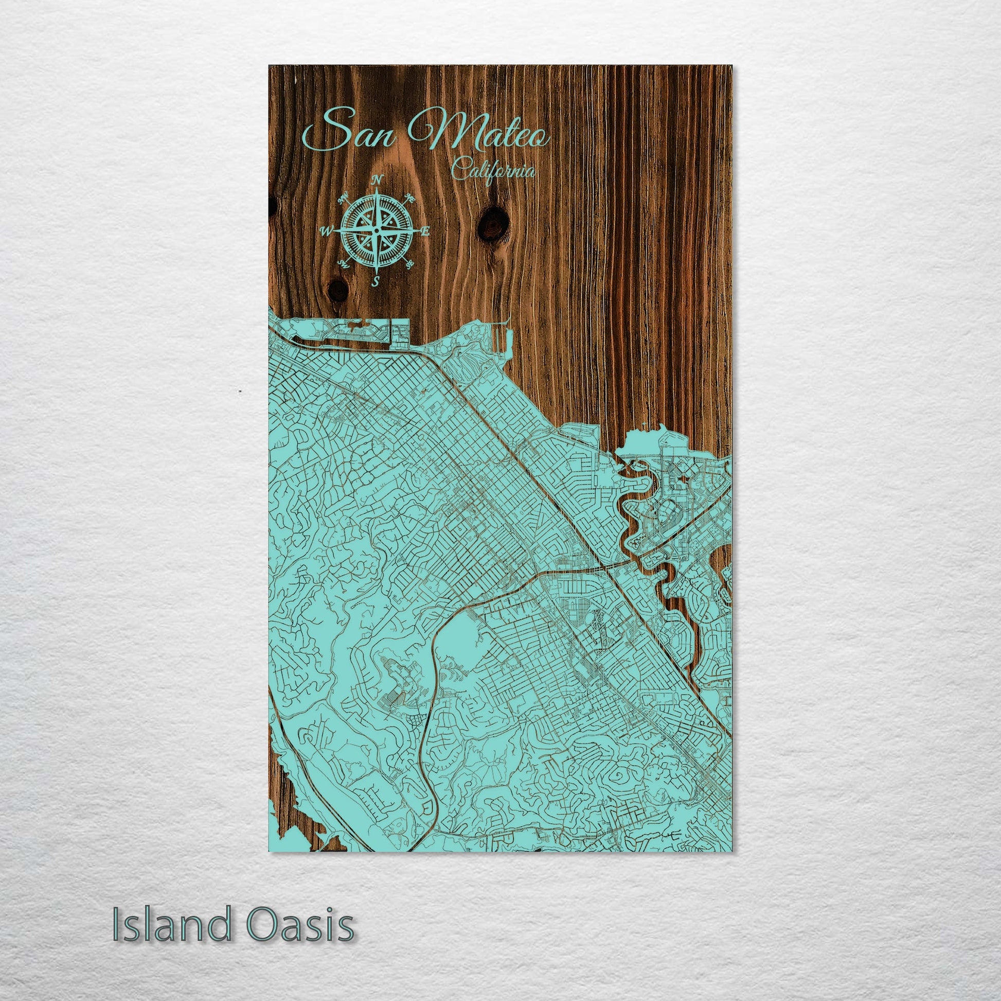 This is a street map of San Mateo, CA designed by Fire & Pine artists.