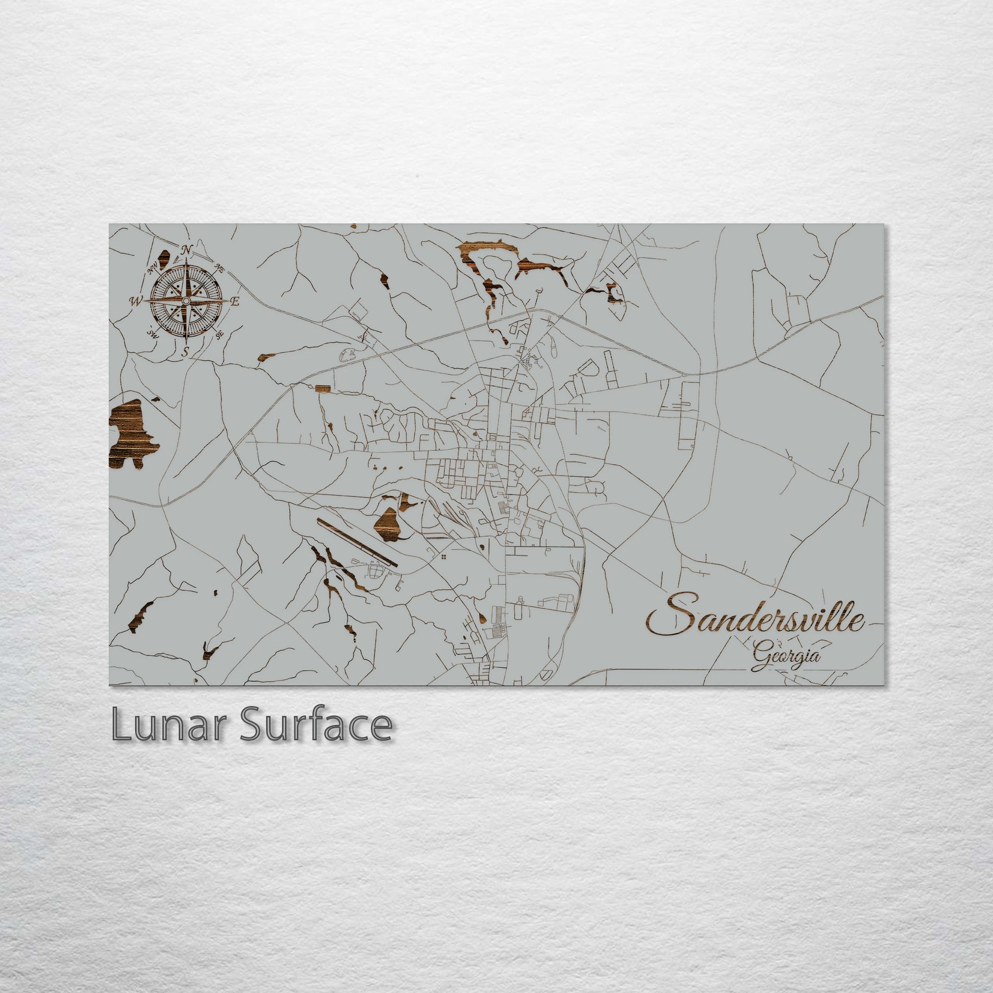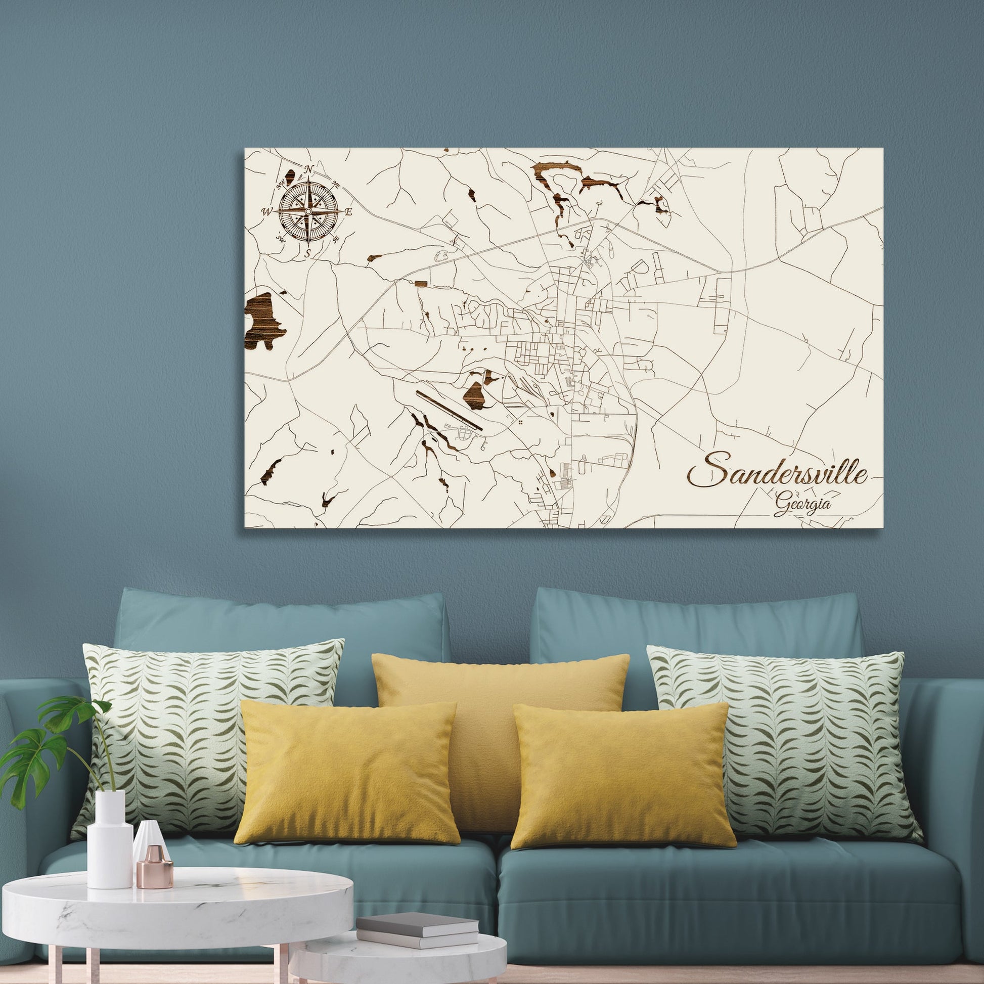 This is a street map of Sandersville, GA designed by Fire & Pine artists.