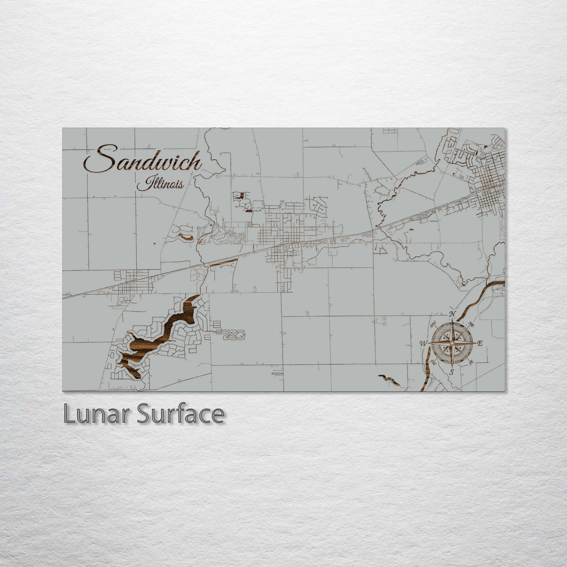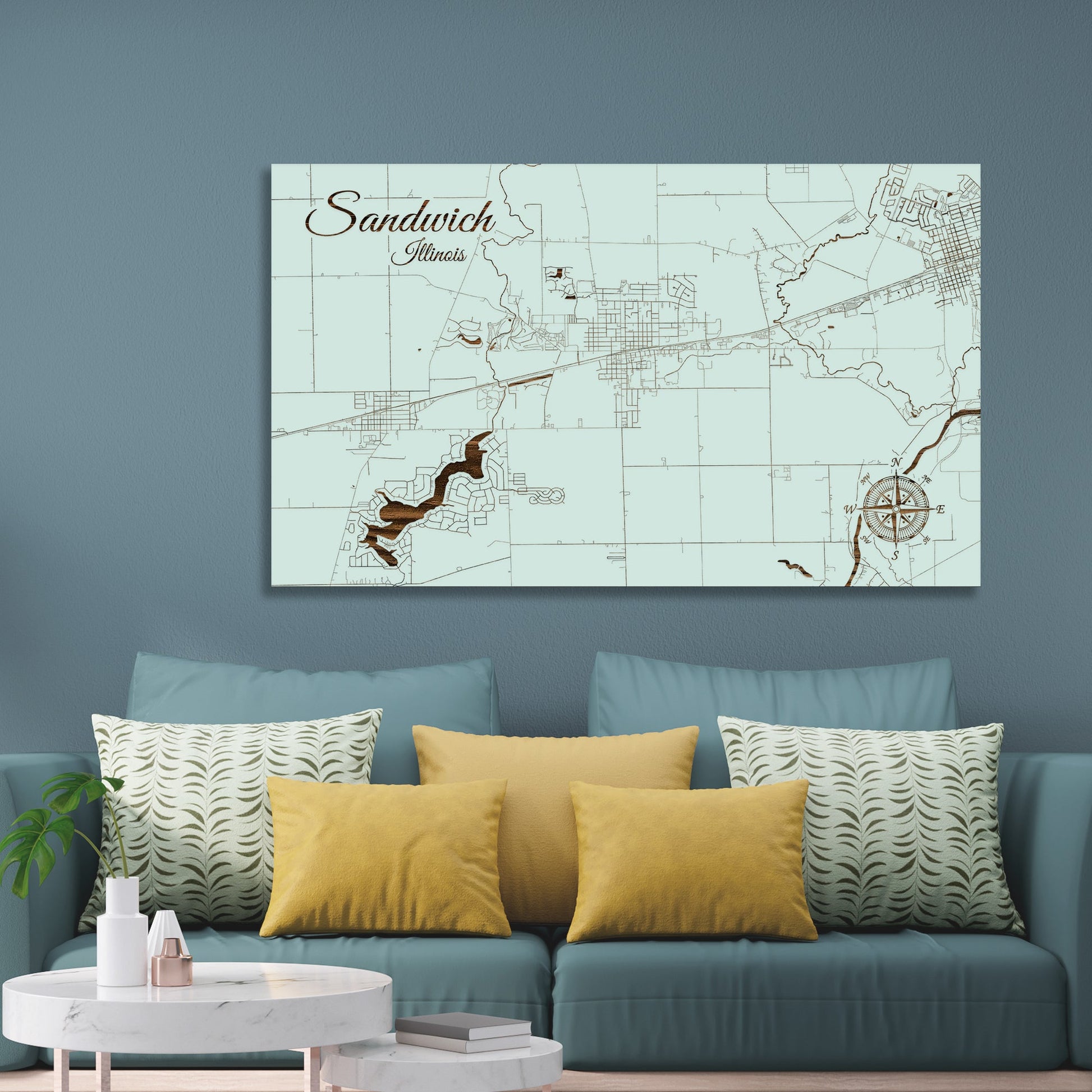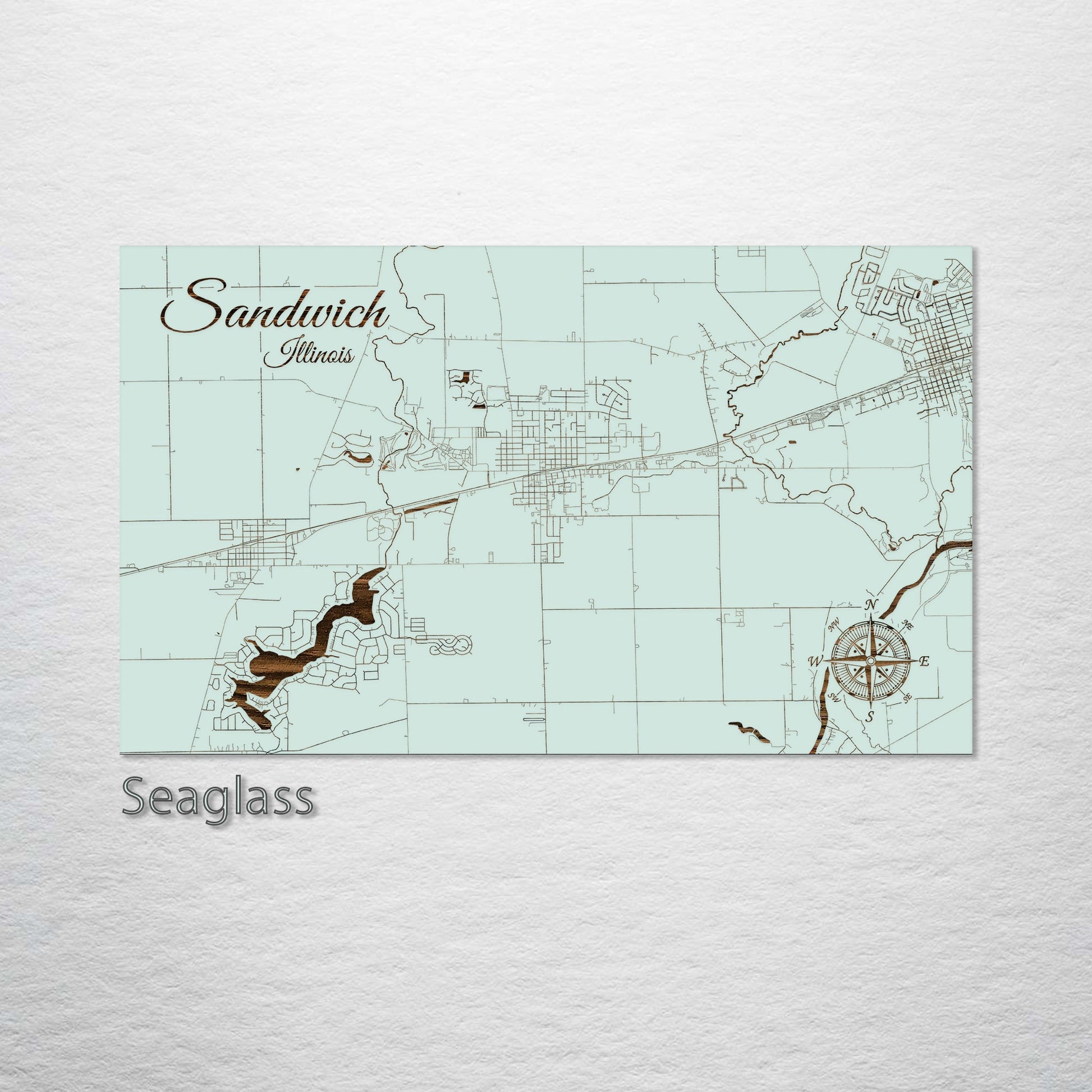 This is a street map of Sandwich, IL designed by Fire & Pine artists.