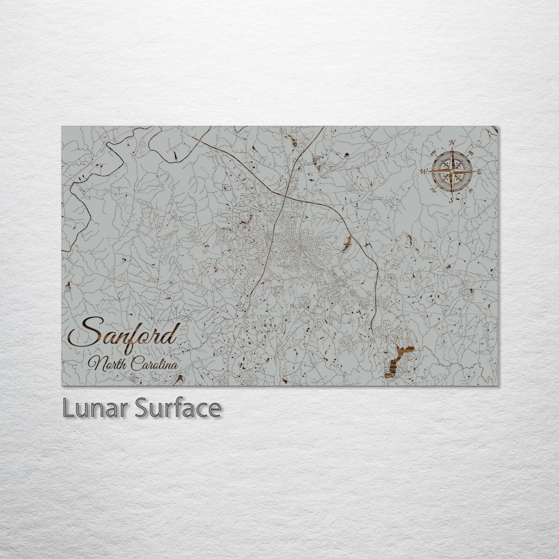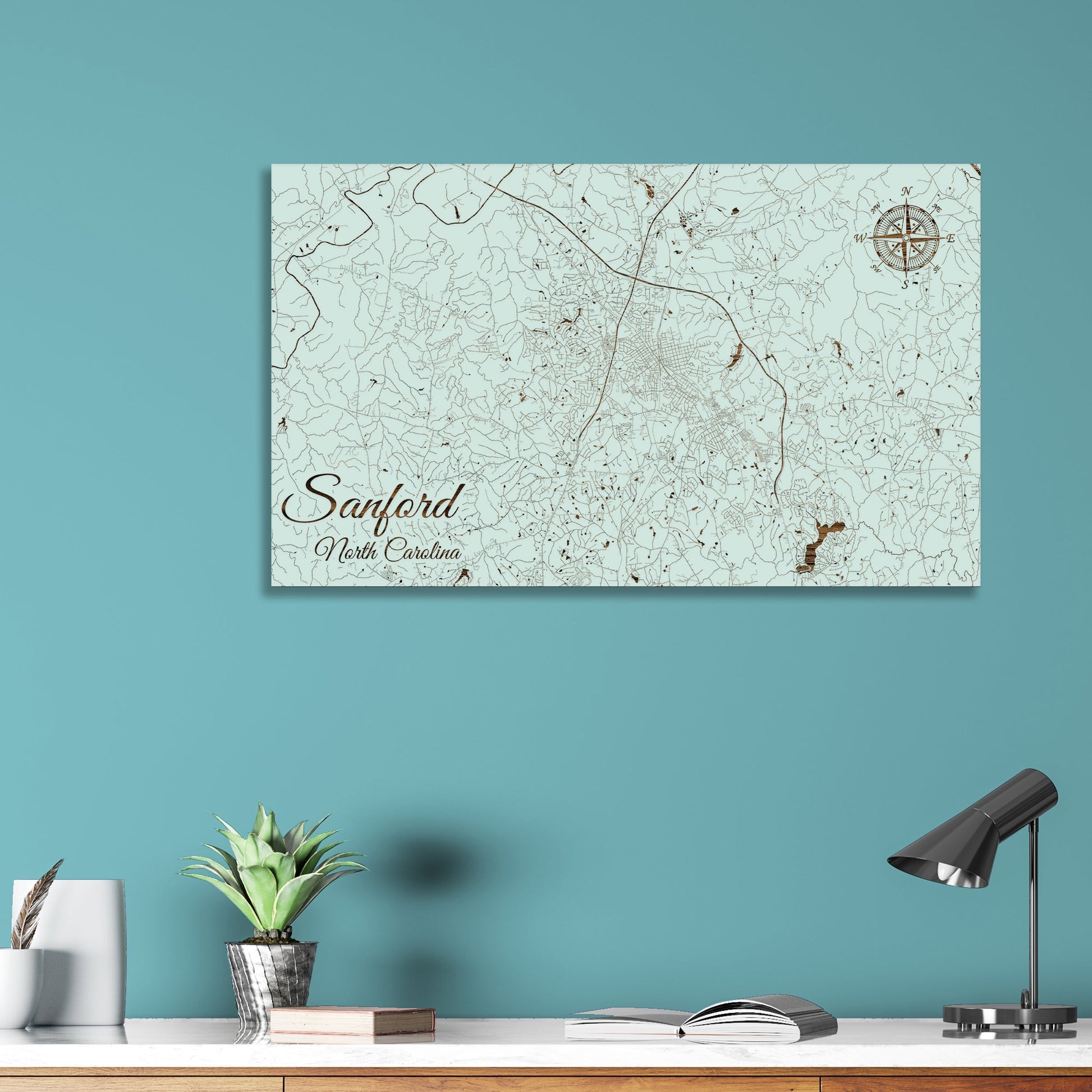 This is a street map of Sanford, NC designed by Fire & Pine artists.