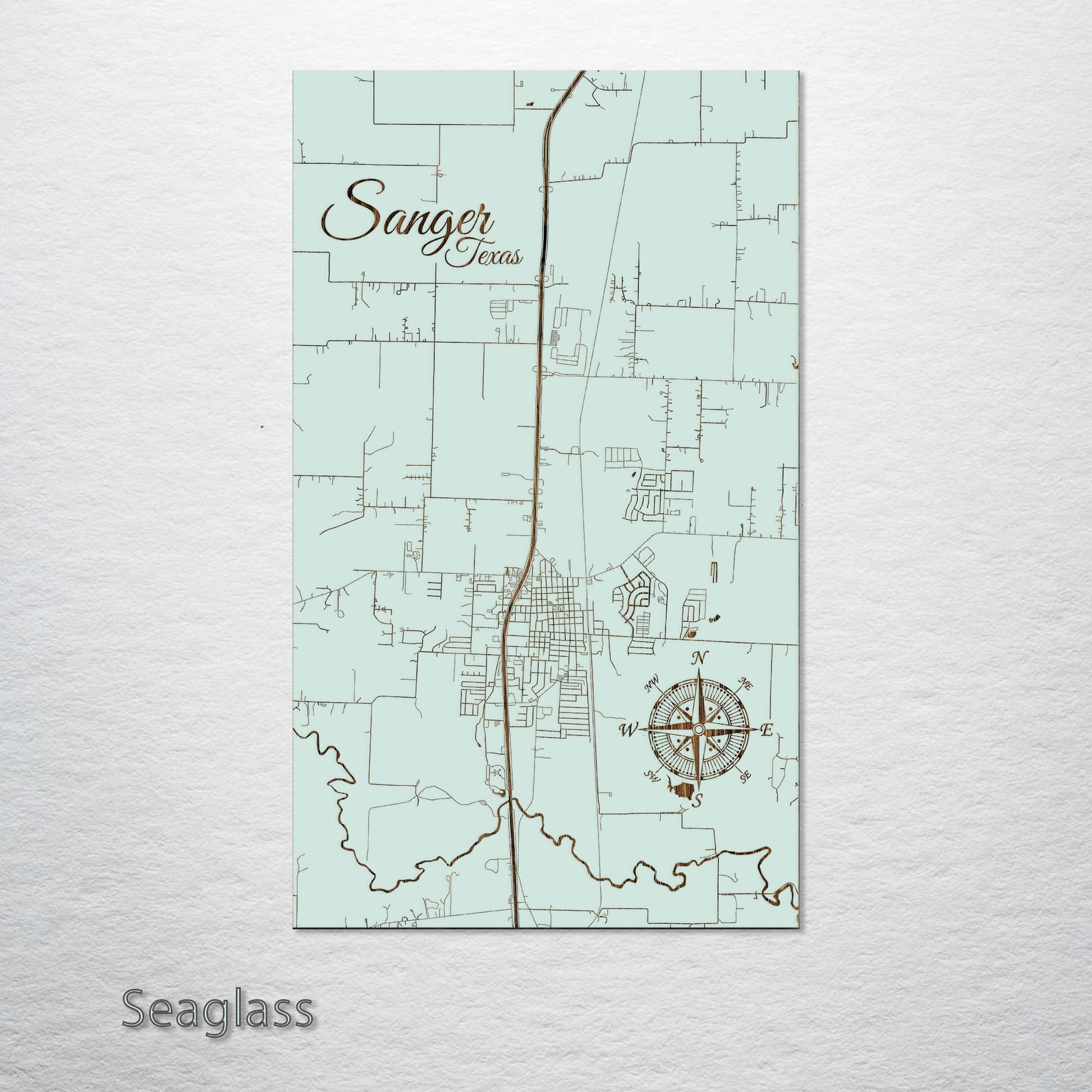 This is a street map of Sanger, TX designed by Fire & Pine artists.