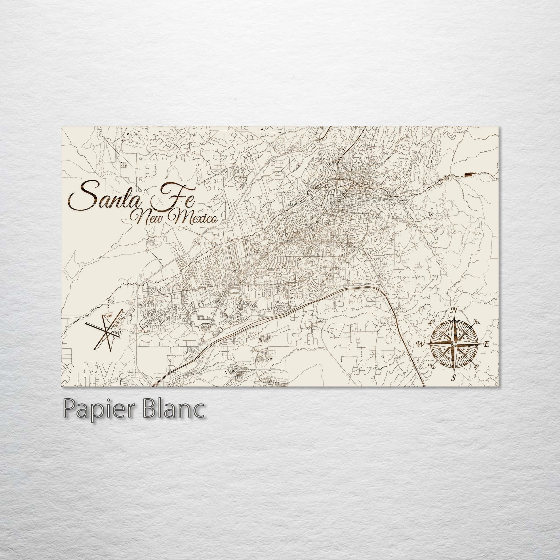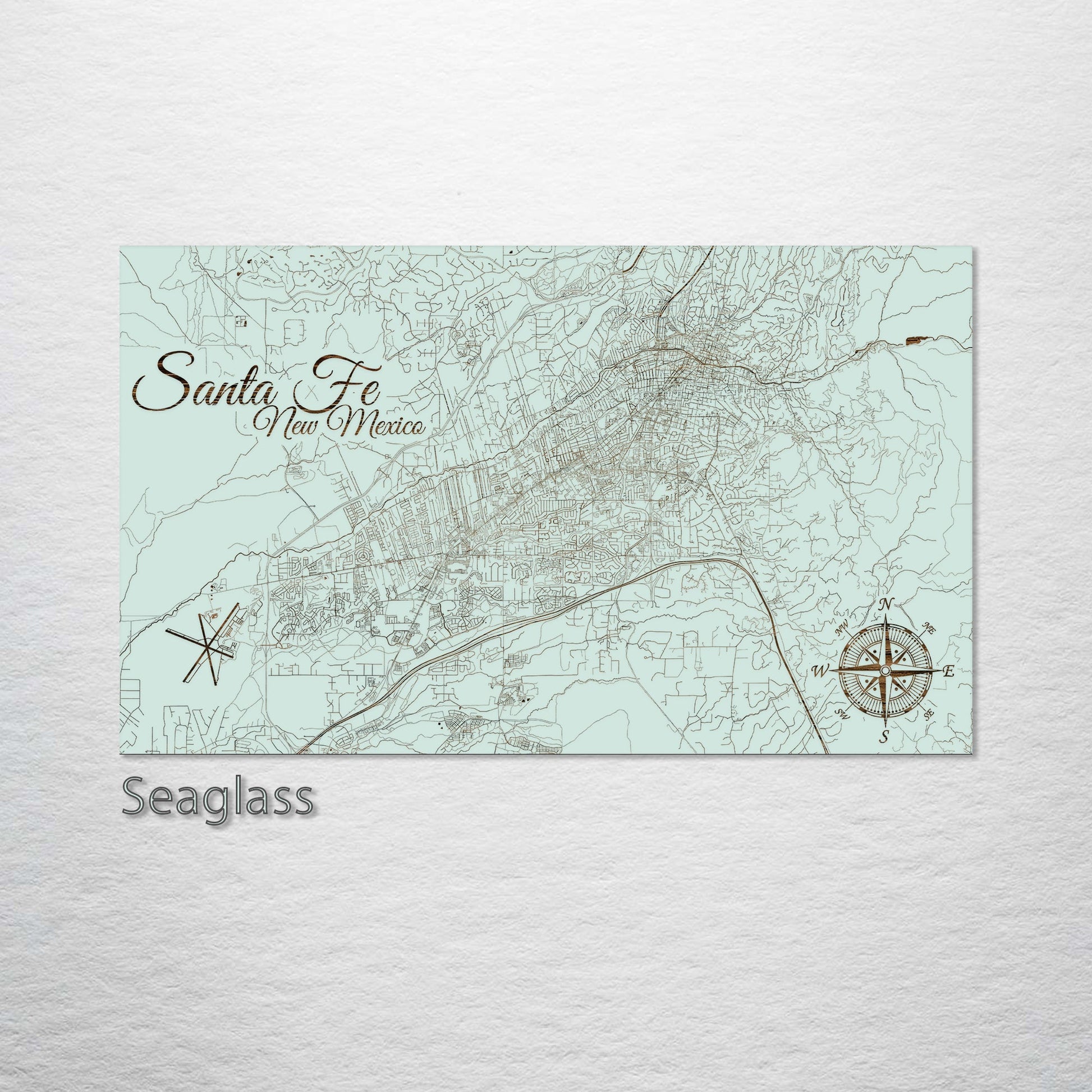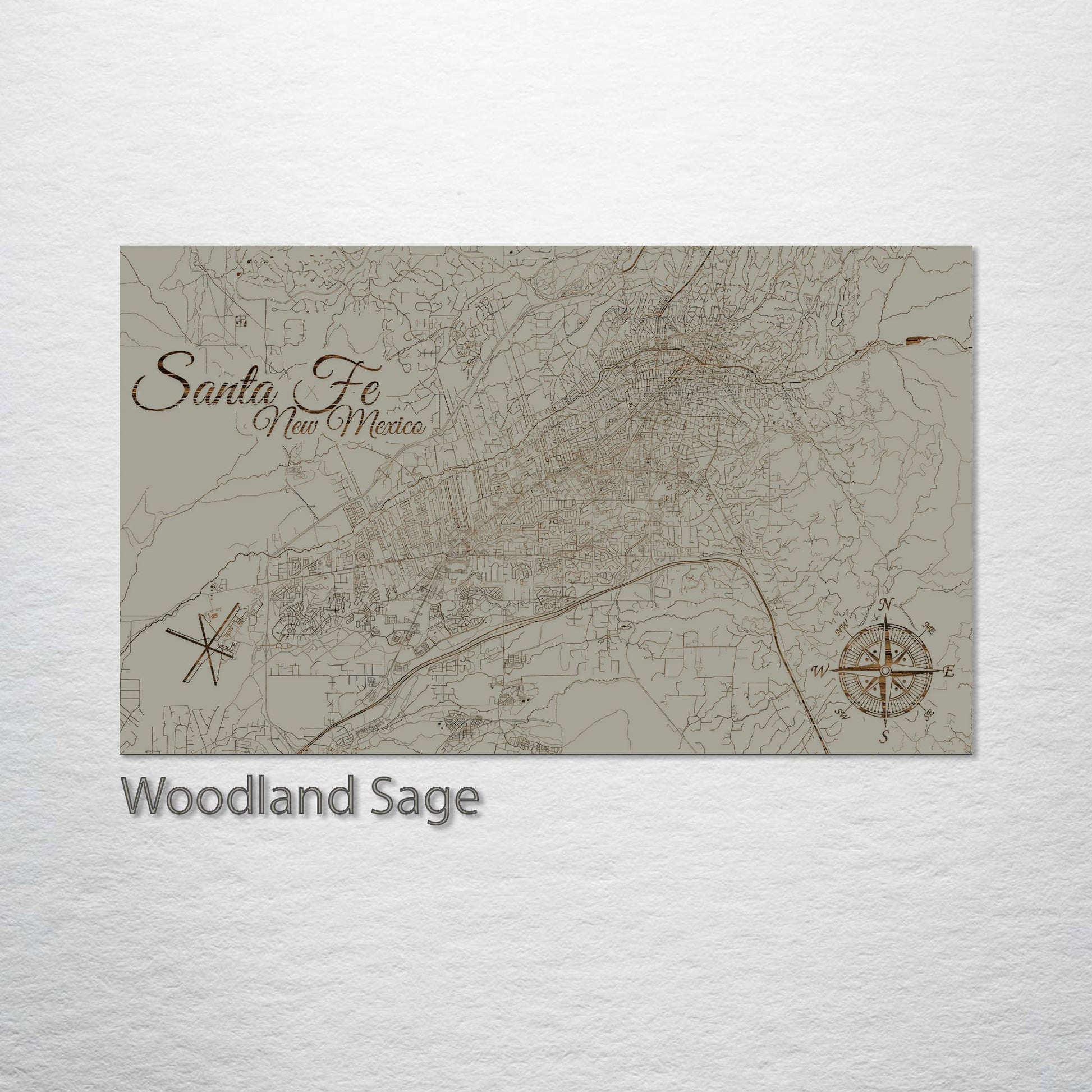 This is a street map of Santa Fe, NM designed by Fire & Pine artists.