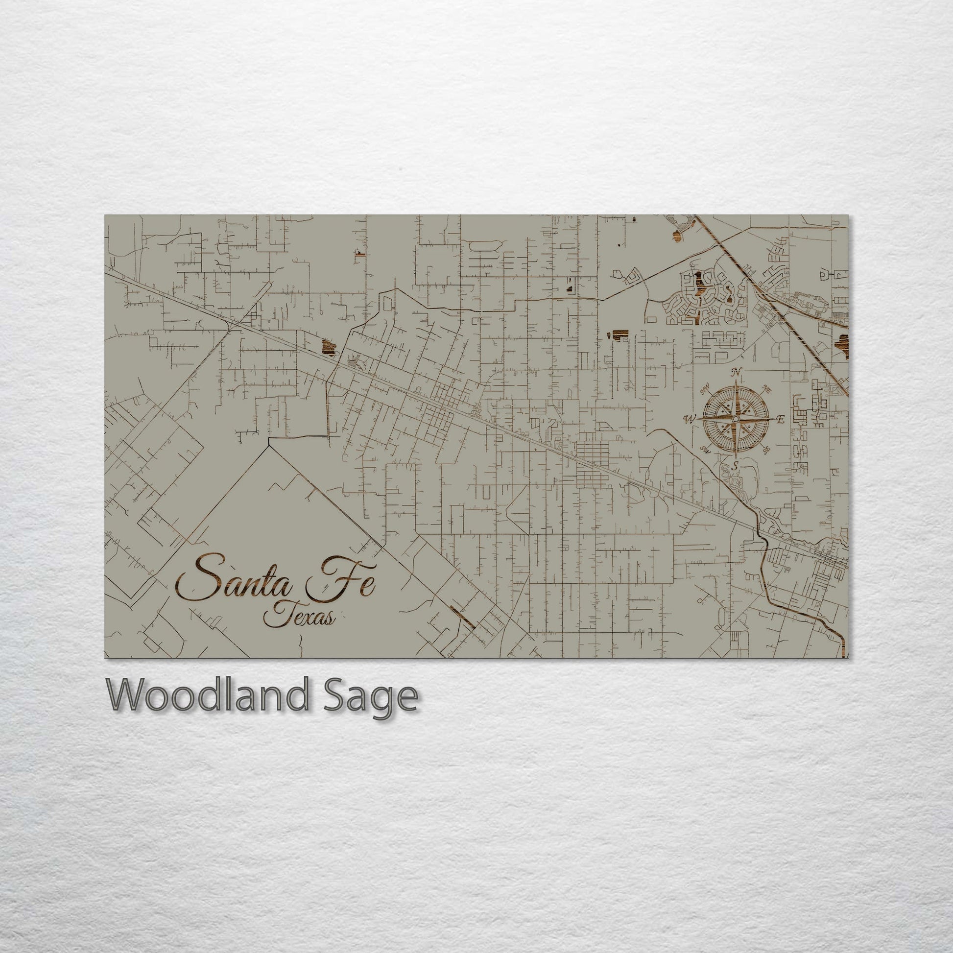 This wood-engraved Santa Fe, Texas street map is a notable addition to any art lover's collection. Meticulously crafted from premium pine wood, it showcases the unique street layout of Santa Fe in exquisite detail, offering a distinctive visual appeal.