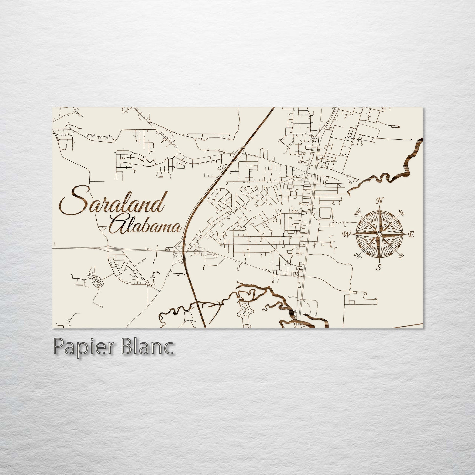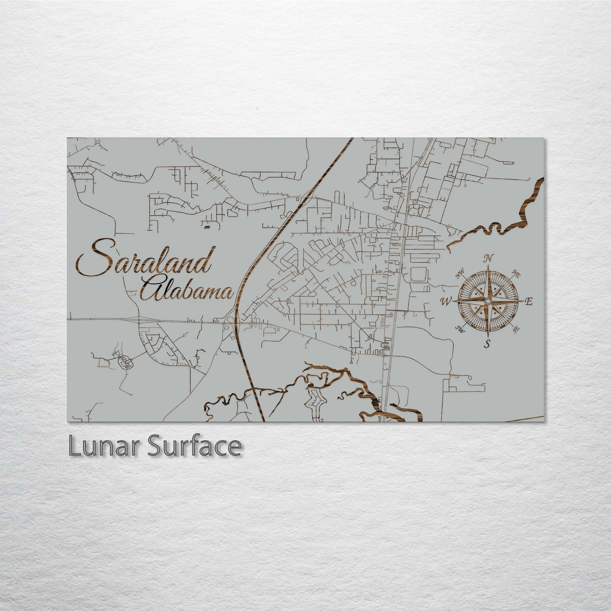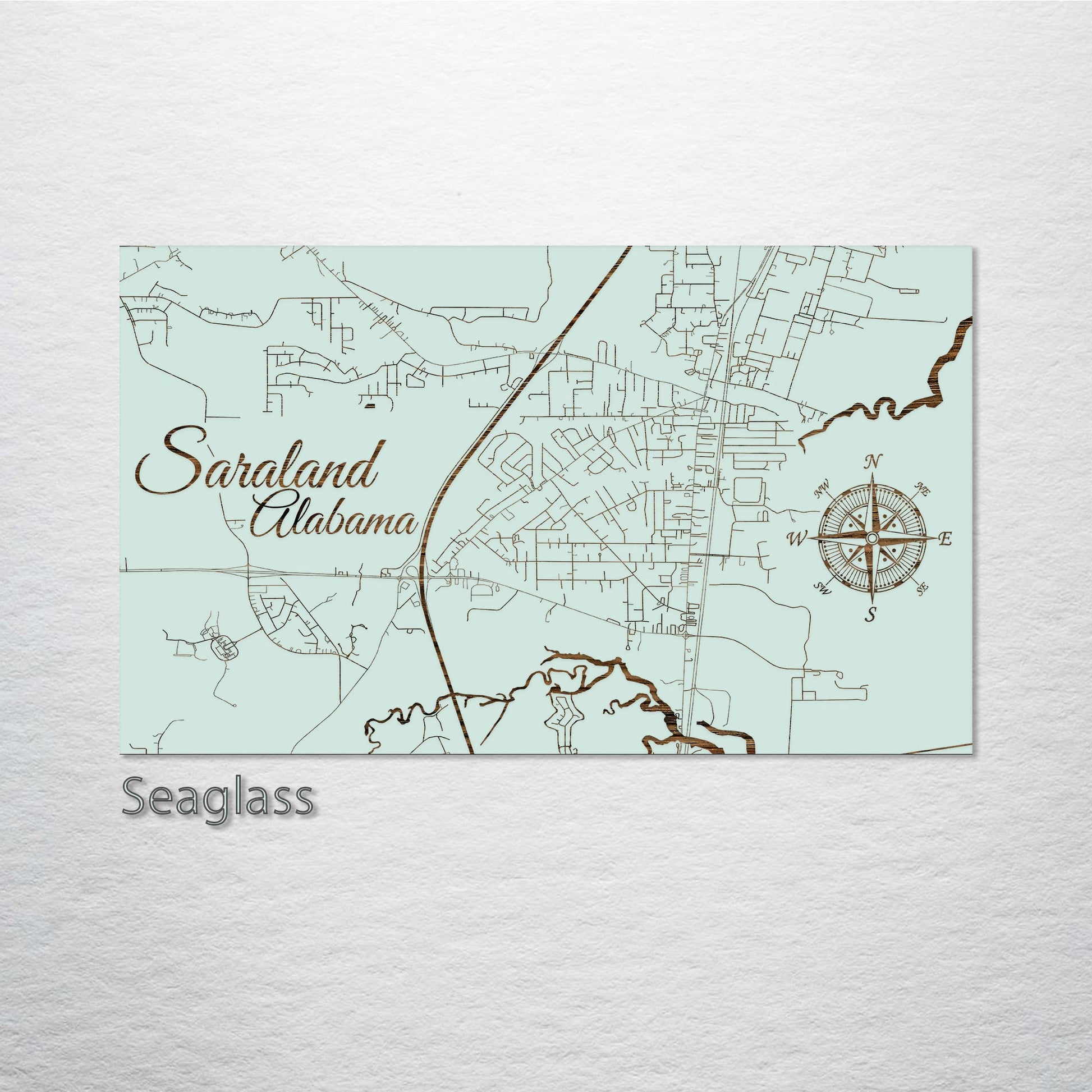 This is a street map of Saraland, AL designed by Fire & Pine artists.