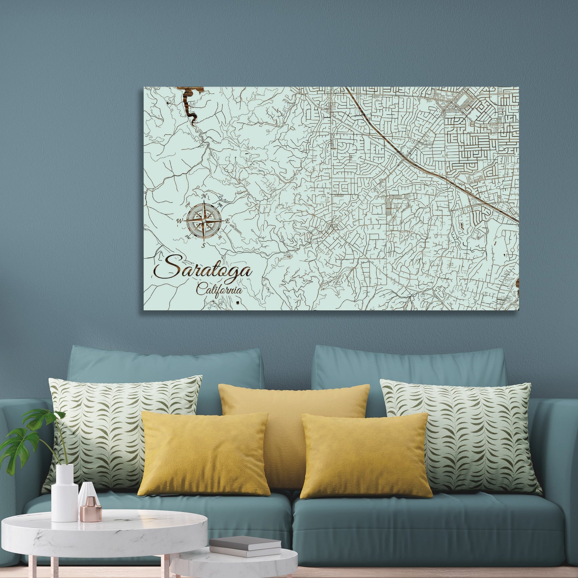 This is a street map of Saratoga, CA designed by Fire & Pine artists.
