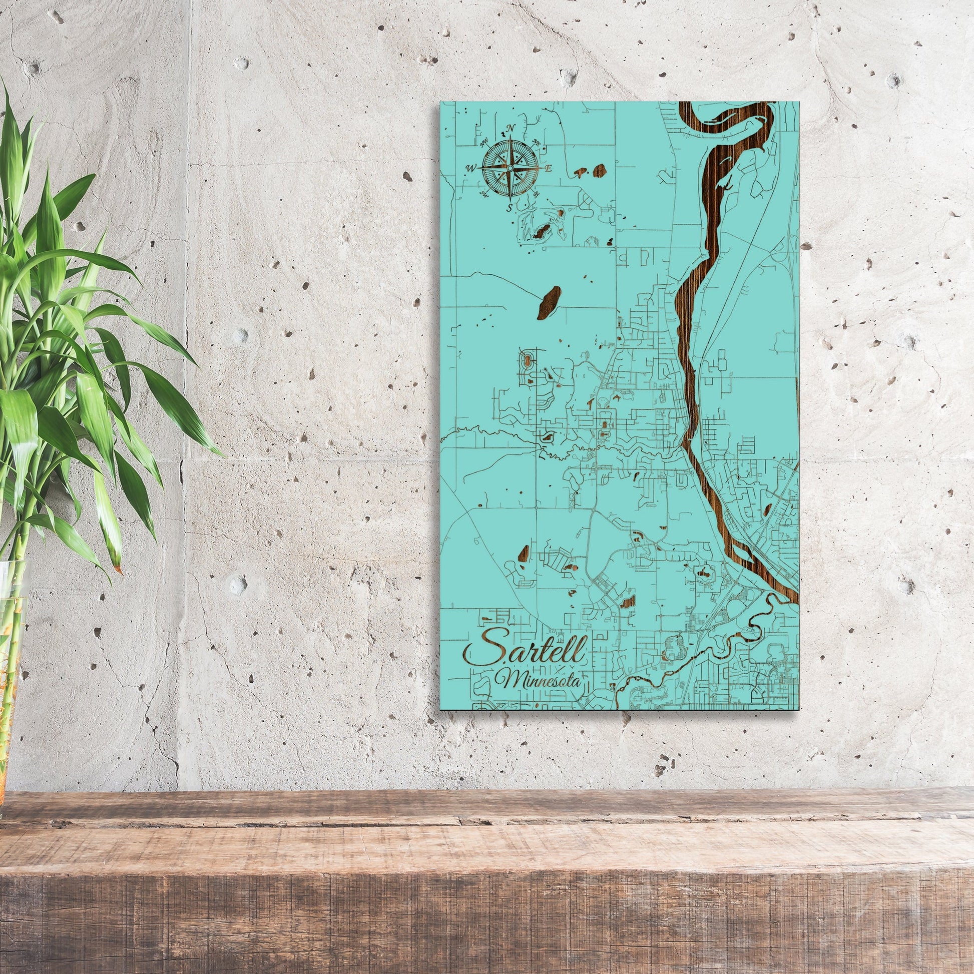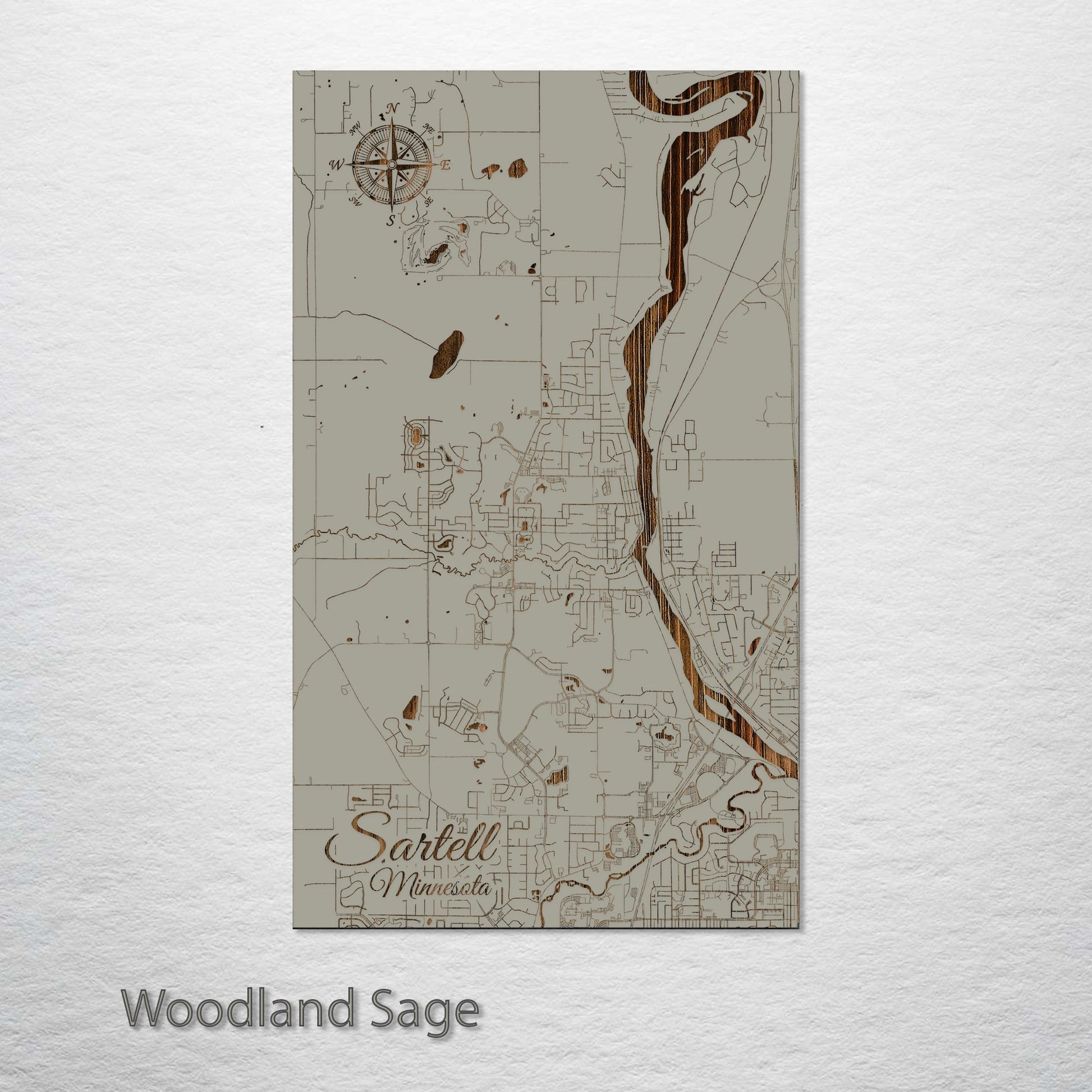 This is a street map of Sartell, MN designed by Fire & Pine artists.