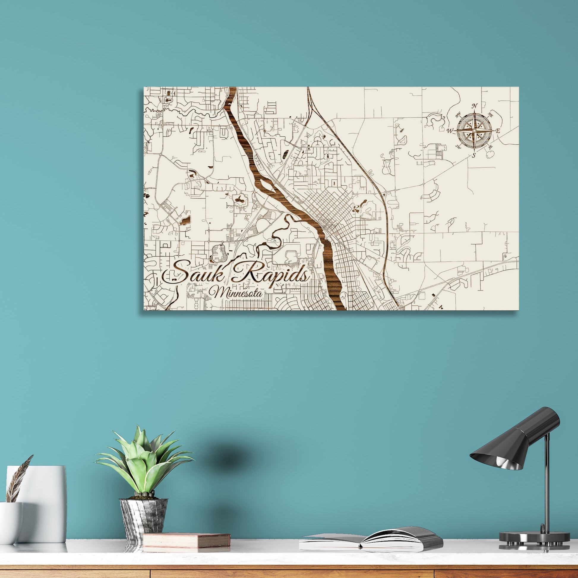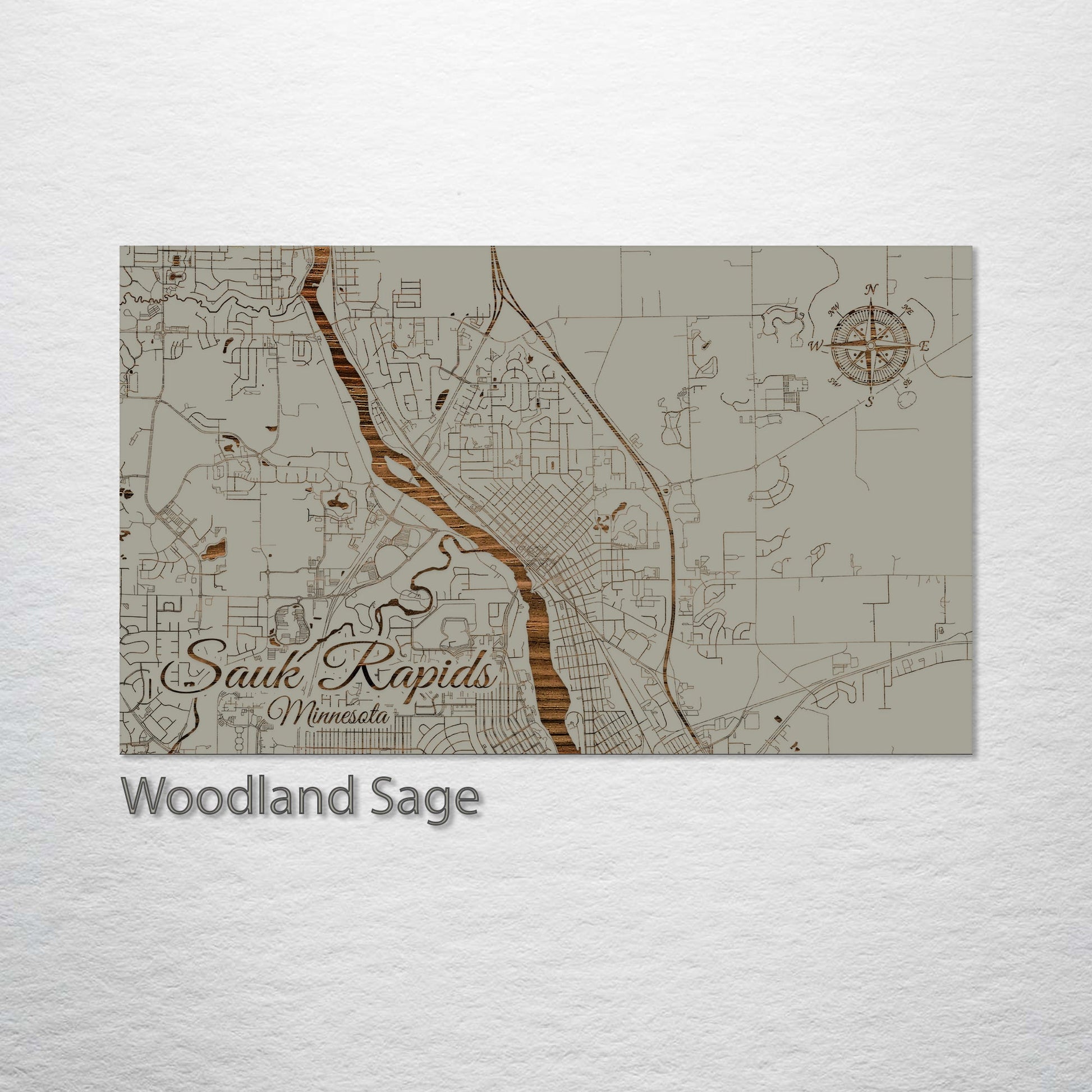 This is a street map of Sauk Rapids, MN designed by Fire & Pine artists.