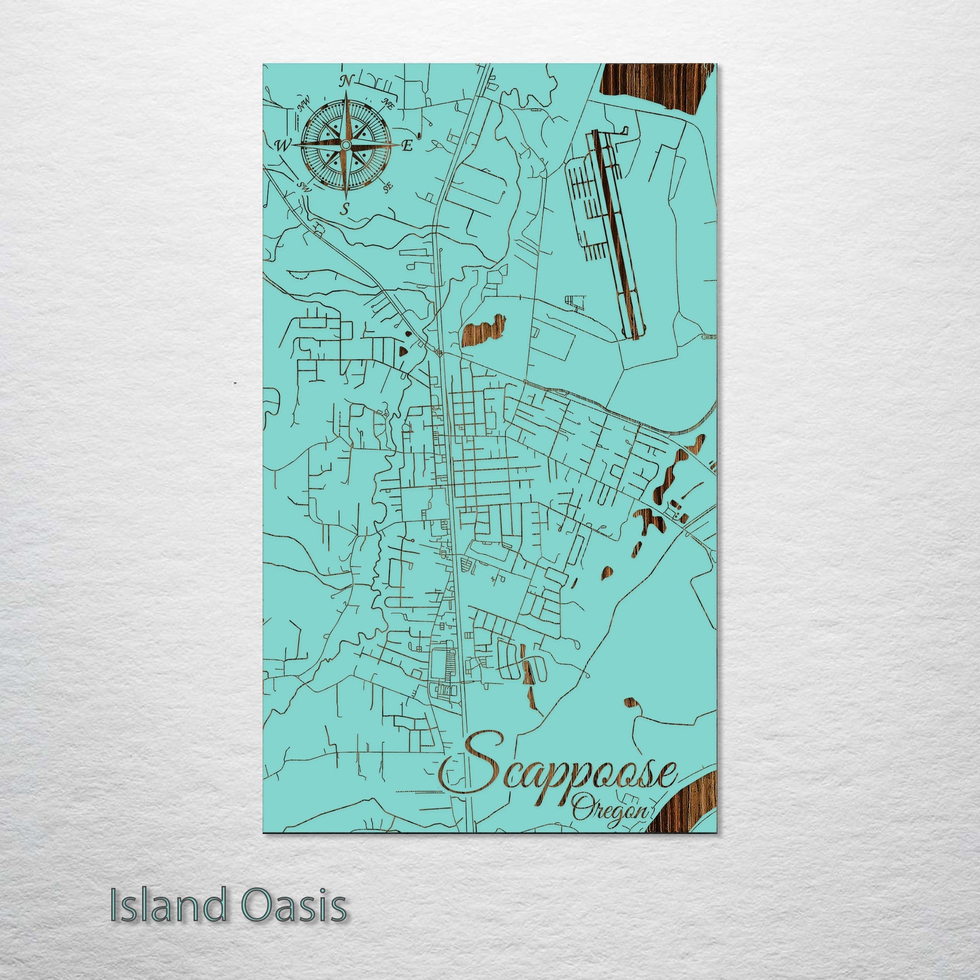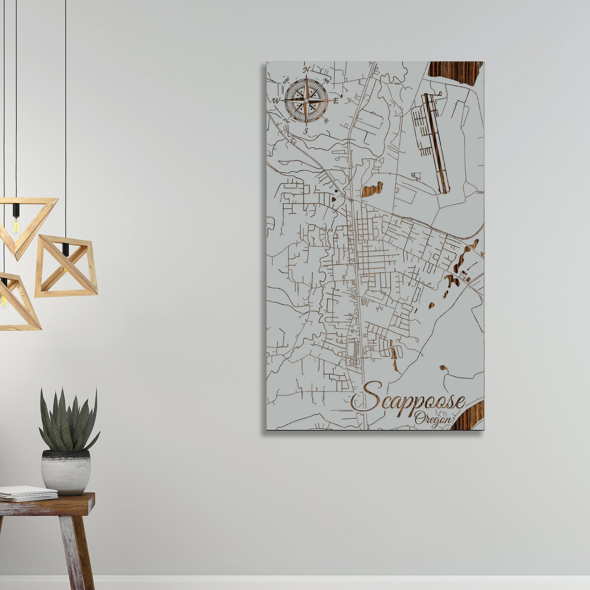This is a street map of Scappoose, OR designed by Fire & Pine artists.