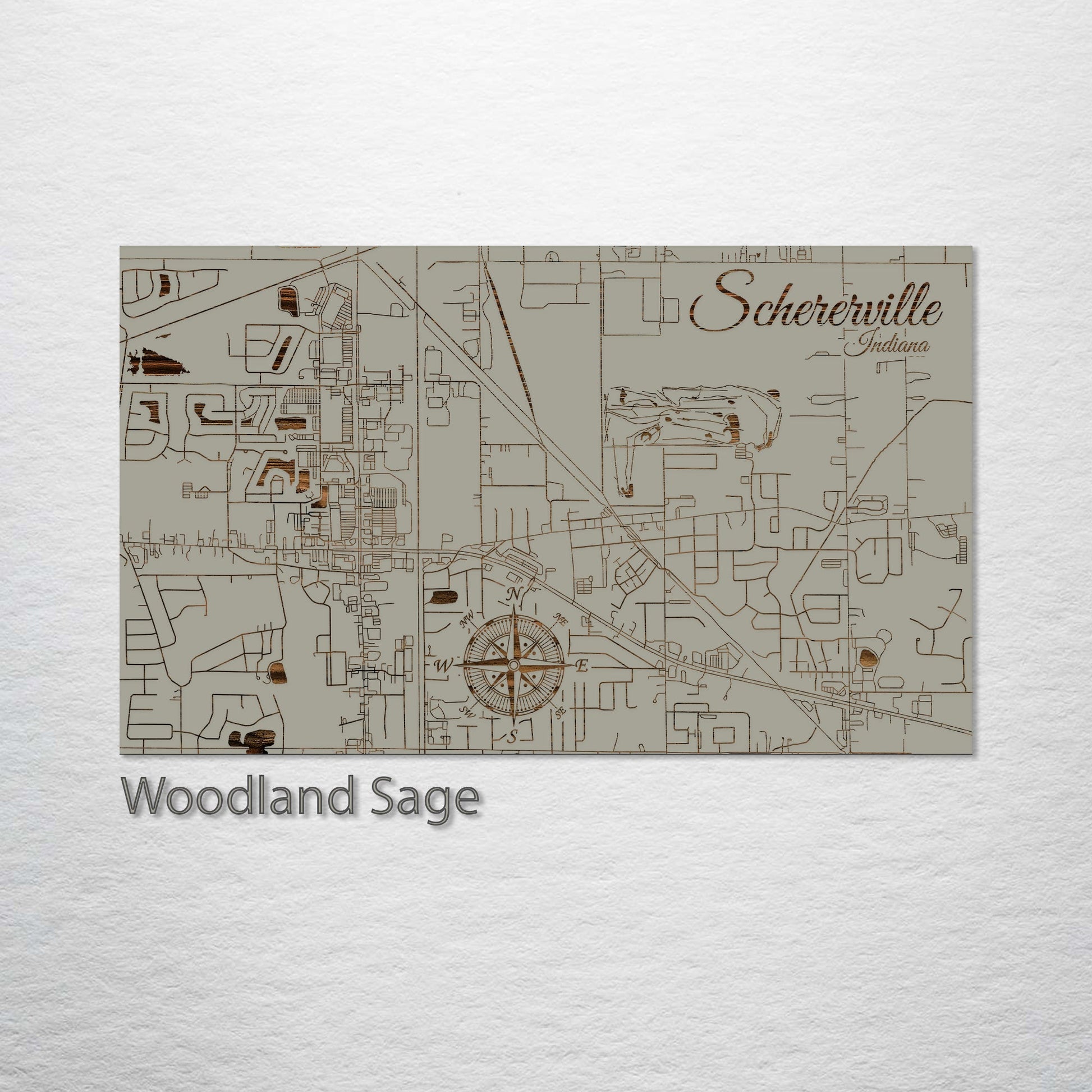Schererville, Indiana Street Map: Artistic Pine Wood Engraving: Introducing a stunning addition to our collection - a beautifully crafted pine wood wall art depicting the streets of Schererville, Indiana. This piece is perfect for admirers of detailed wooden art, residents, or anyone with a special connection to Schererville.
