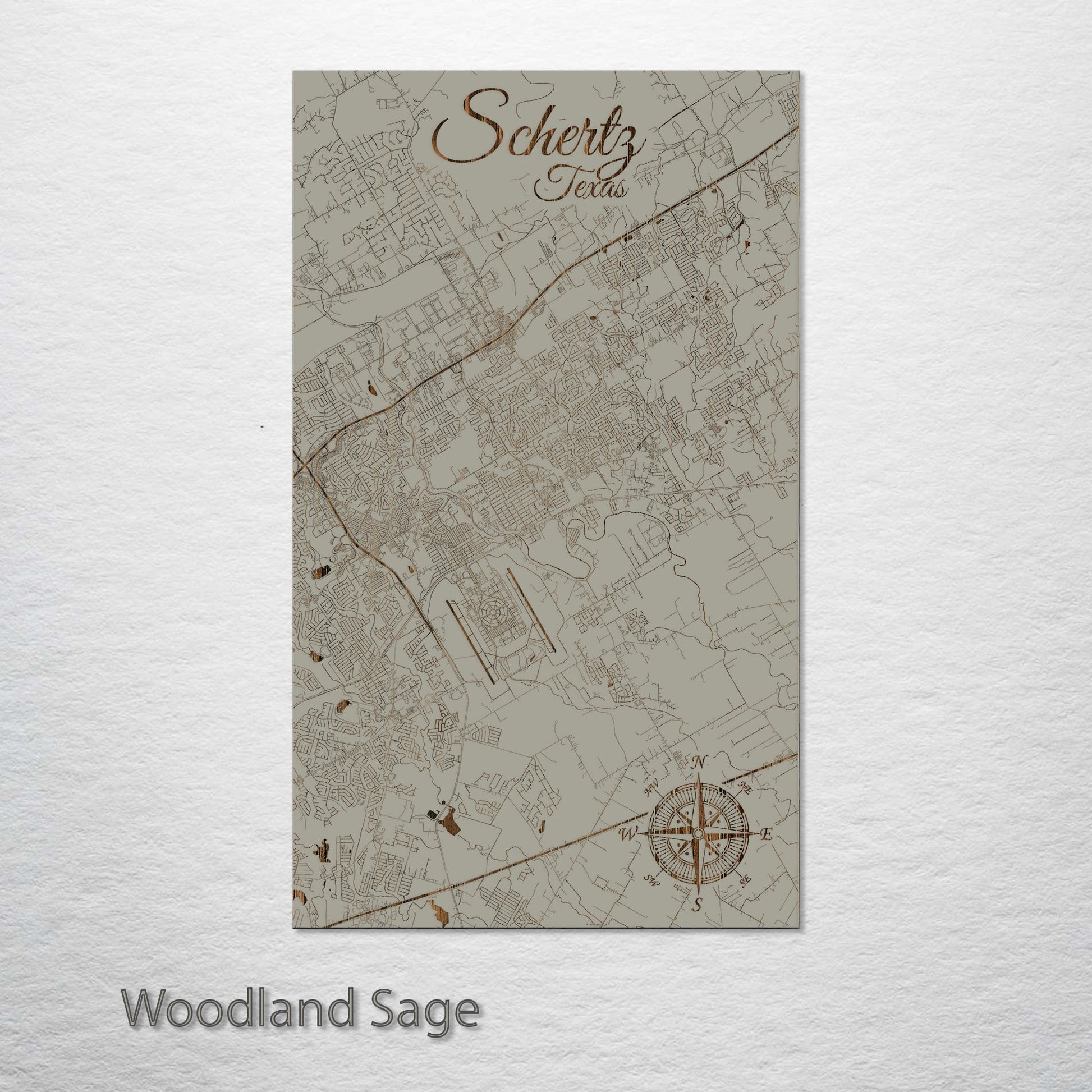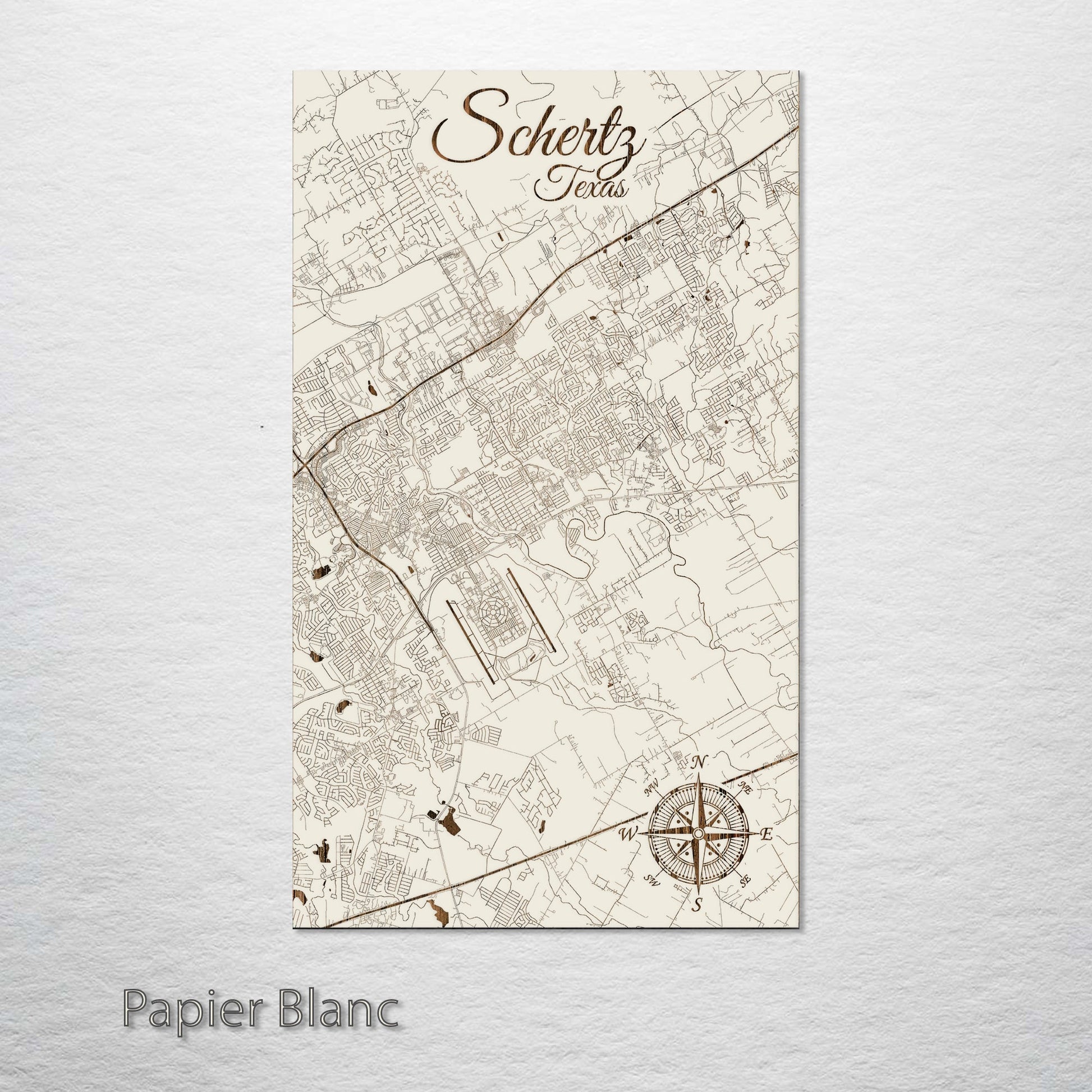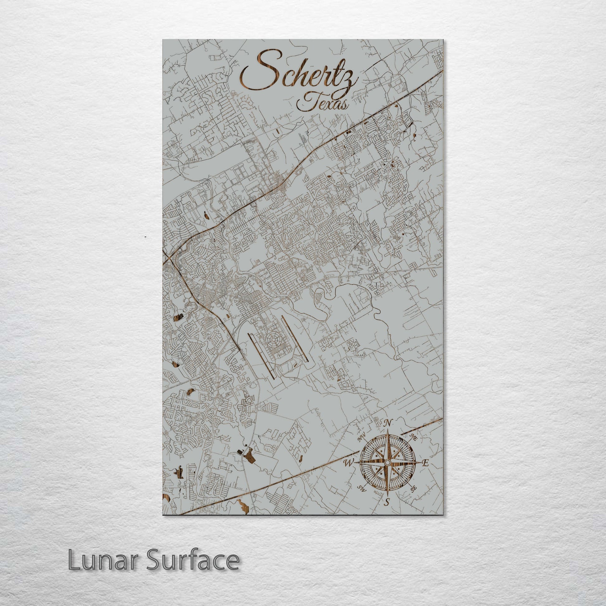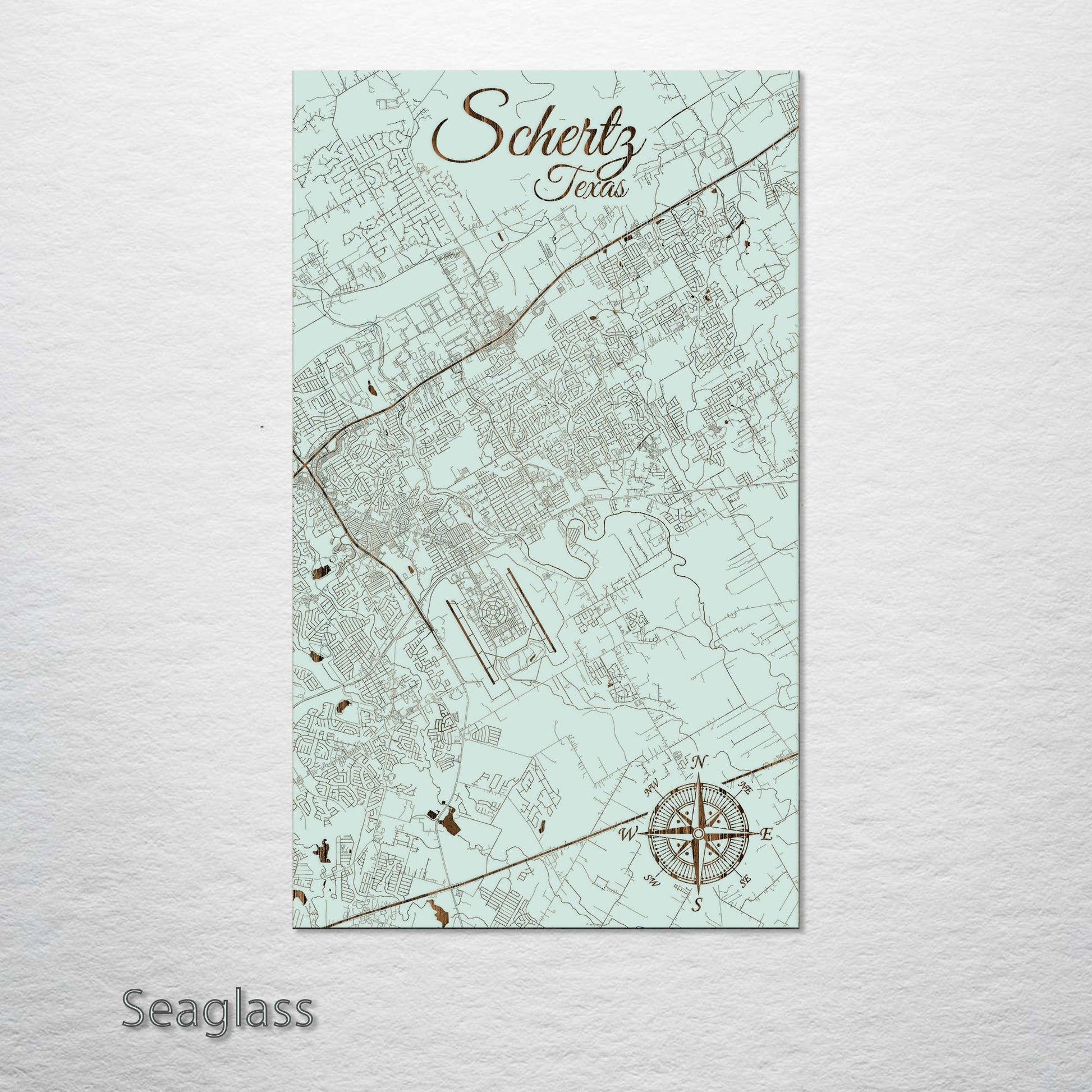 This wood-engraved Schertz, Texas street map is a splendid addition to any art aficionado's collection. Meticulously created from top-notch pine wood, it showcases Schertz's streets with exquisite detail, offering a unique artistic take on the city's layout.