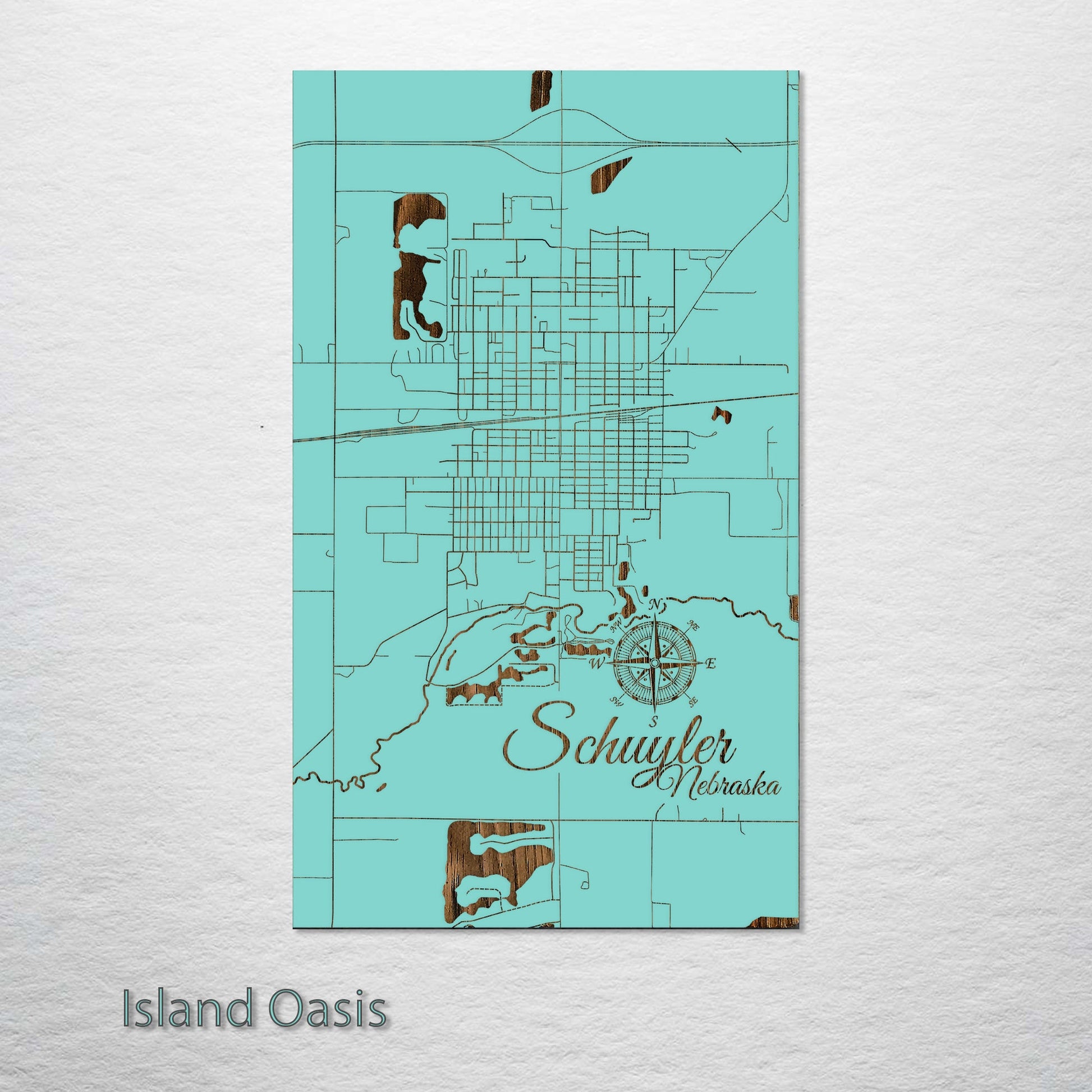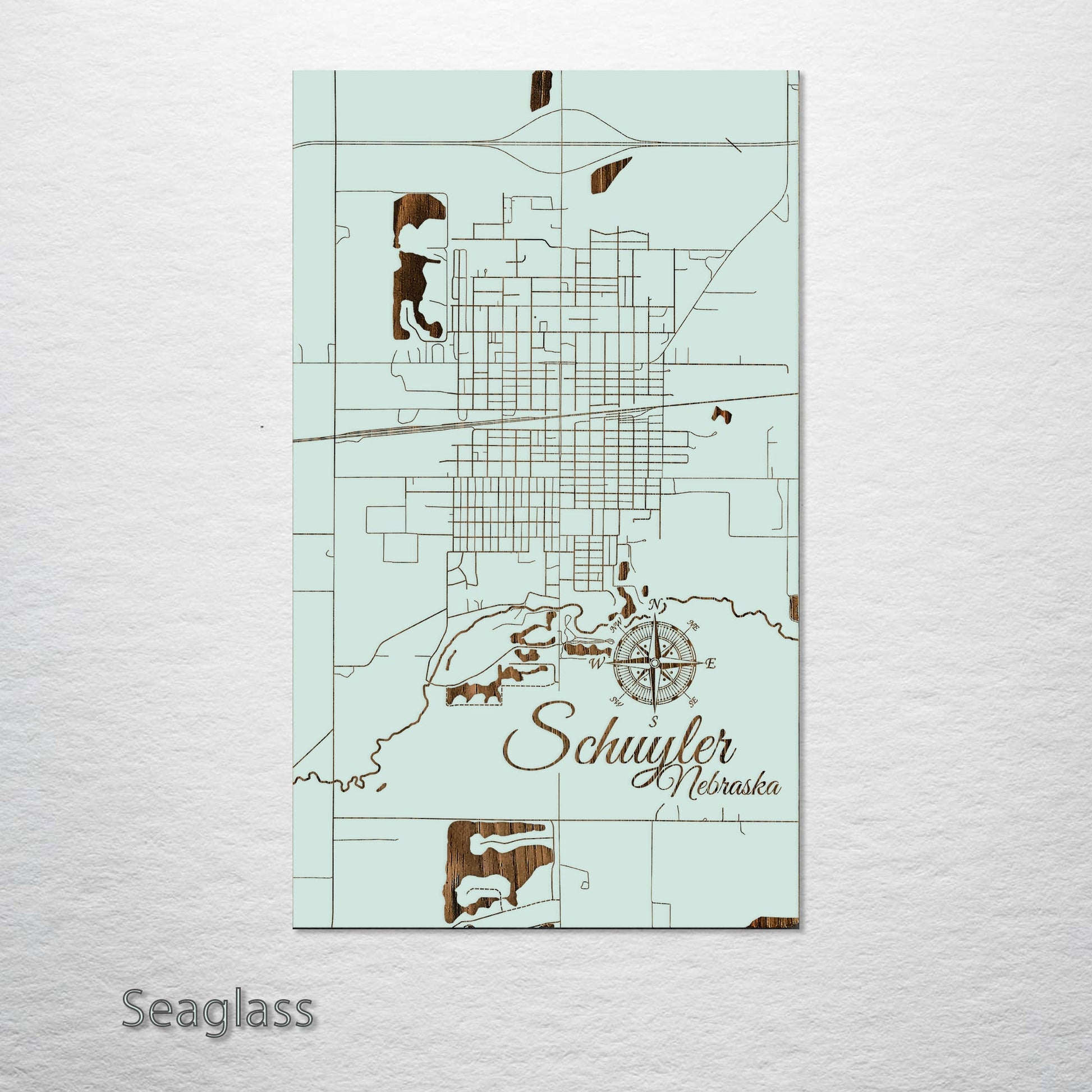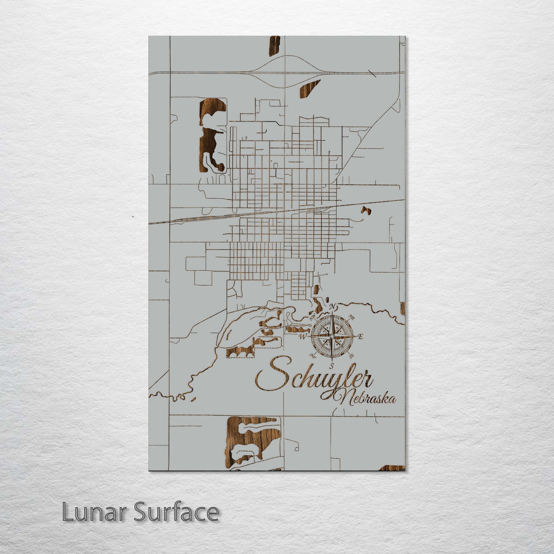 This is a street map of Schuyler, NE designed by Fire & Pine artists.