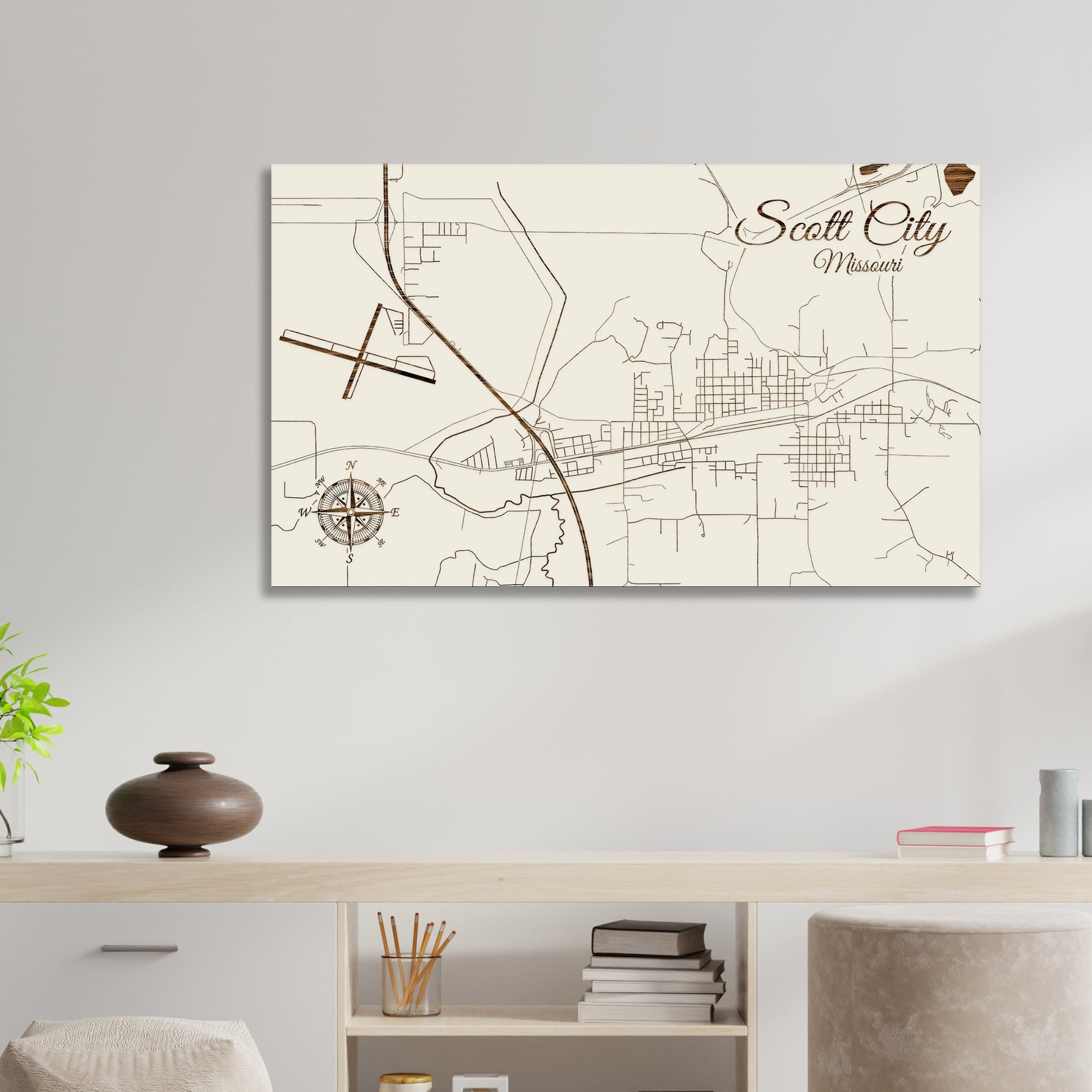 This is a street map of Scott City, MO designed by Fire & Pine artists.