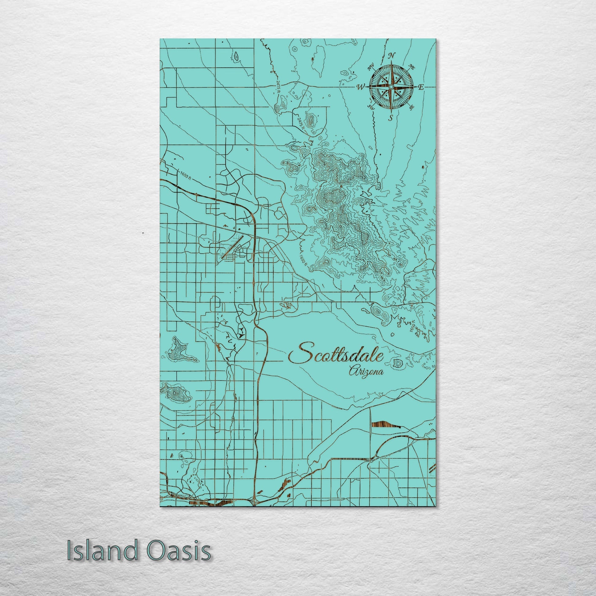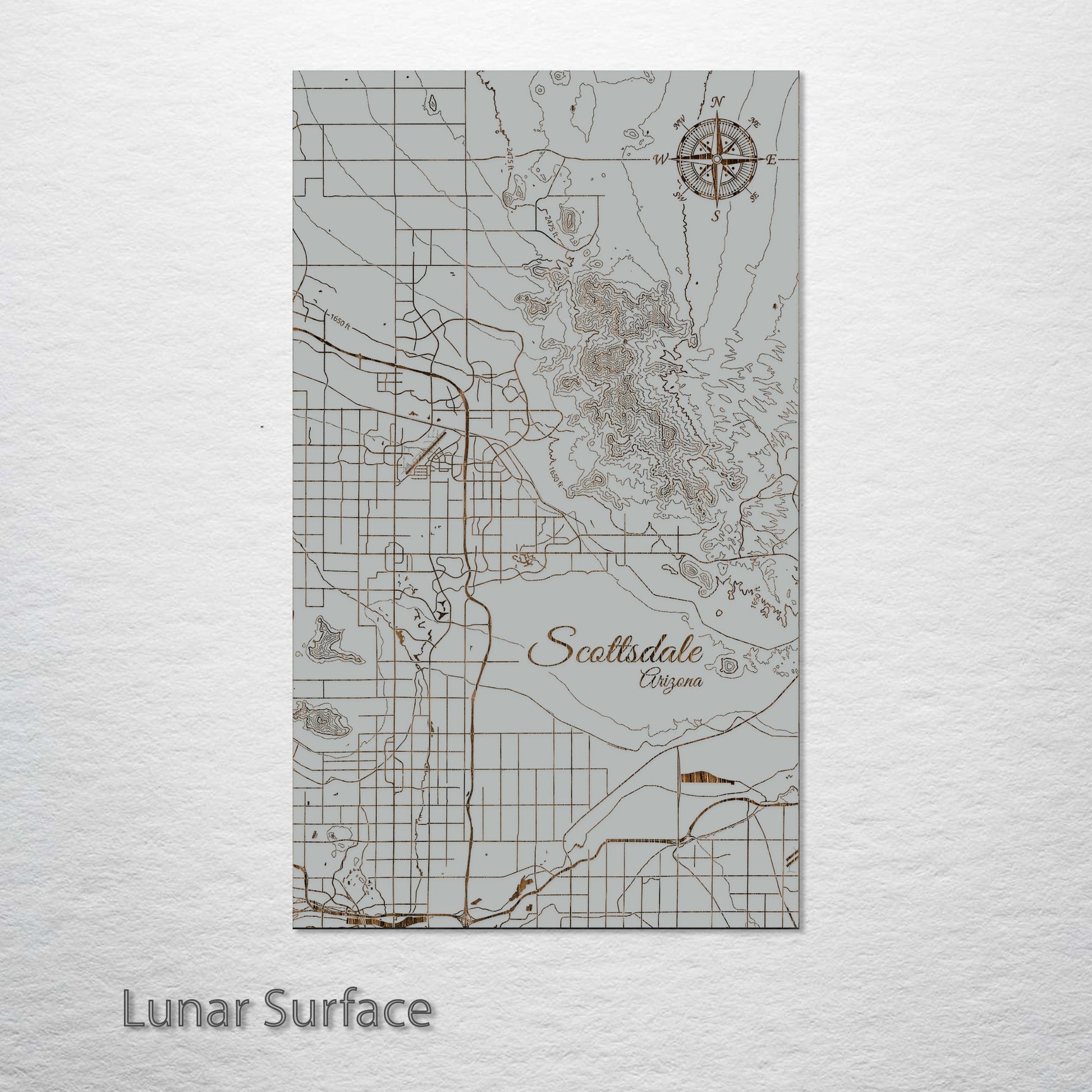 Unique gift for those interested in geography or the city of Scottsdale: This Scottsdale, Arizona street map is made from high-quality pine wood and engraved. It appeals to current and former residents of Scottsdale, as well as those with an affinity for the area.