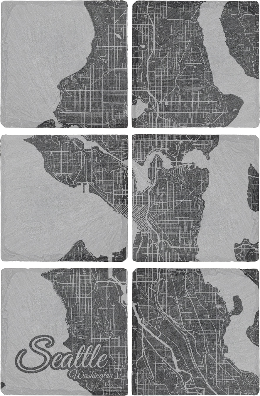• Design: The map etching is precise and detailed, showcasing Seattle, Washington's street layout and iconic landmarks.