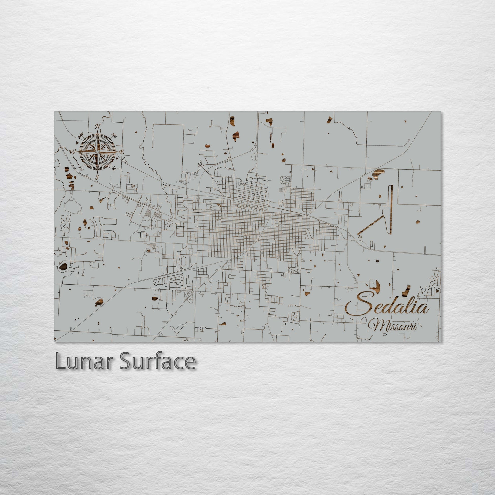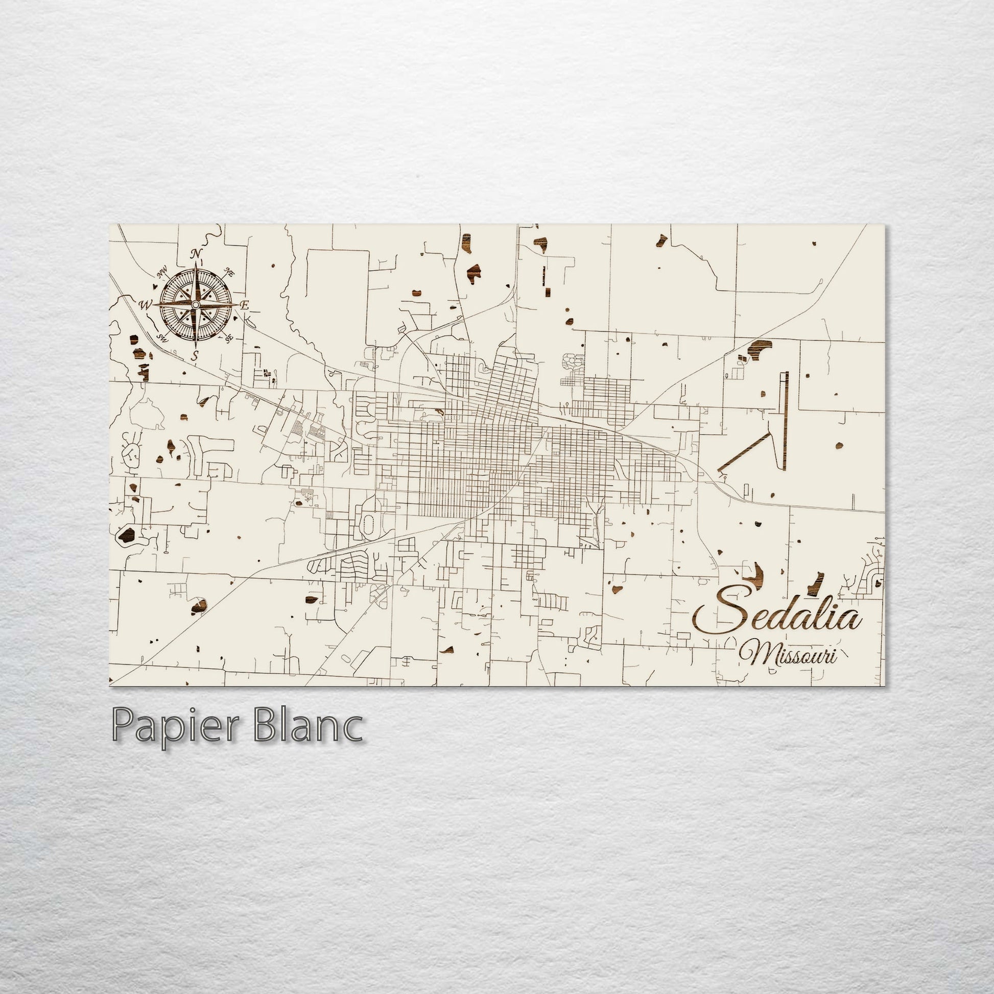 This is a street map of Sedalia, MO designed by Fire & Pine artists.