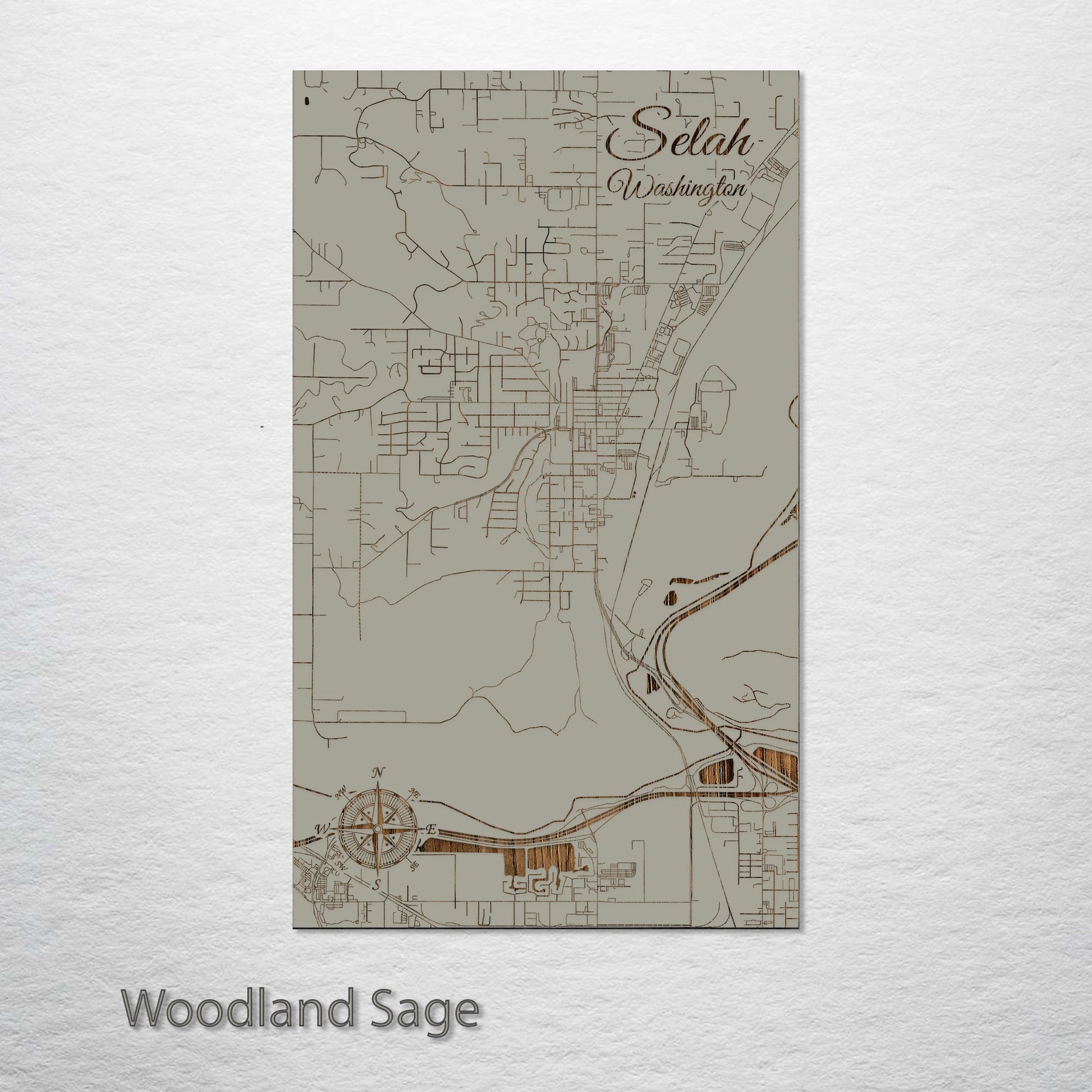 This is a street map of Selah, WA designed by Fire & Pine artists.